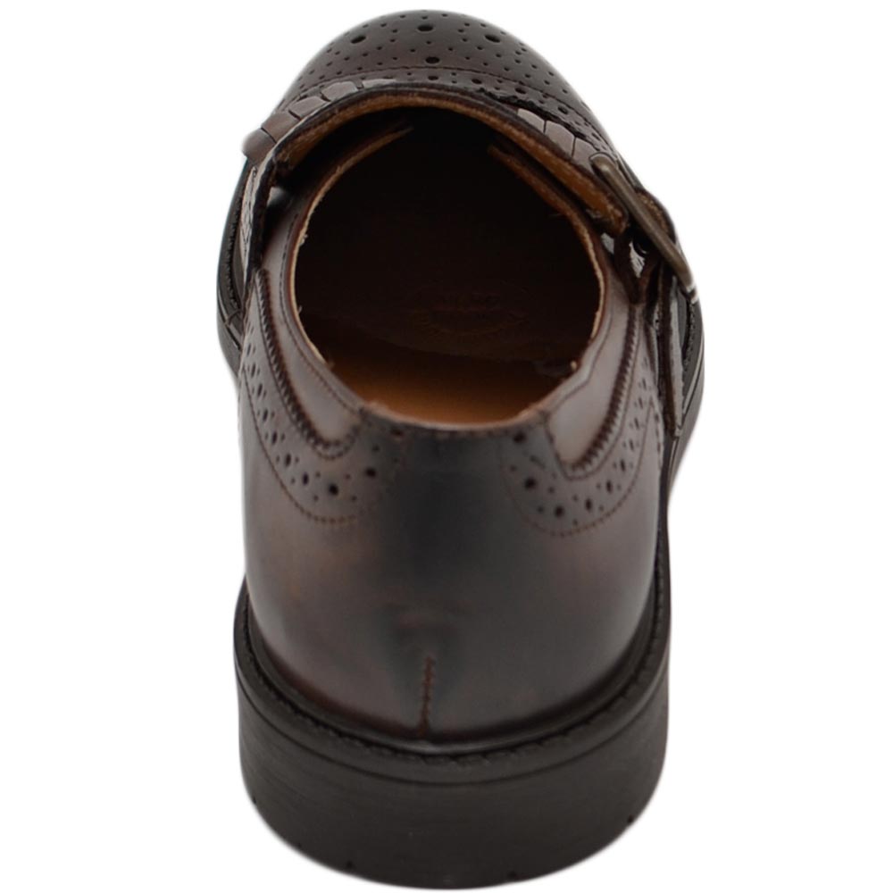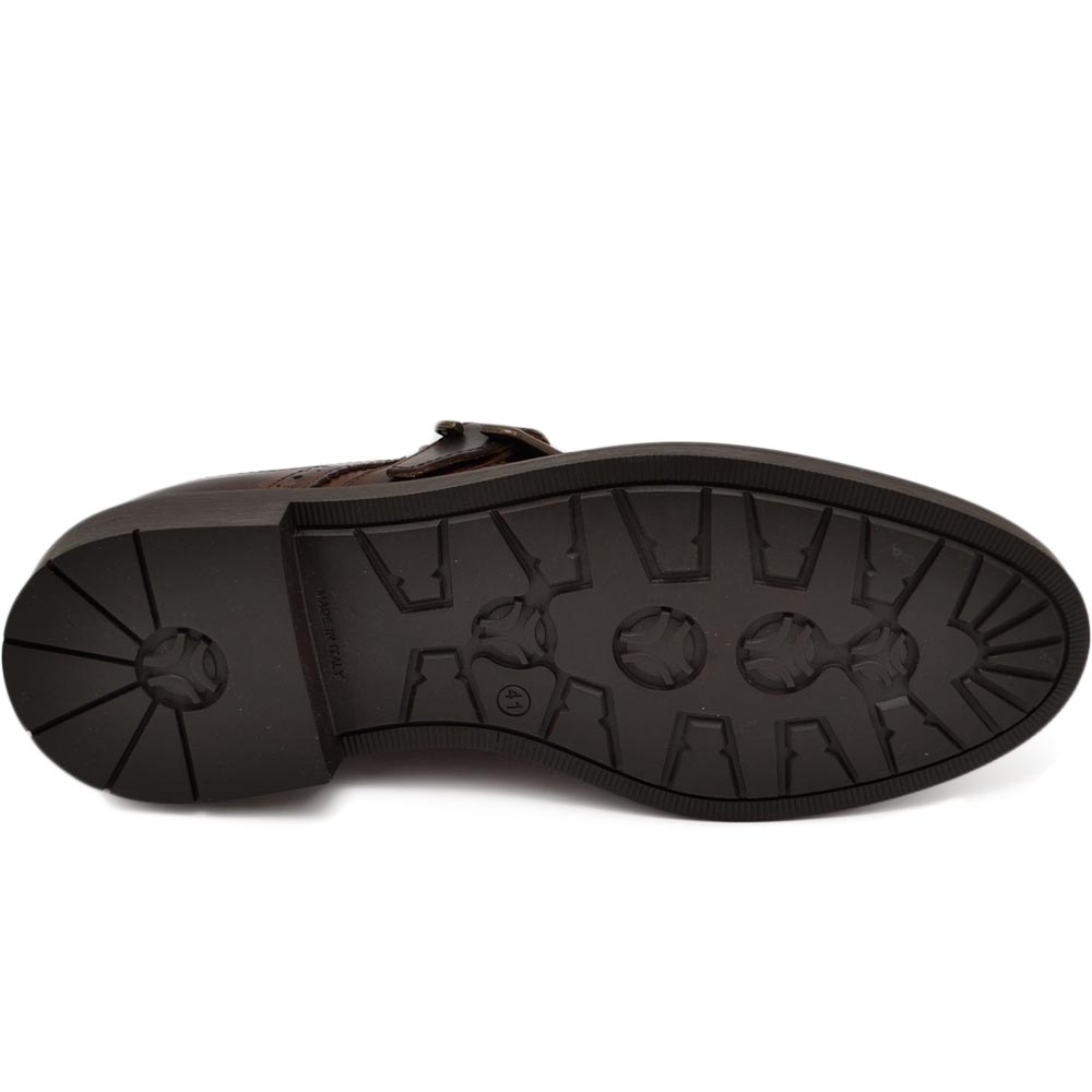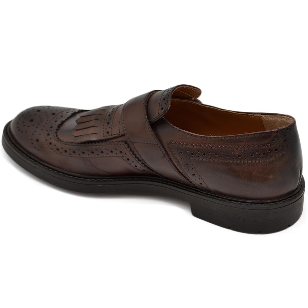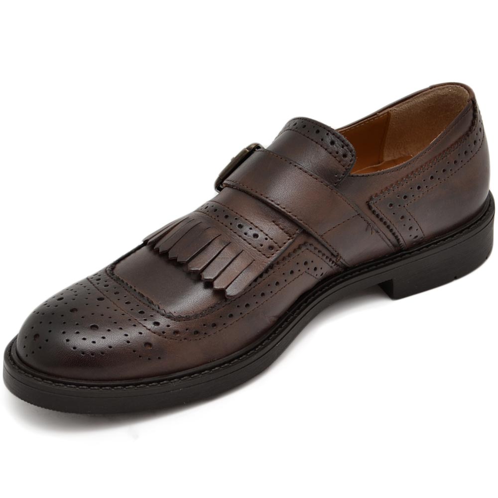 Scarpe uomo stringate decorate marrone in vera pelle nappa effetto vintage con frange e fibbia fondo gomma light