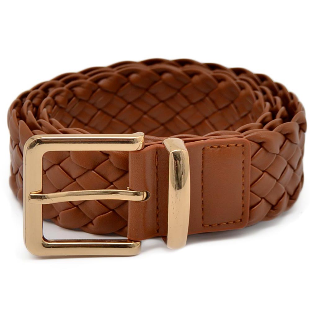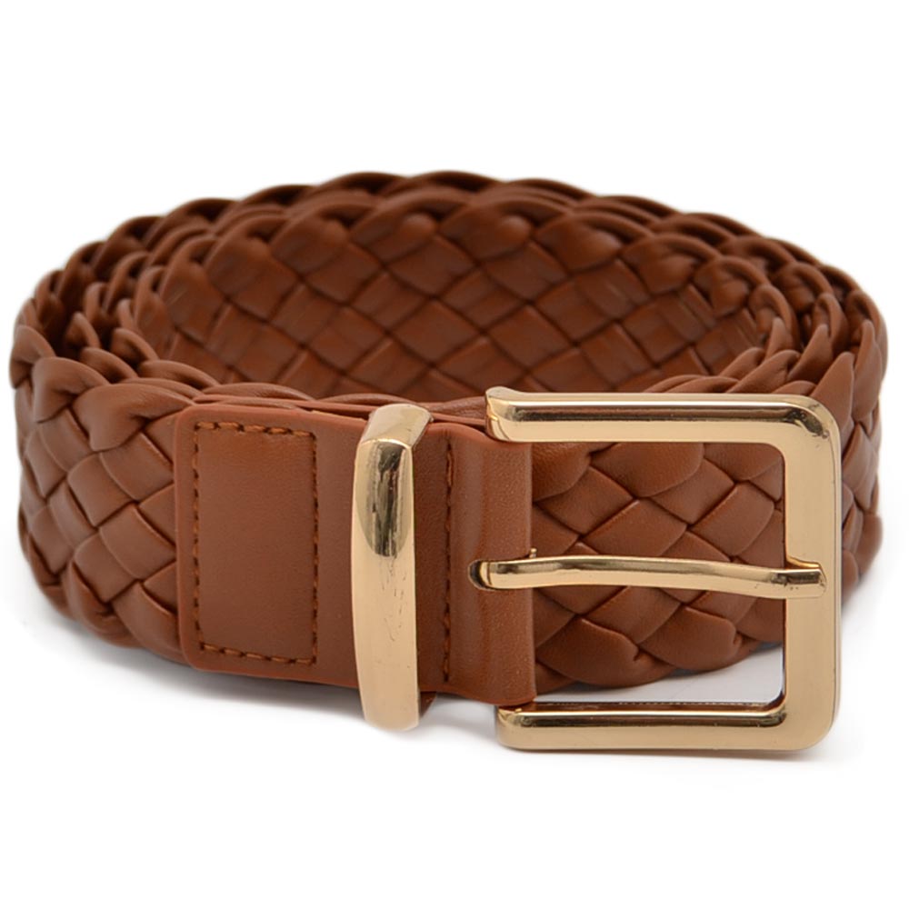 Cintura donna cuoio con fibbia oro trama intrecciata regolabile altezza 5 cm