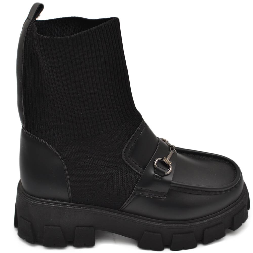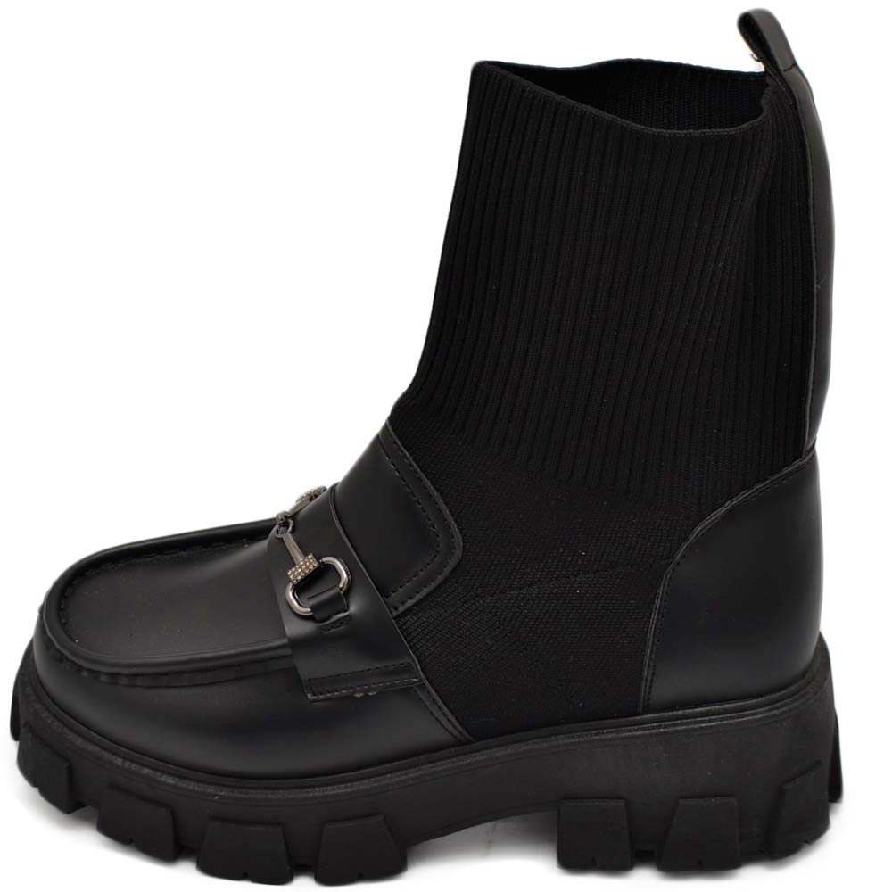 Stivaletti donna chelsea boots combat effetto calzino e pelle nero fondo alto elastico morsetto argento made in italy