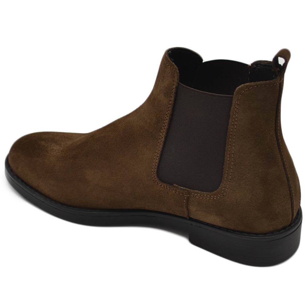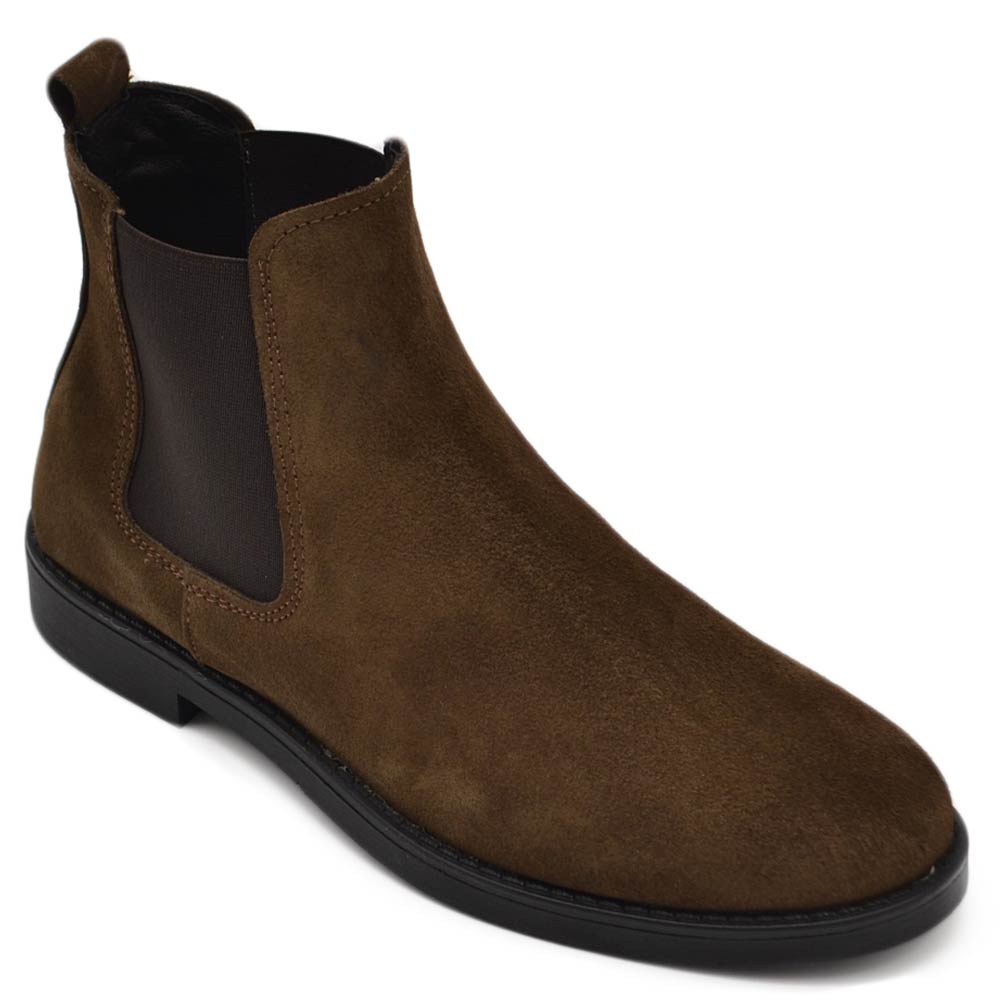 Beatles uomo stivaletto con elastico in vera pelle scamosciato marrone suola in gomma casual made in italy handmade.