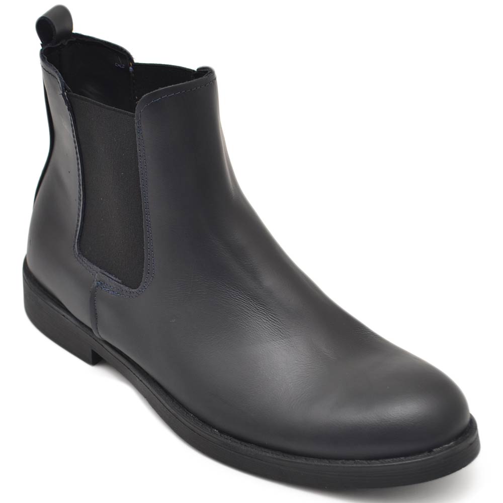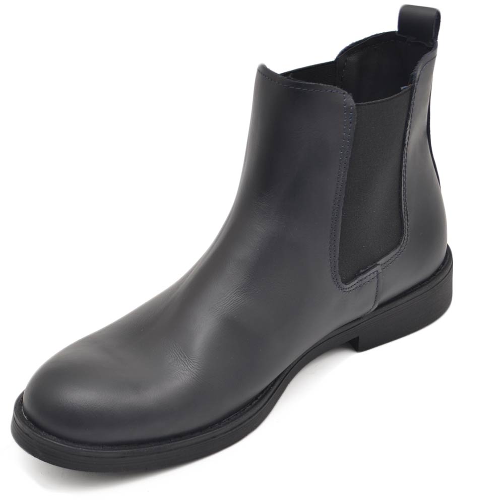 Beatles uomo stivaletto con elastico in vera pelle blu suola in gomma ventosa ultraleggera casual made in italy