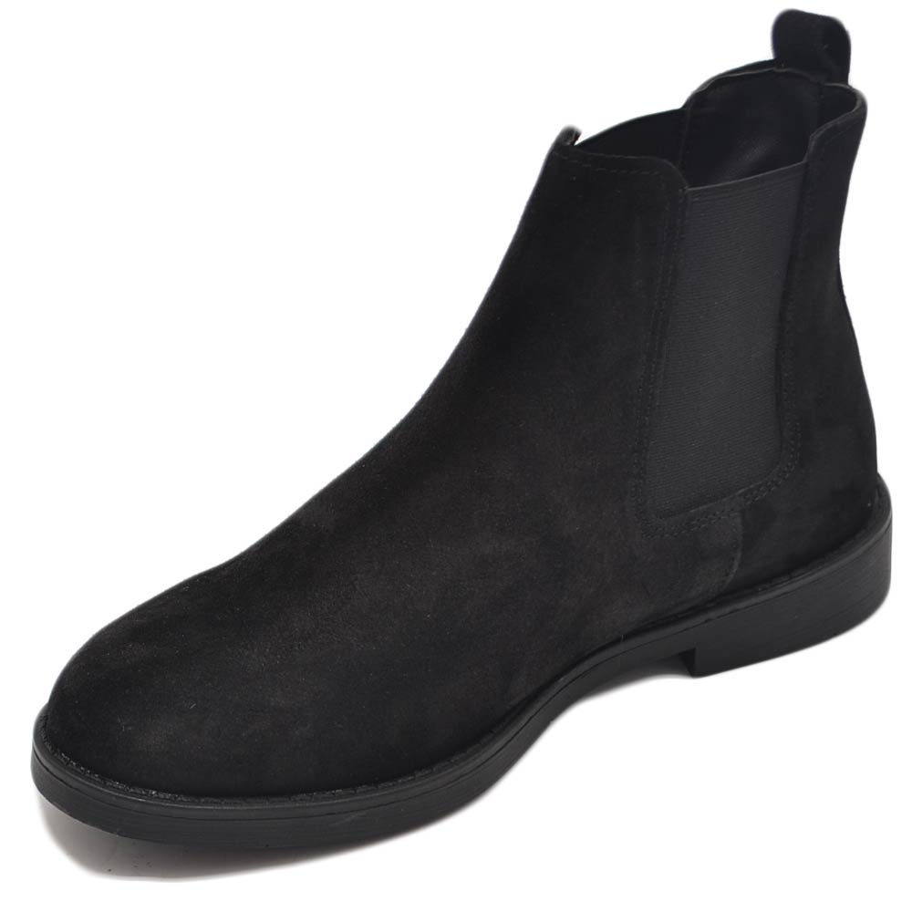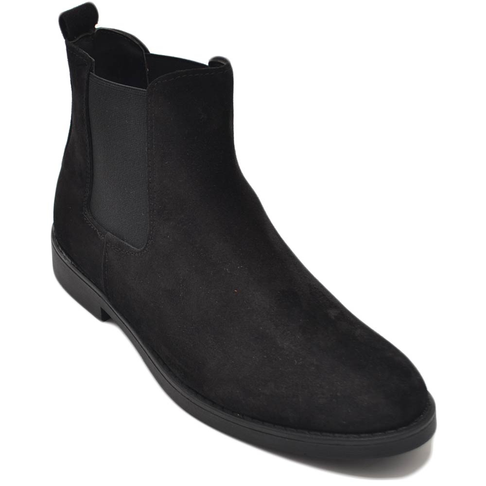 Beatles uomo stivaletto con elastico in vera pelle scamosciato nero suola in gomma casual made in italy handmade