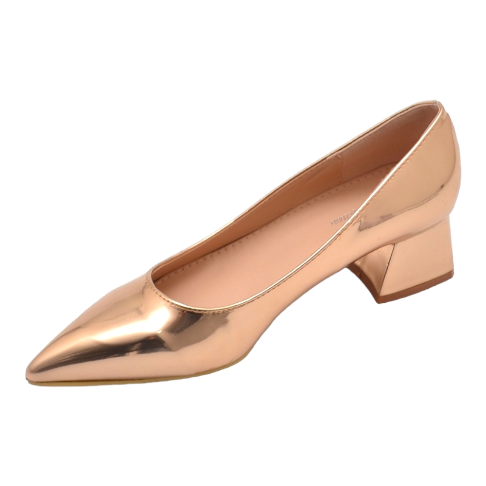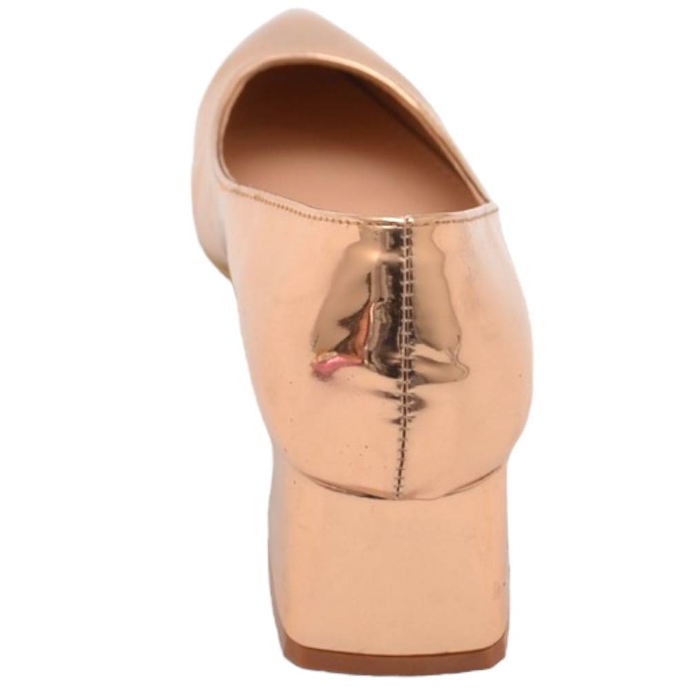 Decollete' donna basso a punta in vernice lucido oro rosa champagne con tacco quadrato 4 cm linea basic