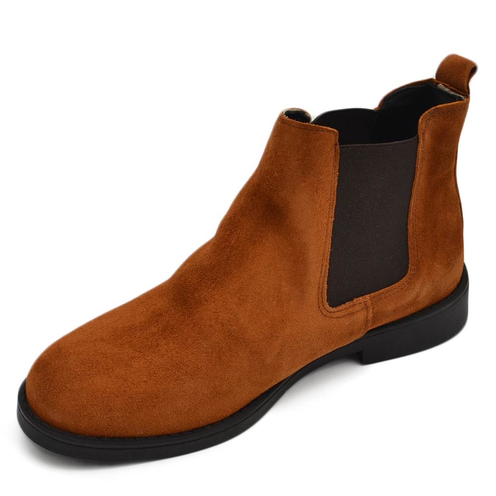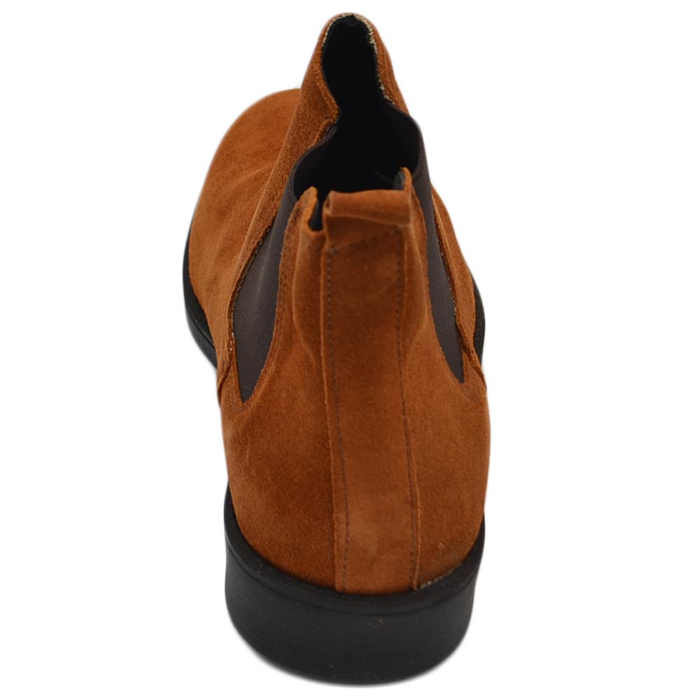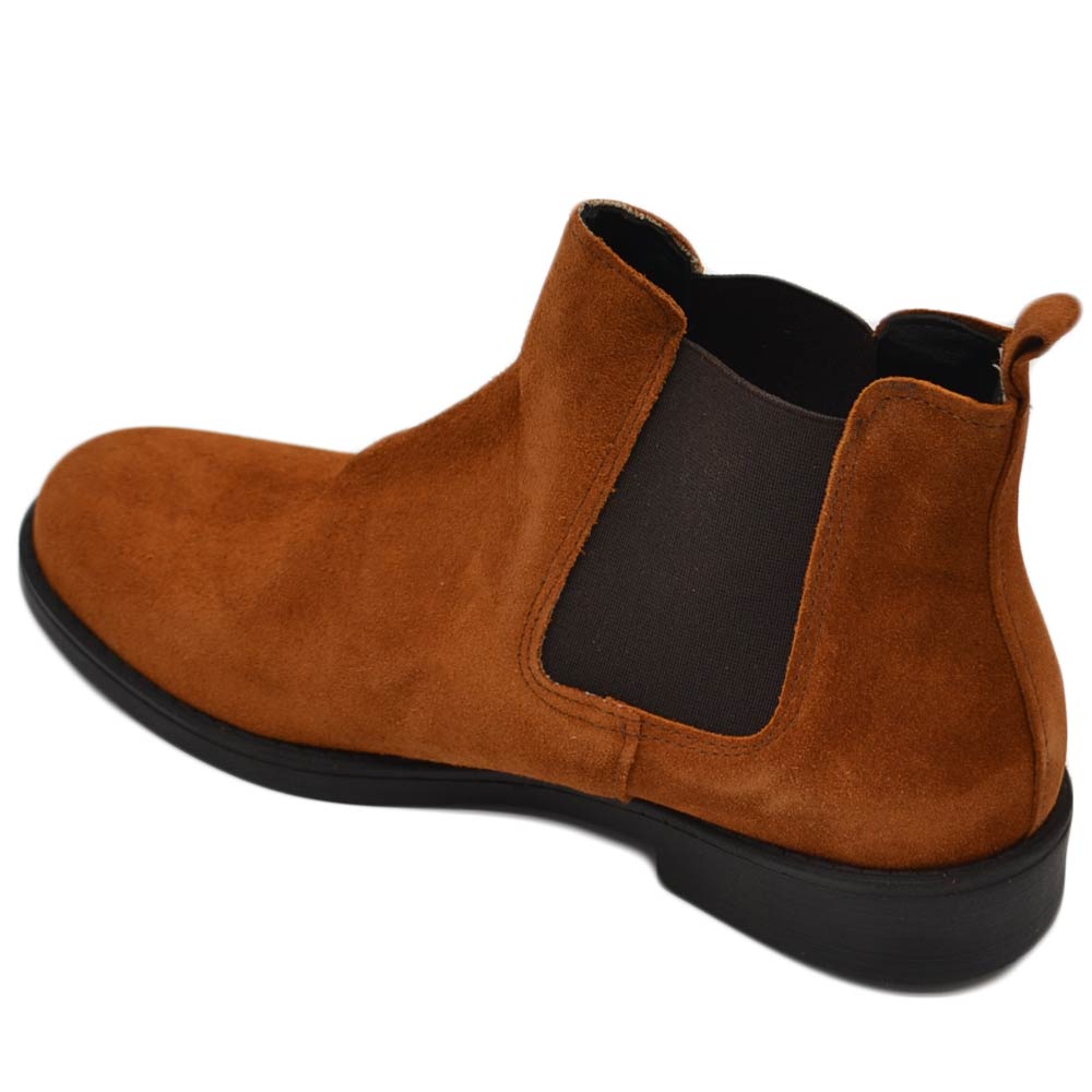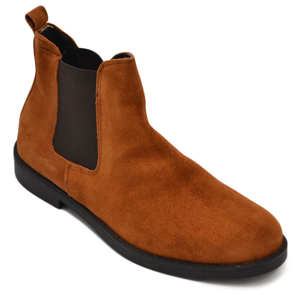 Scarpe beatles uomo stivaletto elastico vera pelle camoscio marrone bruciato chelsea fondo gomma made in italy invernale.