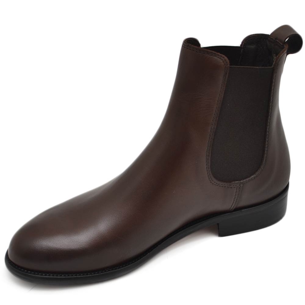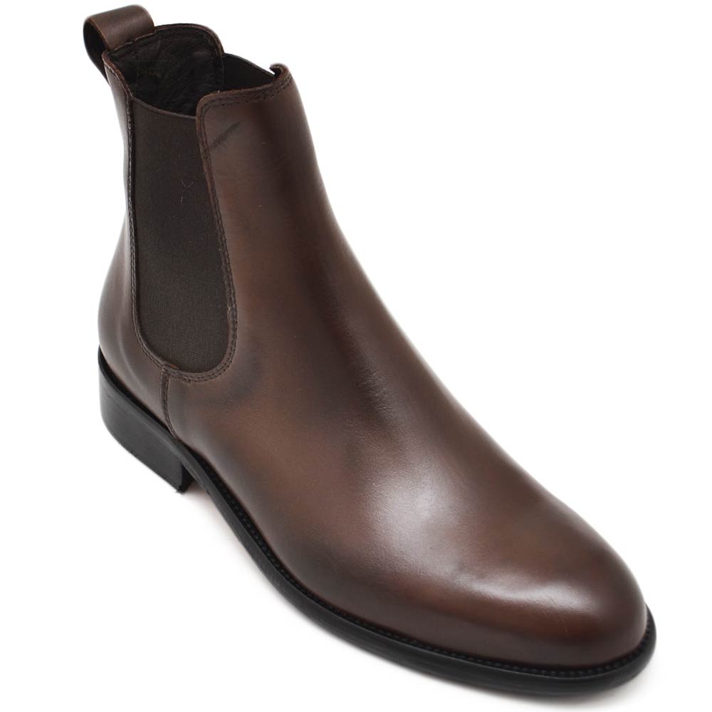 Beatles uomo stivaletto con elastico in vera pelle marrone con ricamo suola in gomma casual made in italy handmade.