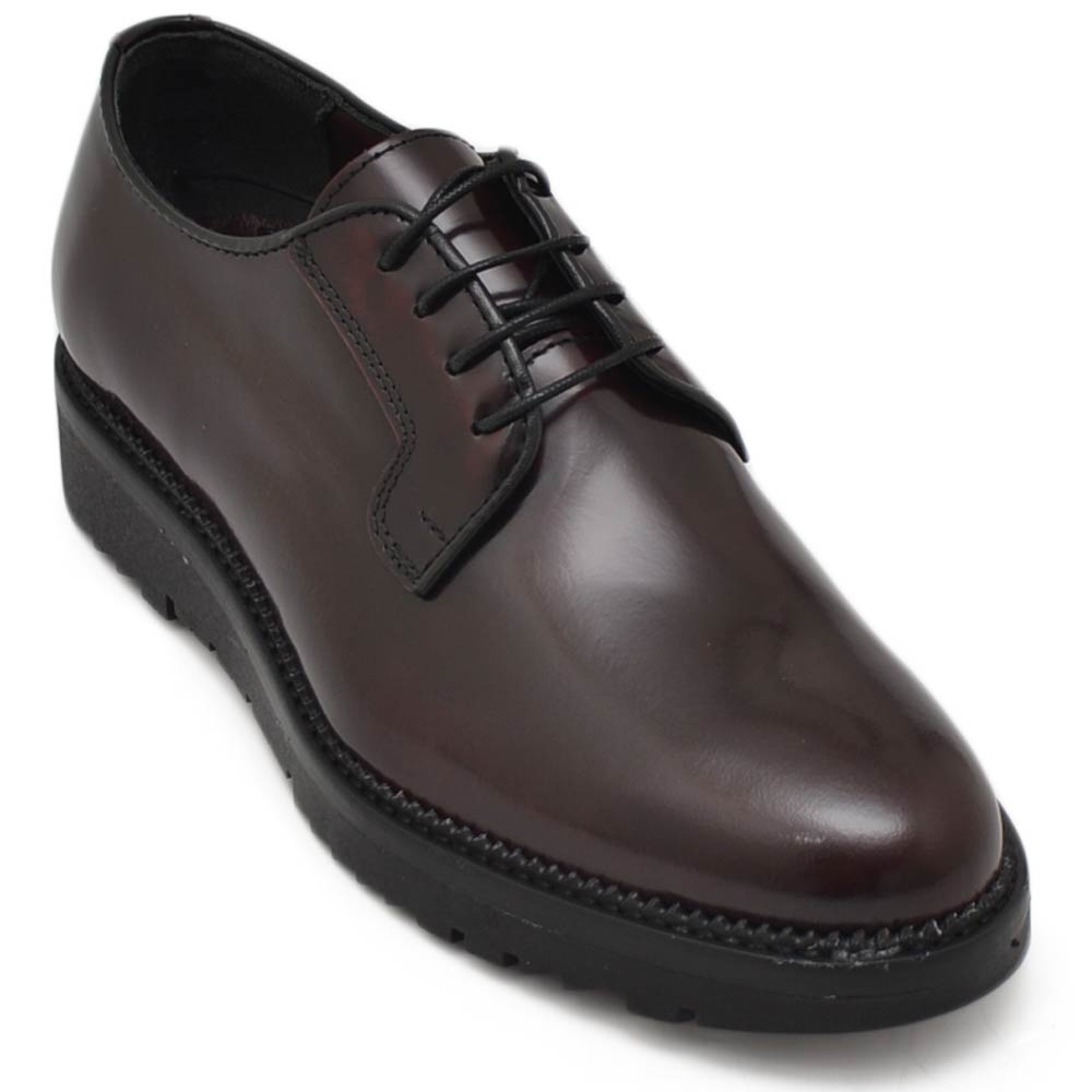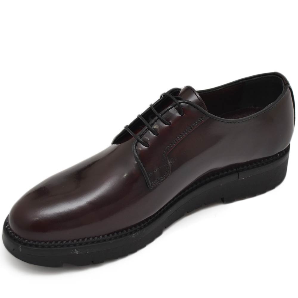 Stringata uomo liscia in vera pelle abrasivata bordeaux fondo gomma alta moda tendenza made in Italy