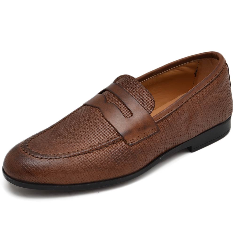Scarpe uomo mocassino in vera pelle nappa intrecciata cuoio bendina suola in gomma pantofola elegante