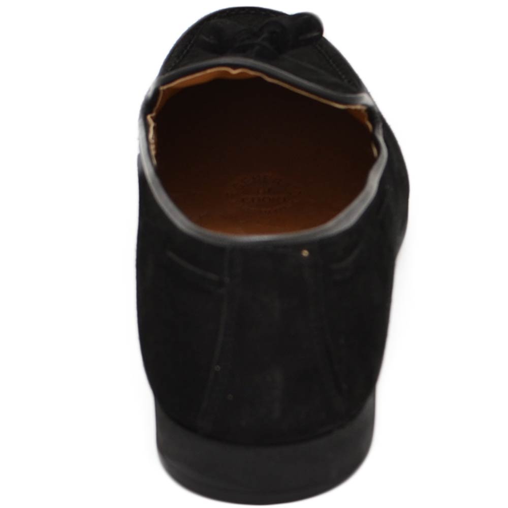 Scarpe uomo mocassino in vera pelle camoscio nero bon bon tono su tono suola in gomma pantofola elegante