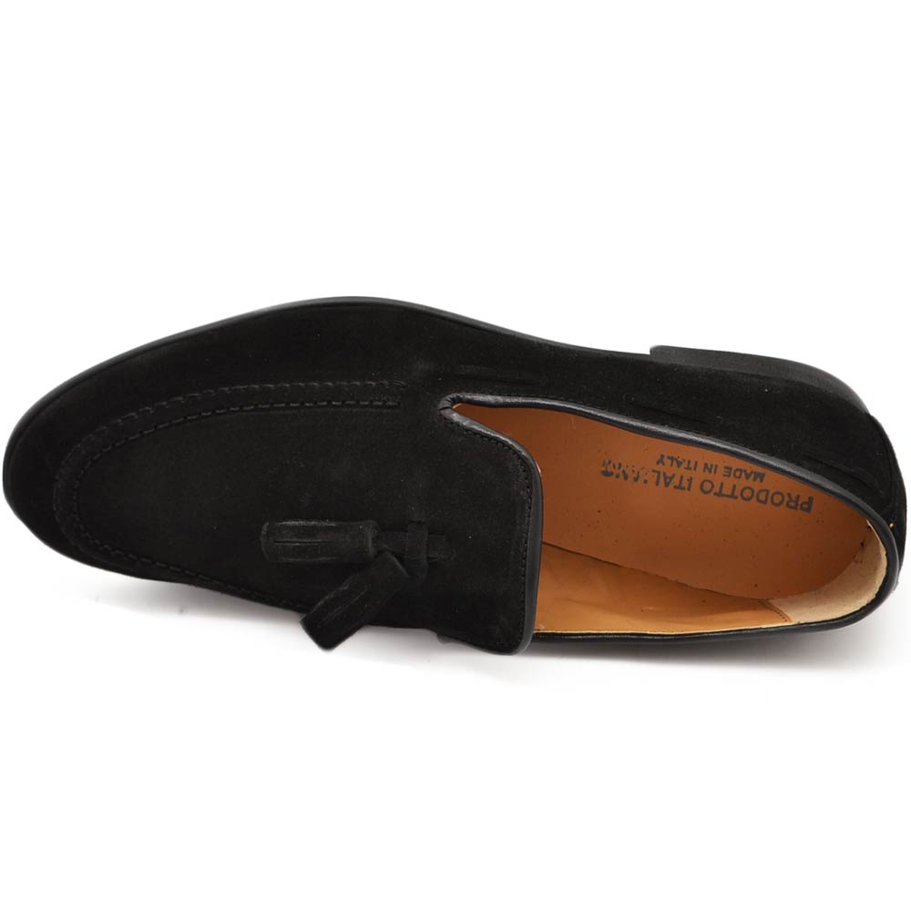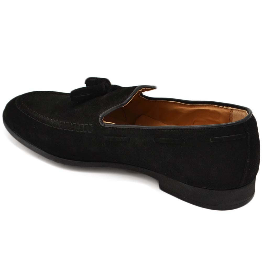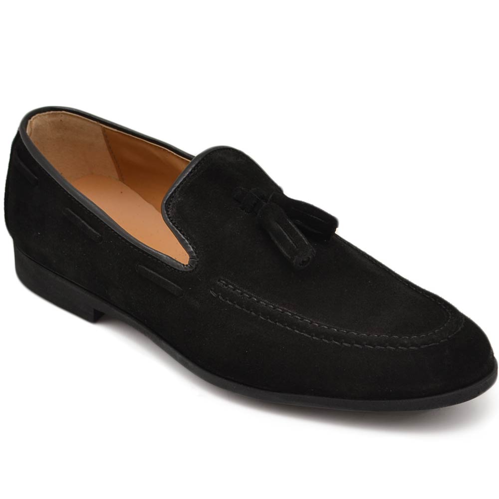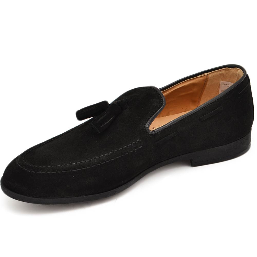 La scarpa da uomo con tomaia in pelle scamosciata foderata in vera pelle con nappina è un modello classico della moda maschile . Traversino tradizionale in pelle alla mascherina e la suola in gomma con tacco basso antiscivolo e isolante restituiscono un design squisitamente elegante perfetto per il business e per l'uomo che ama i completi classici. Un mocassino fine di qualità per una calzata più confortevole adatta all'uomo che ama vestire con classe lo stile italiano.