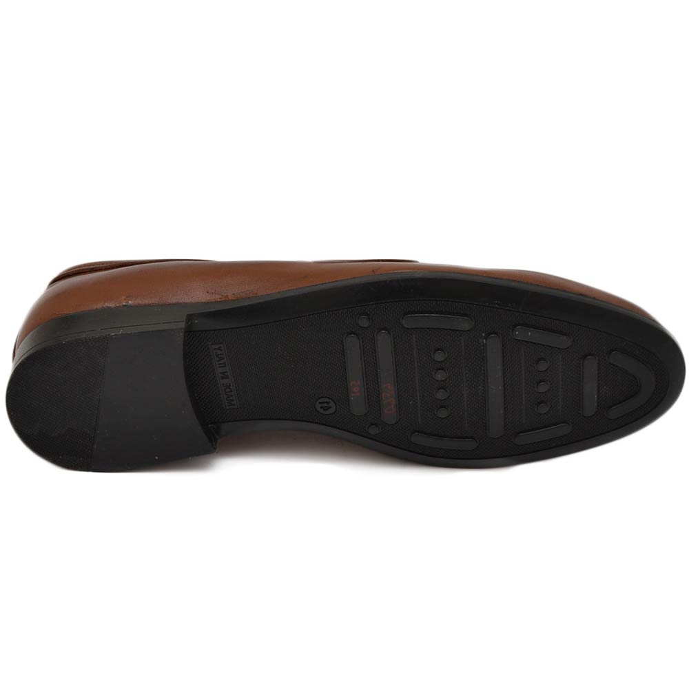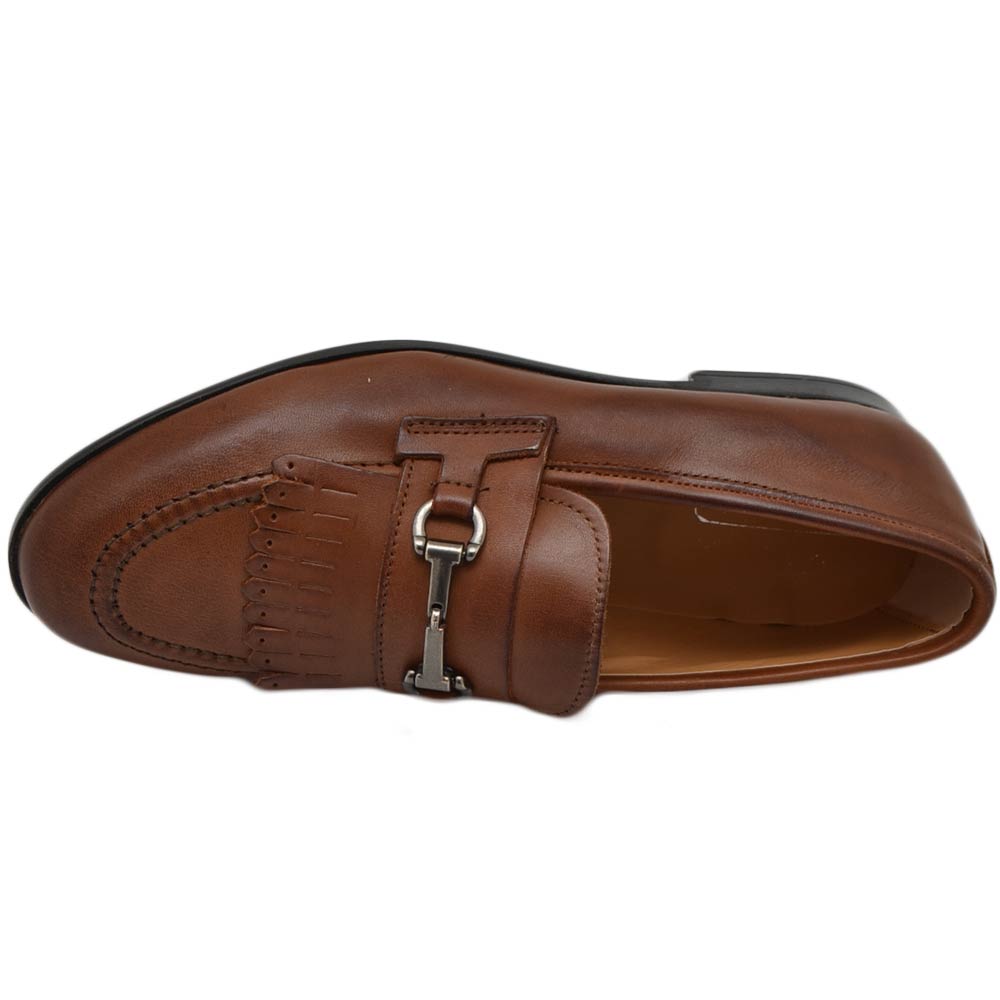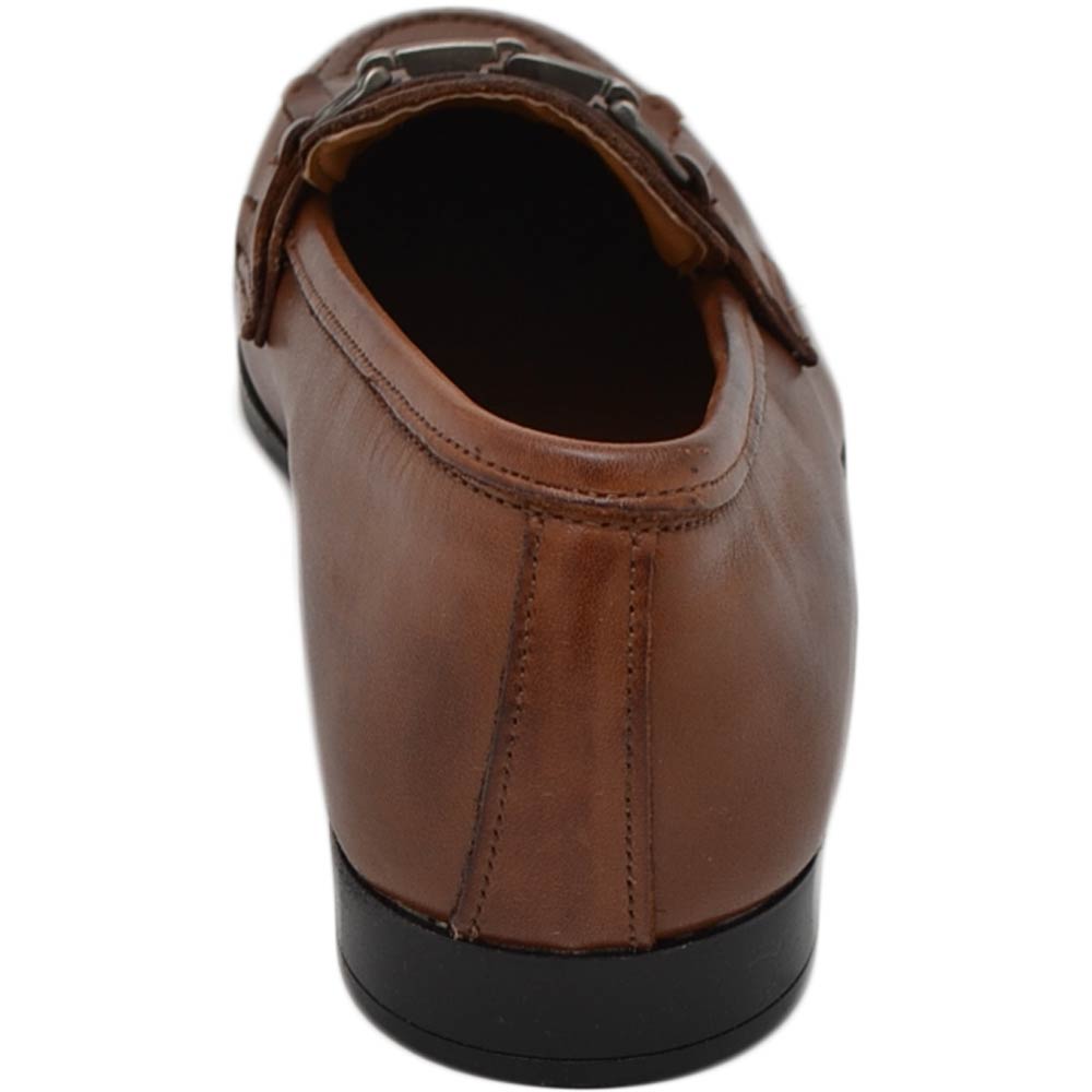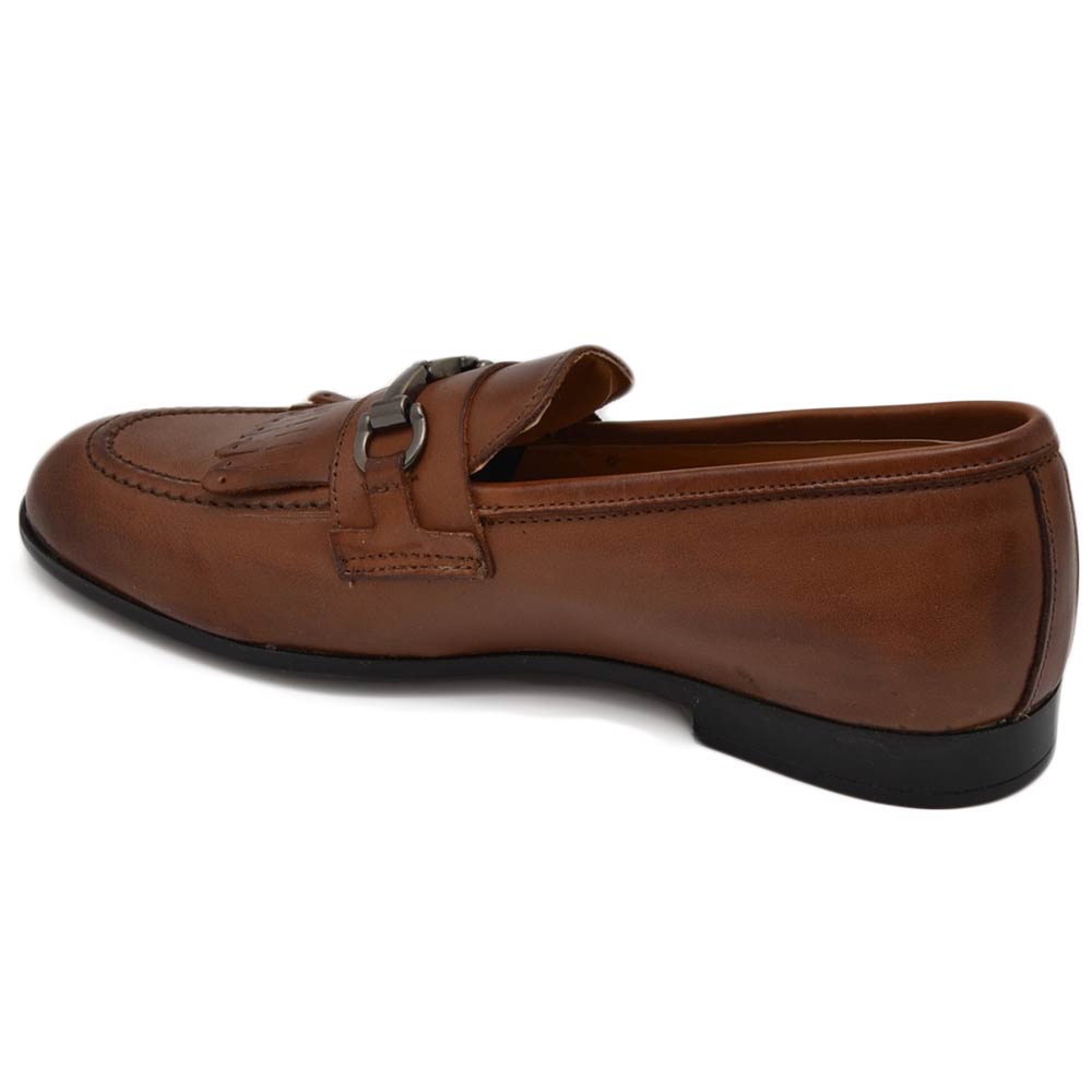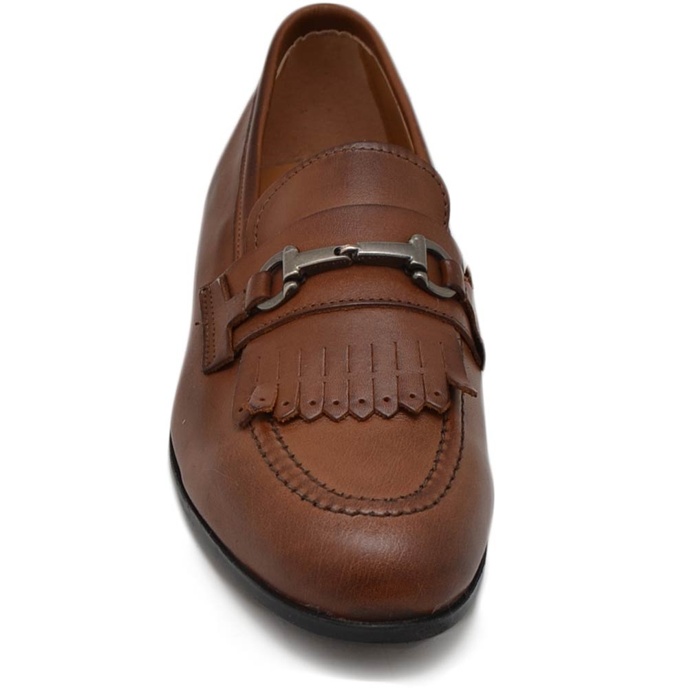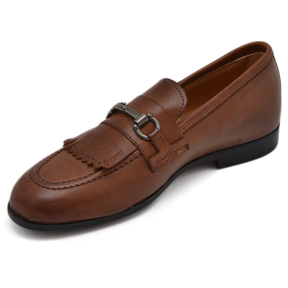 Scarpe uomo mocassino in vera pelle nappa marrone morsetto frange suola gomma pantofola elegante