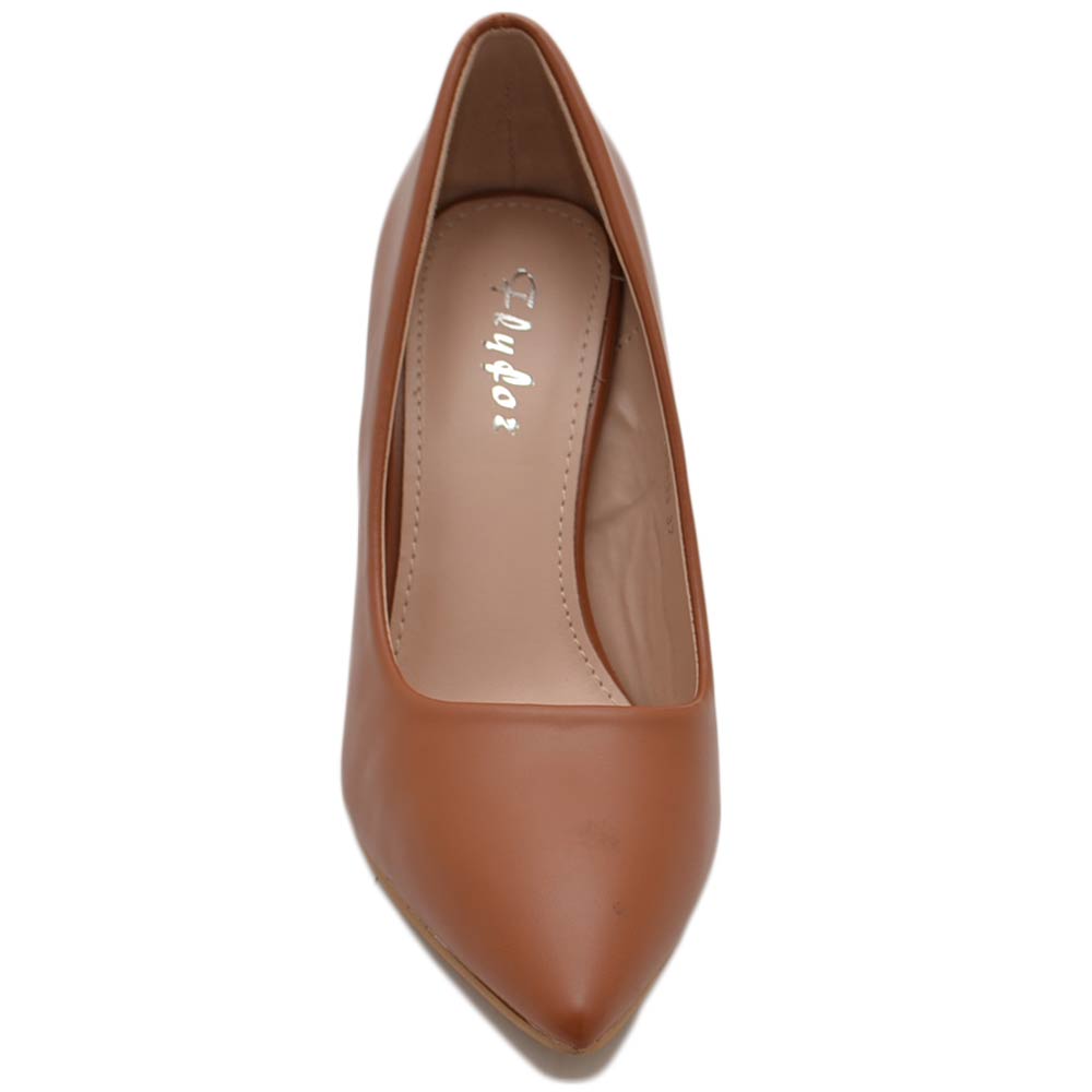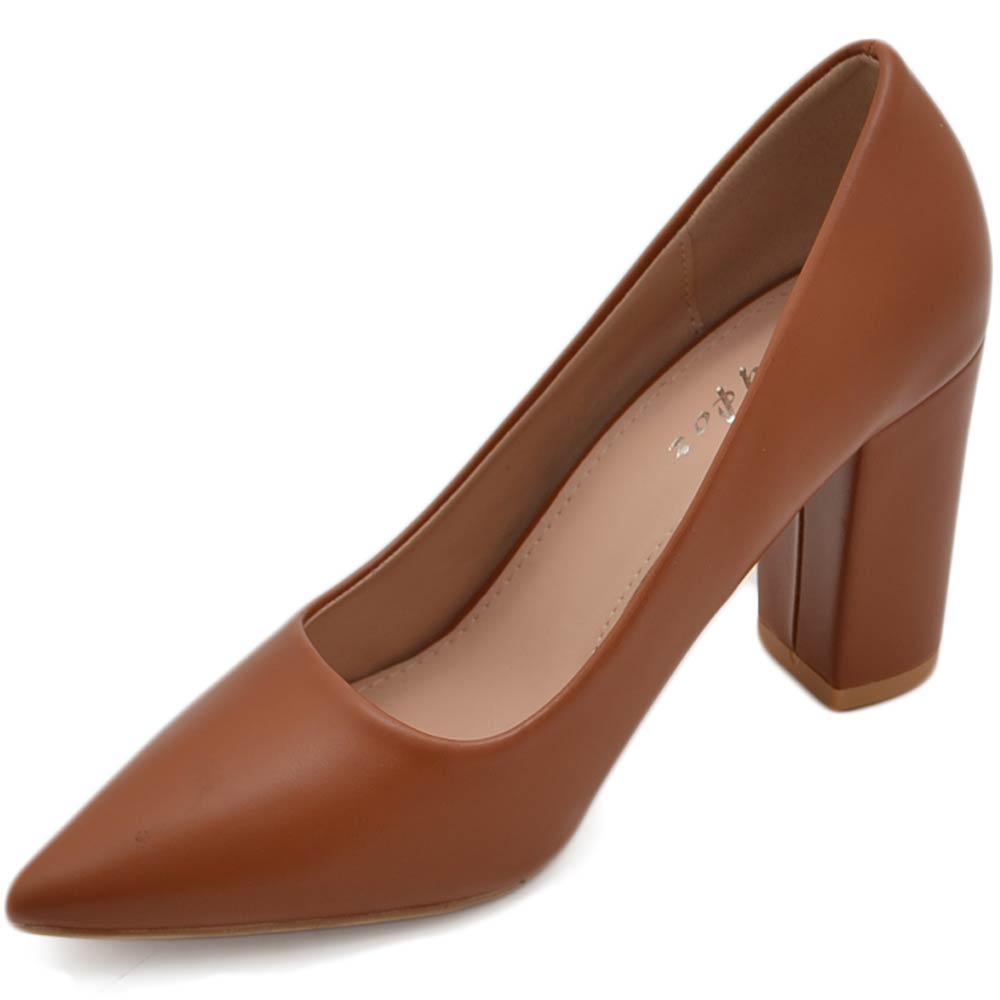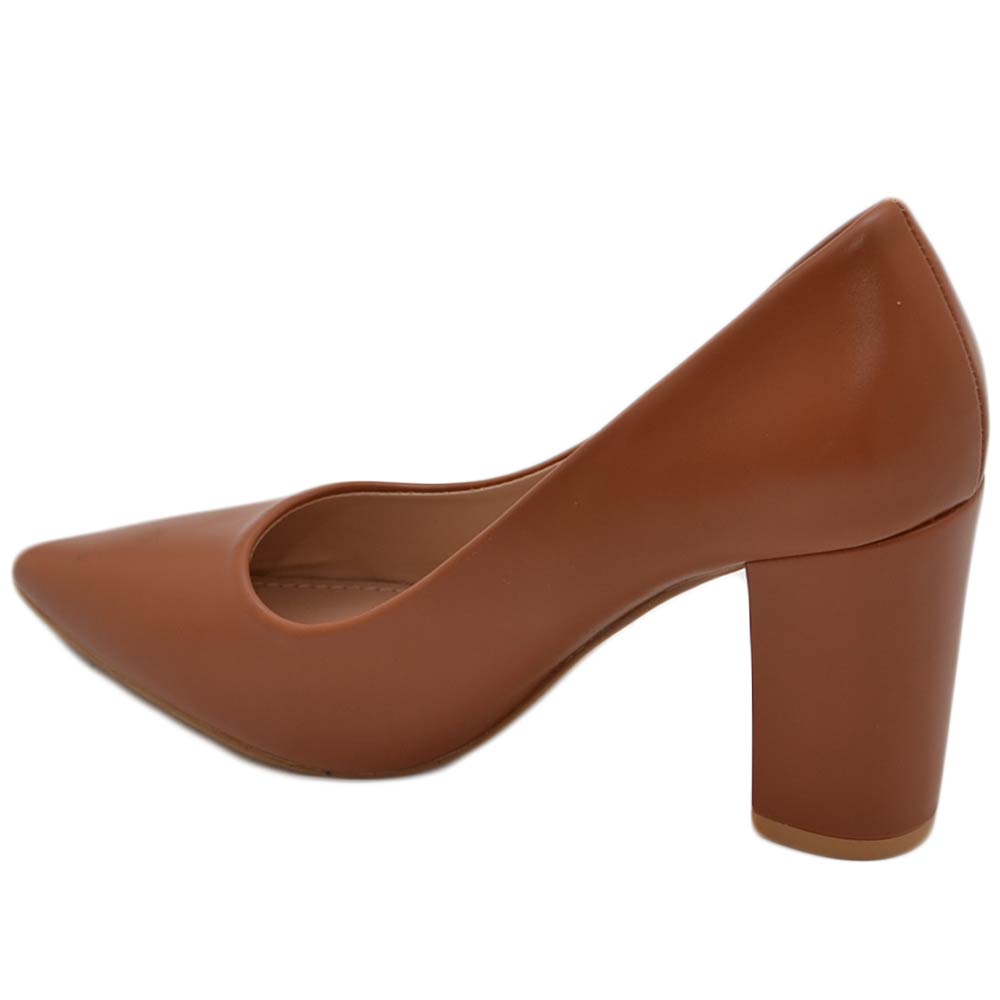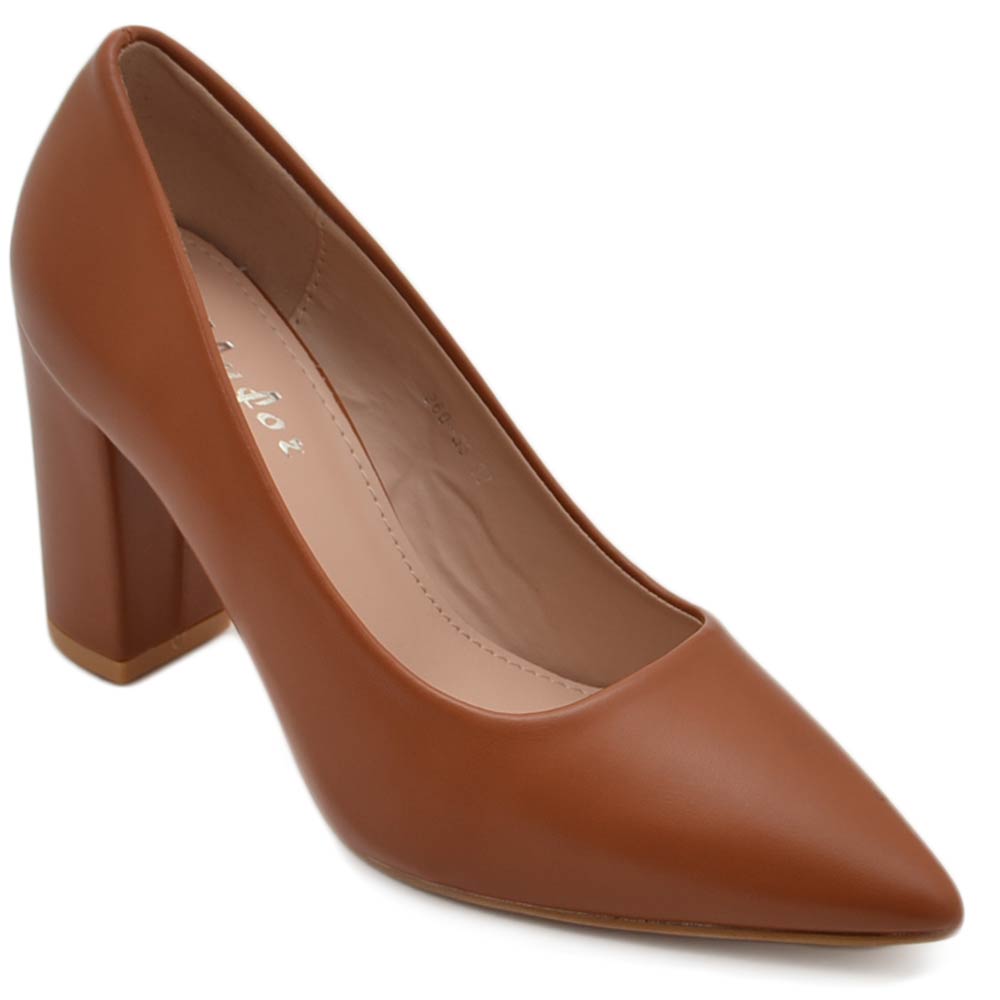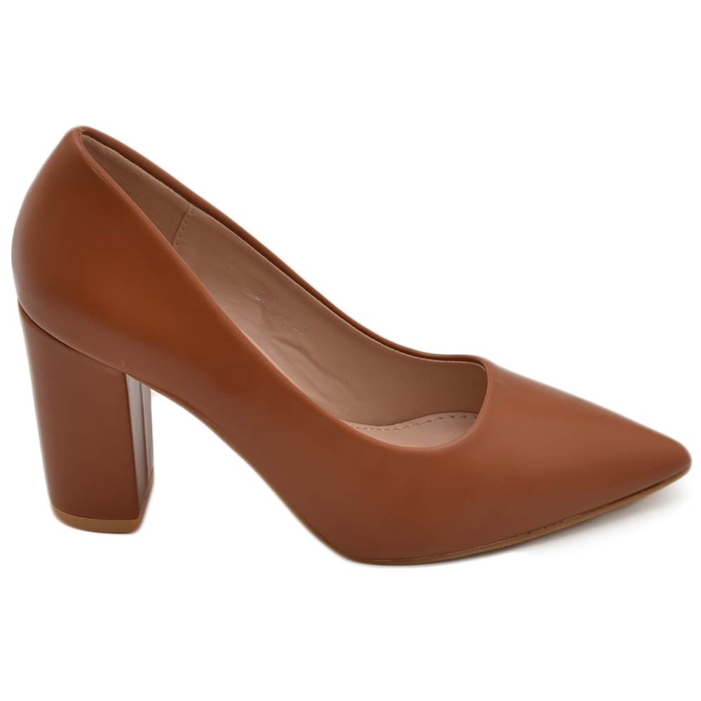 Decollete' donna in ecopelle matte cuoio tacco doppio 9 cm comfort morbido moda glamour evento