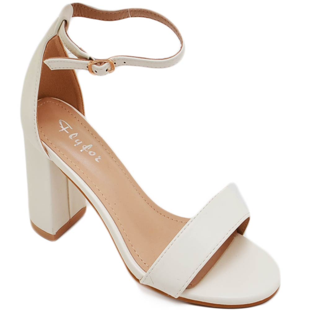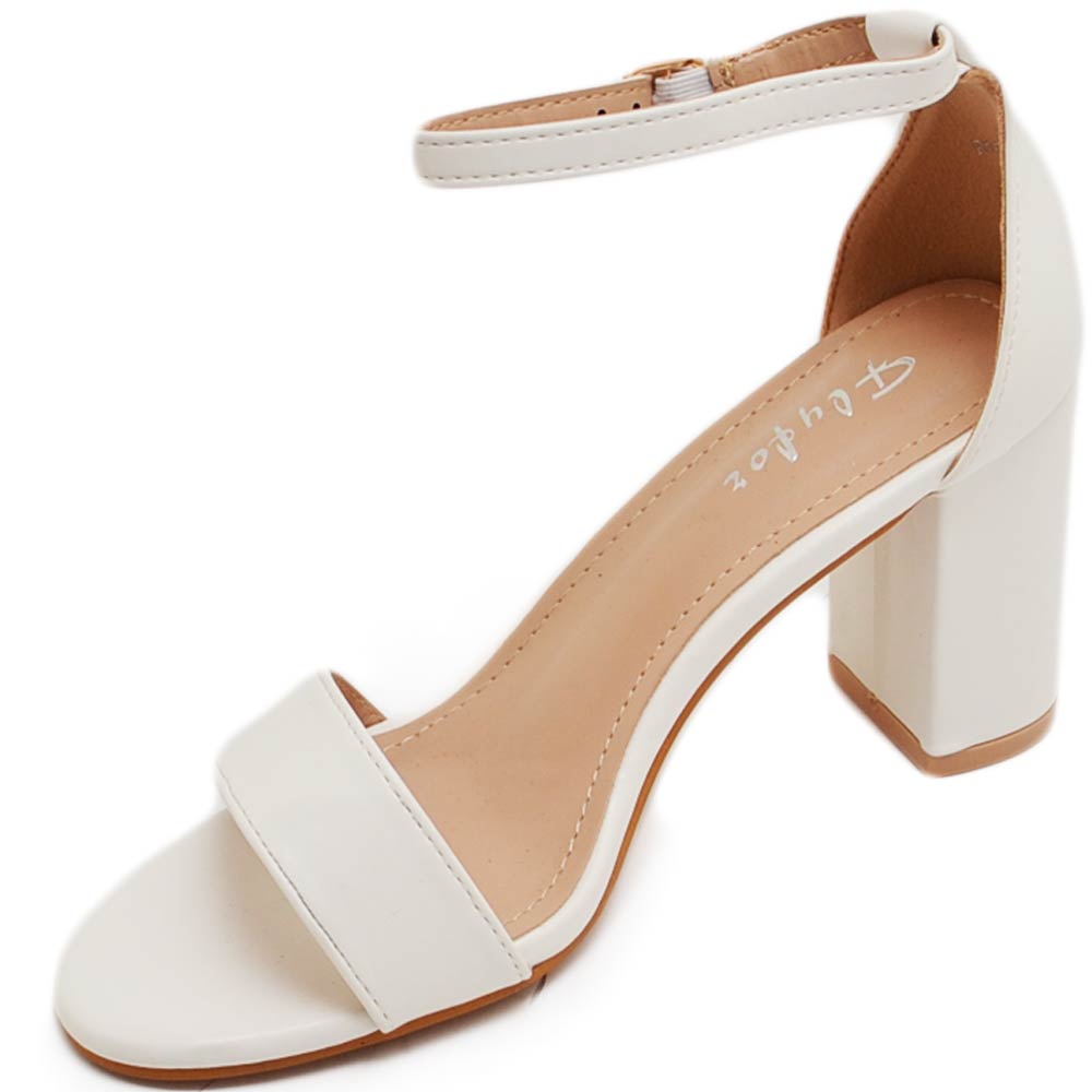 Sandalo alto donna bianco con tacco doppio 6 cm cinturino alla caviglia linea basic cerimonia evento elegante