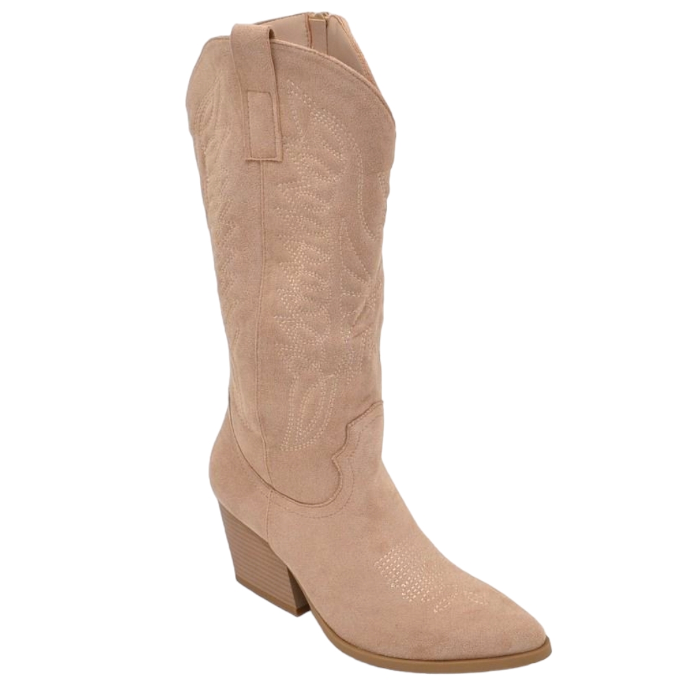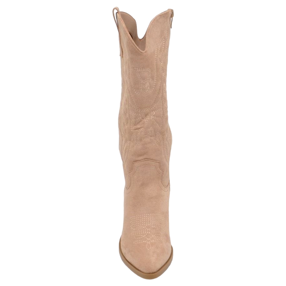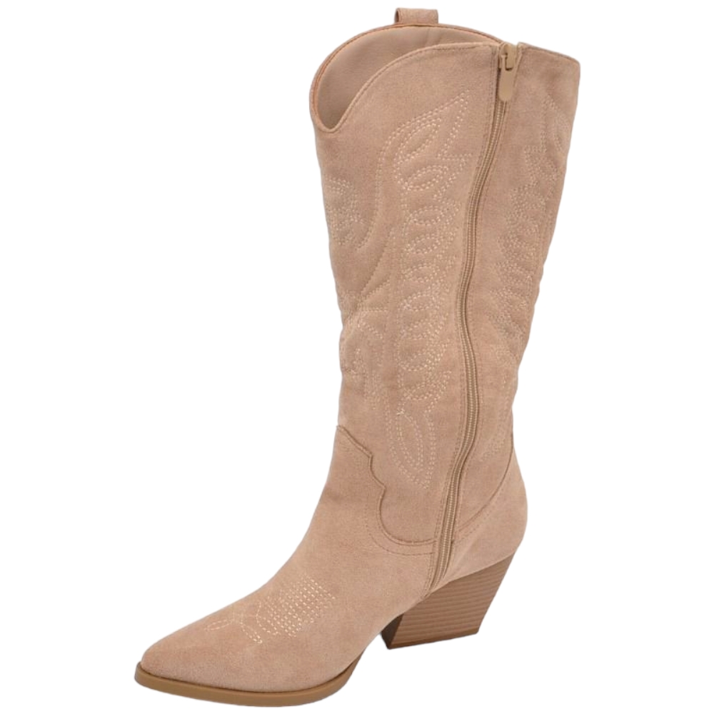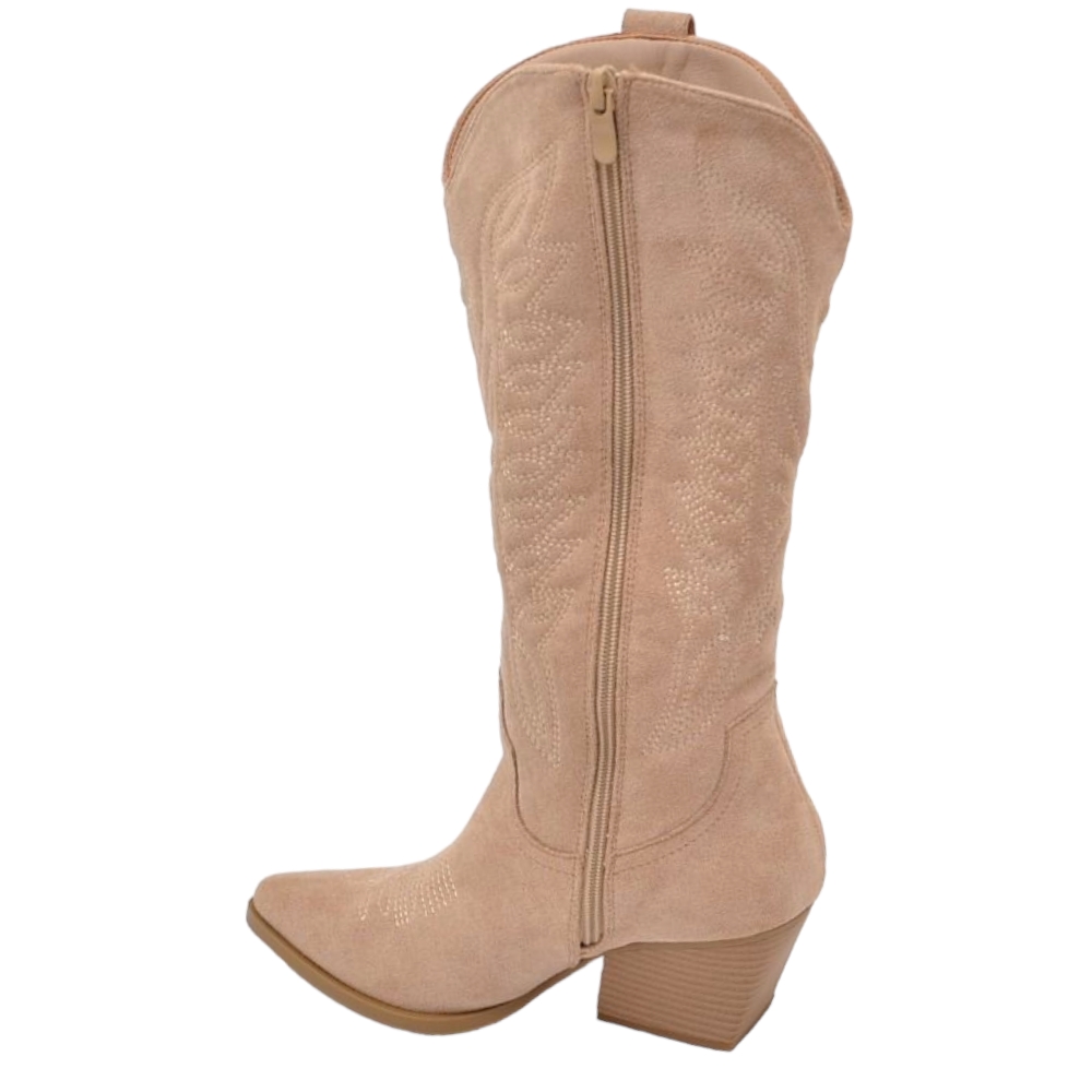 Camperos donna stivali texani beige in camoscio con tacco 5 cm tinta unita zip moda
