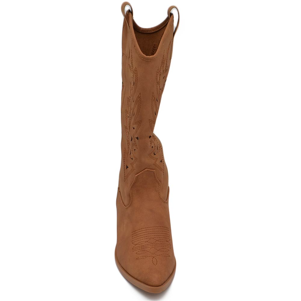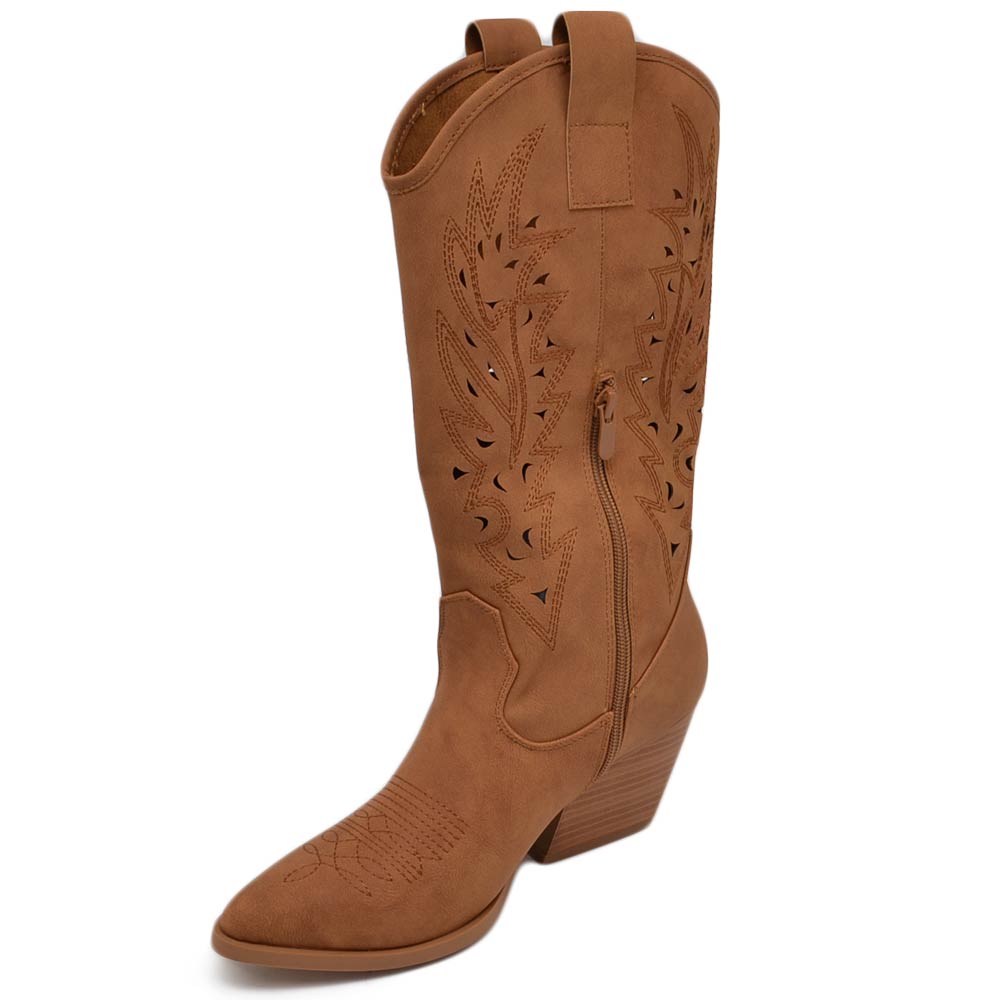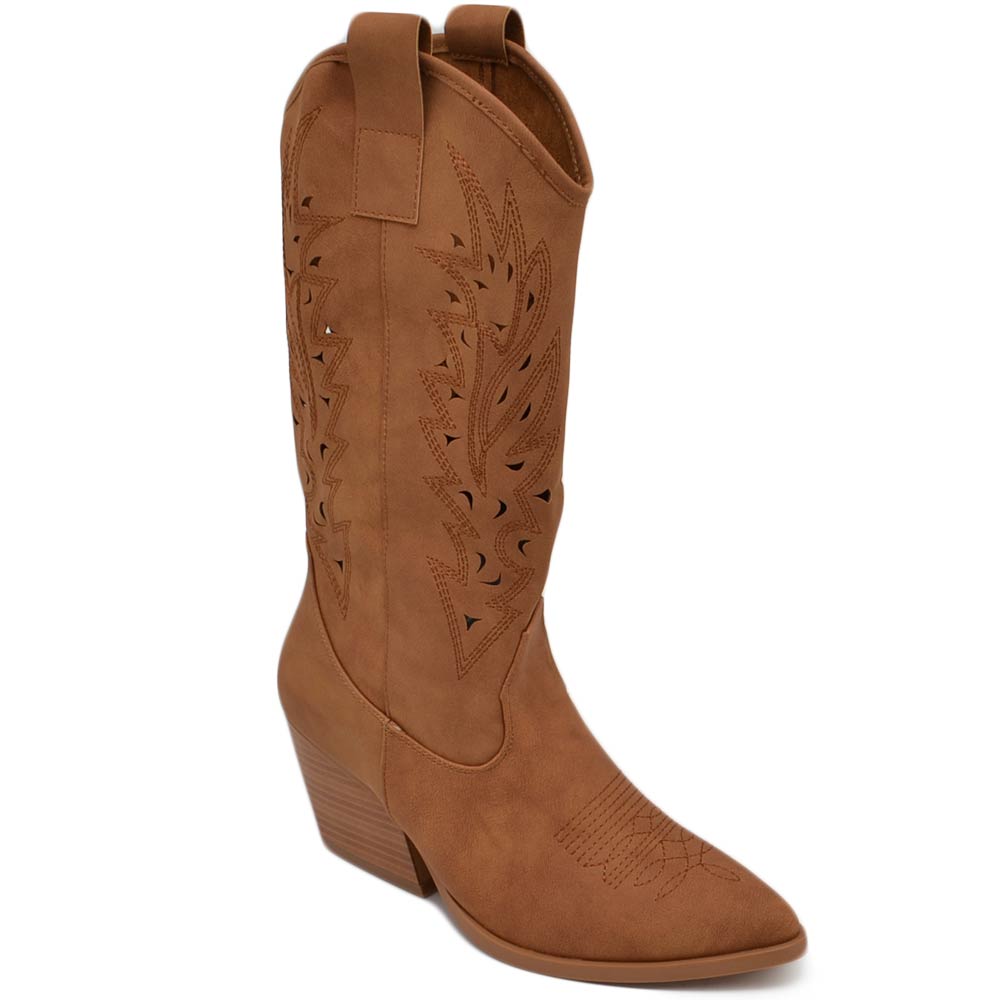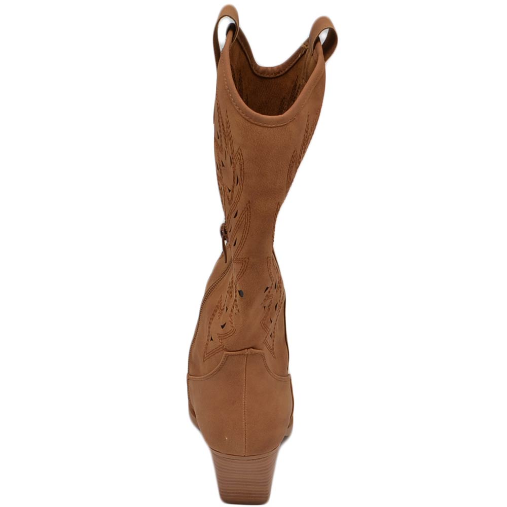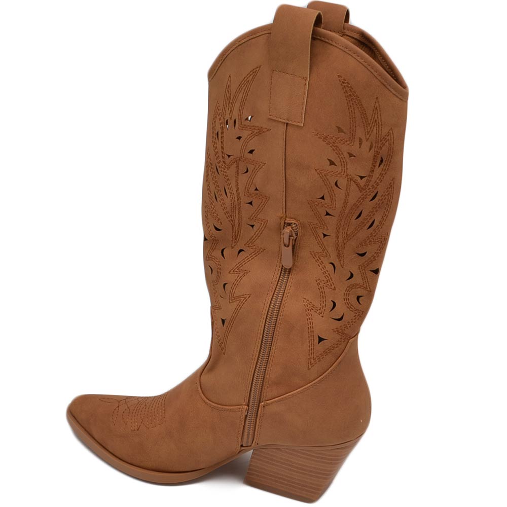 Stivali donna camperos texani stile western forati estivi cuoio scamosciato tacco western 7 cm legno con zip laterale
