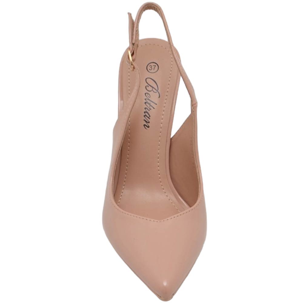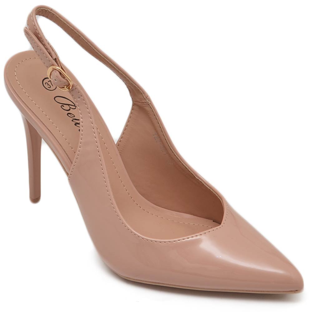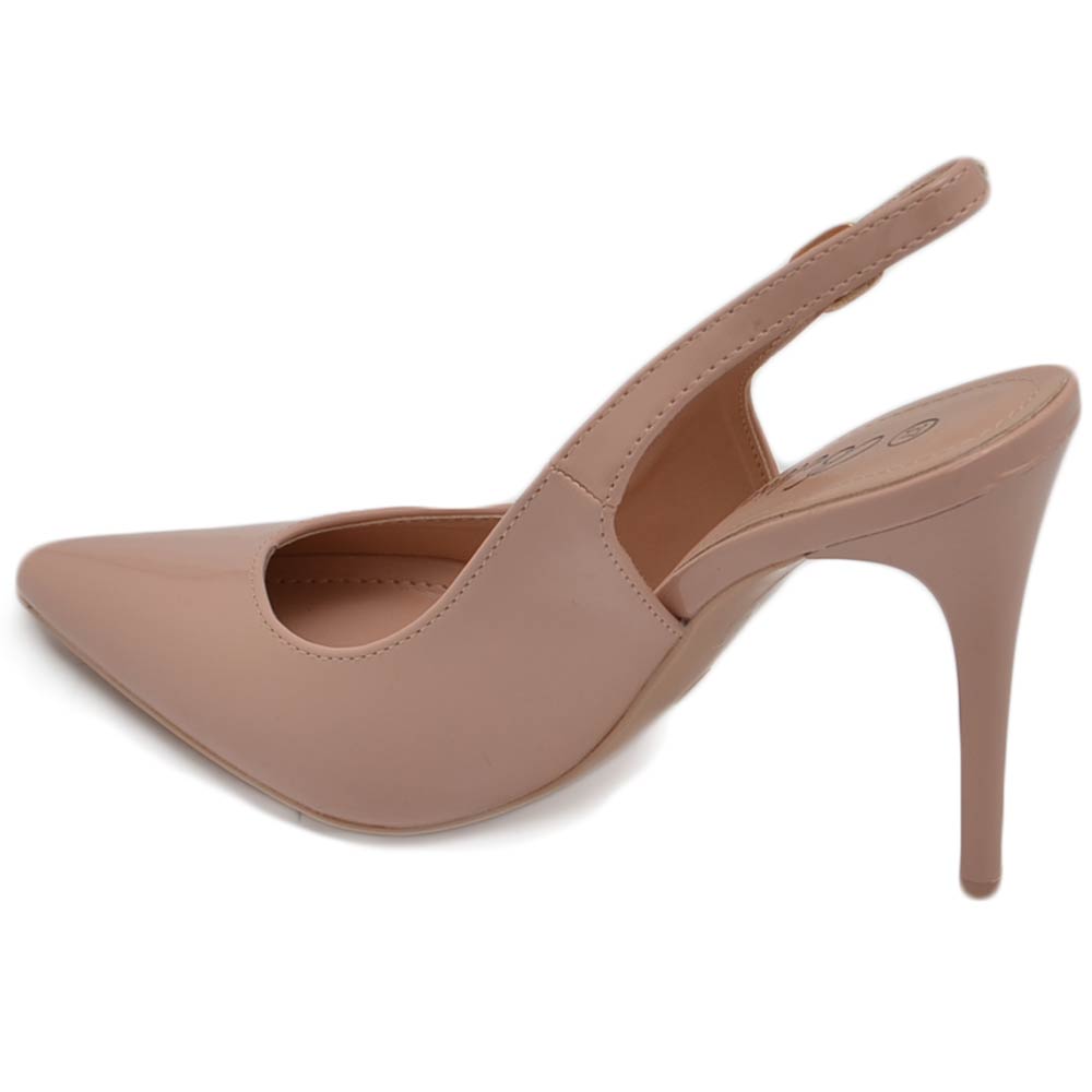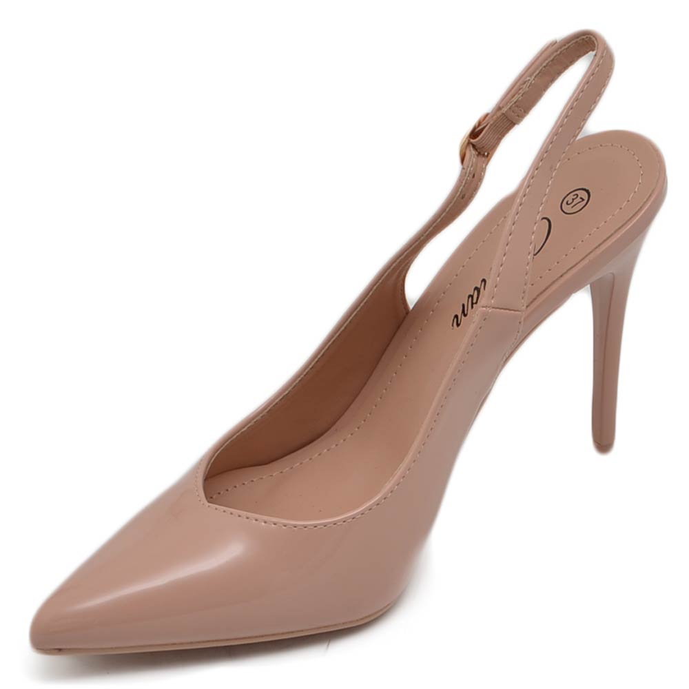 Scarpe decollete slingback donna elegante punta in vernice lucida nude tacco 12 cm cerimonia cinturino retro tallone