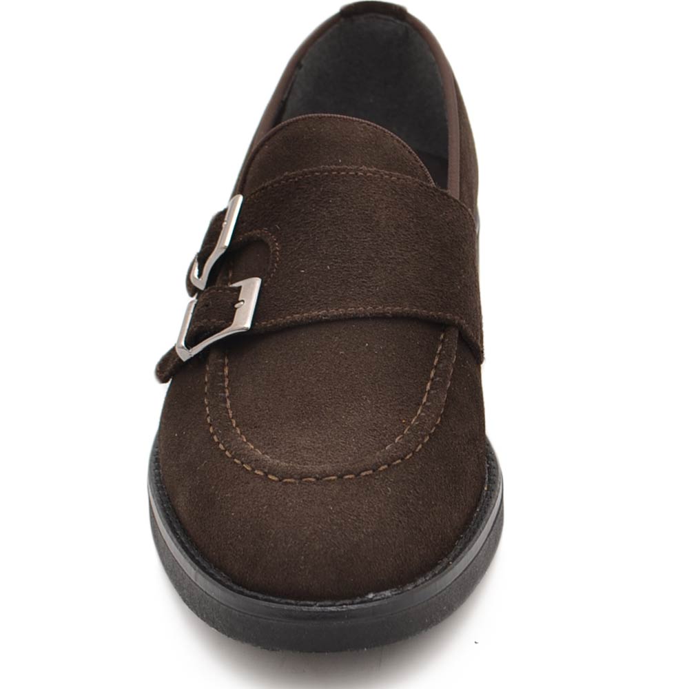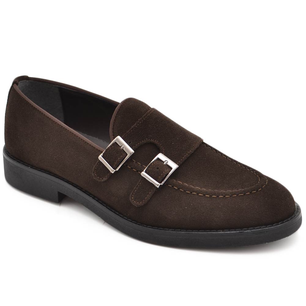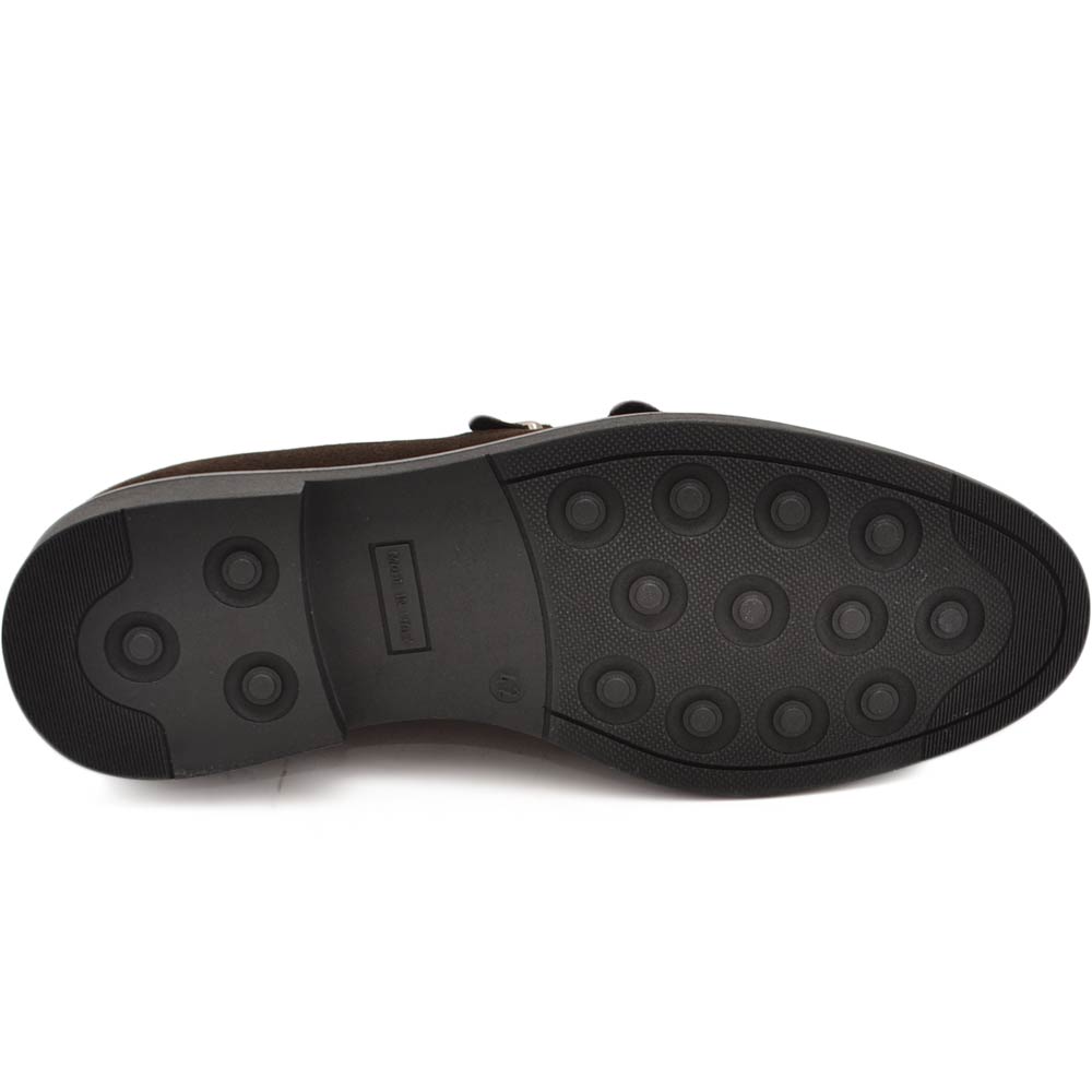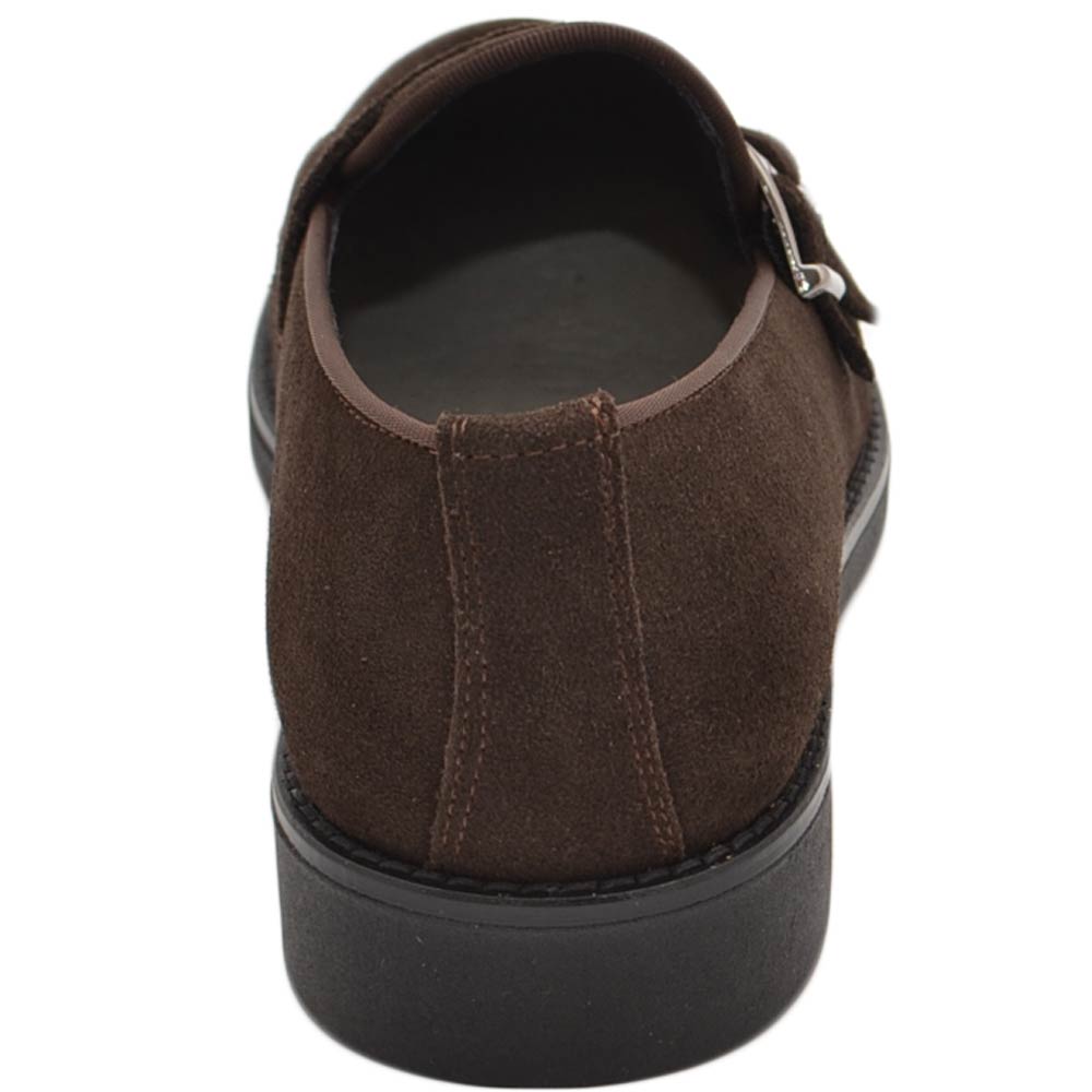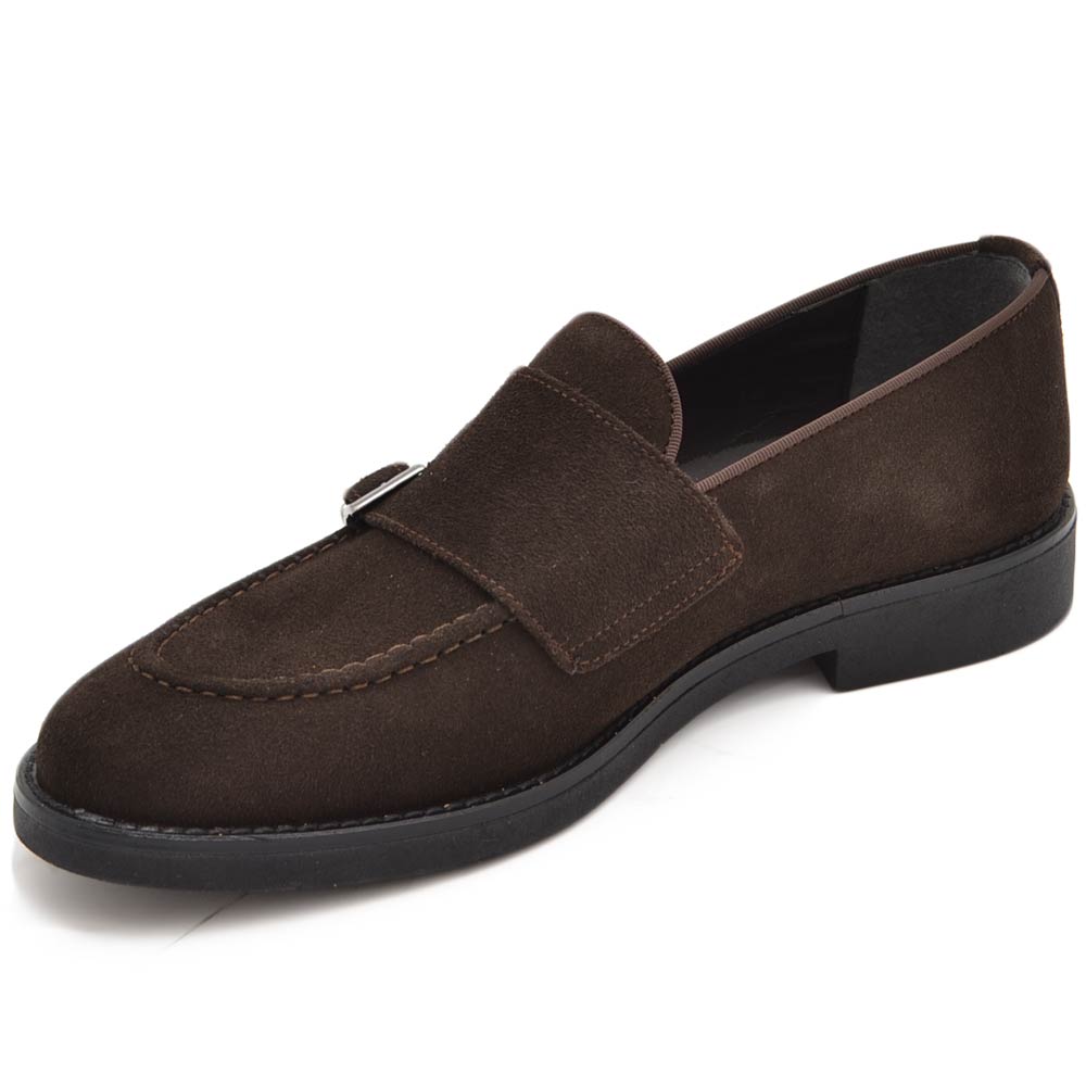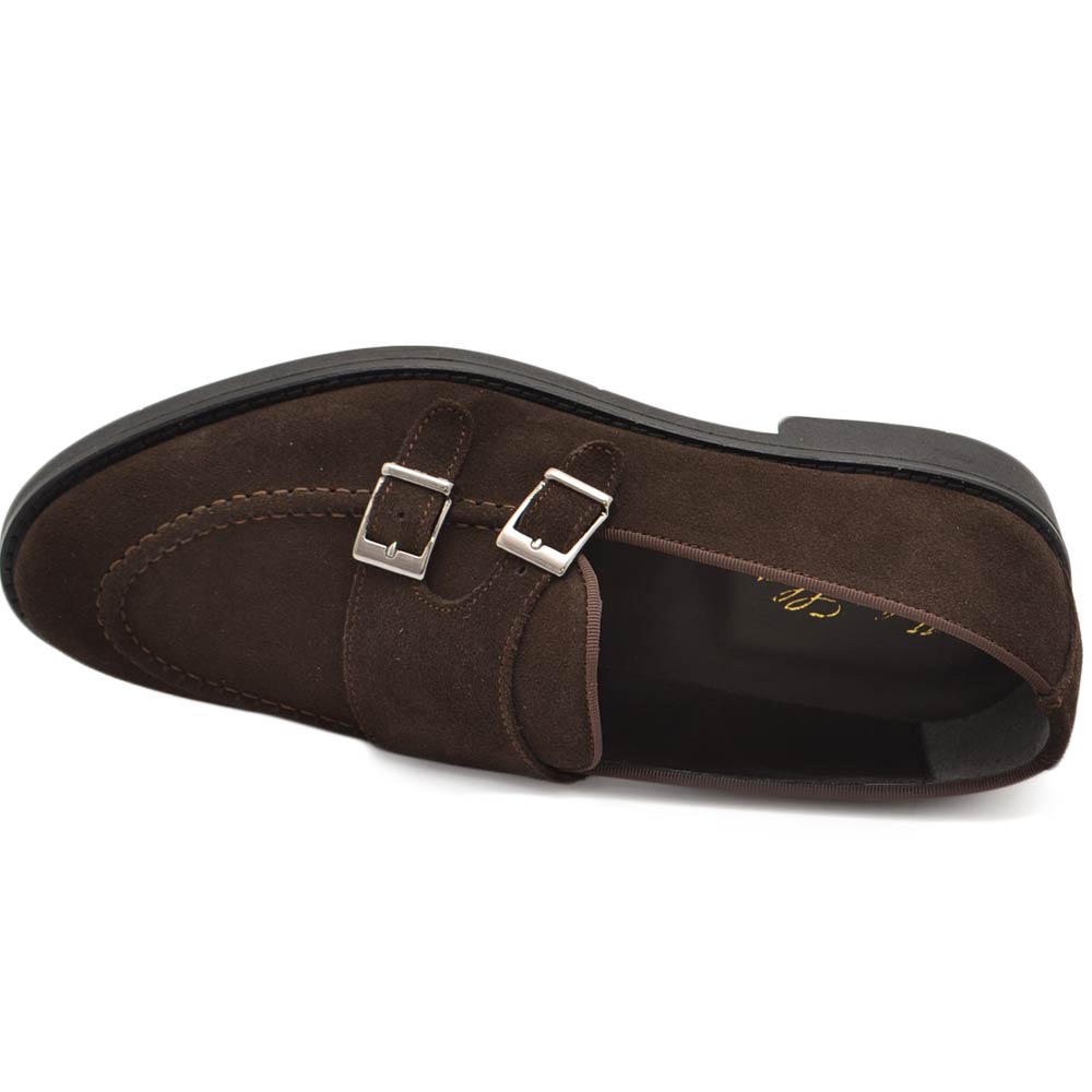 Scarpe mocassino uomo doppia fibbia in vera pelle camoscio marrone fondo in gomma leggera fibbia argento