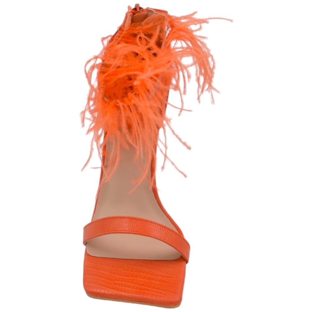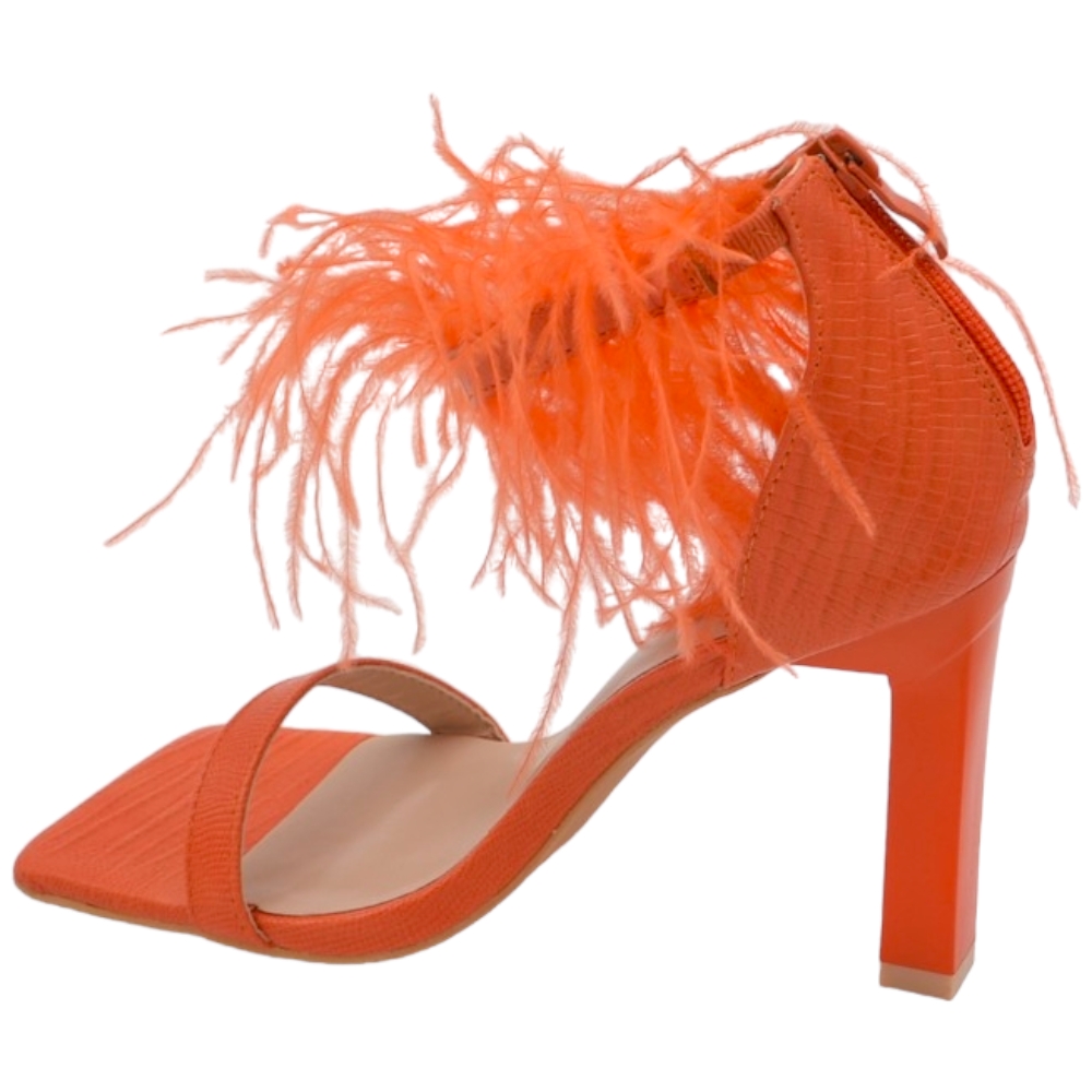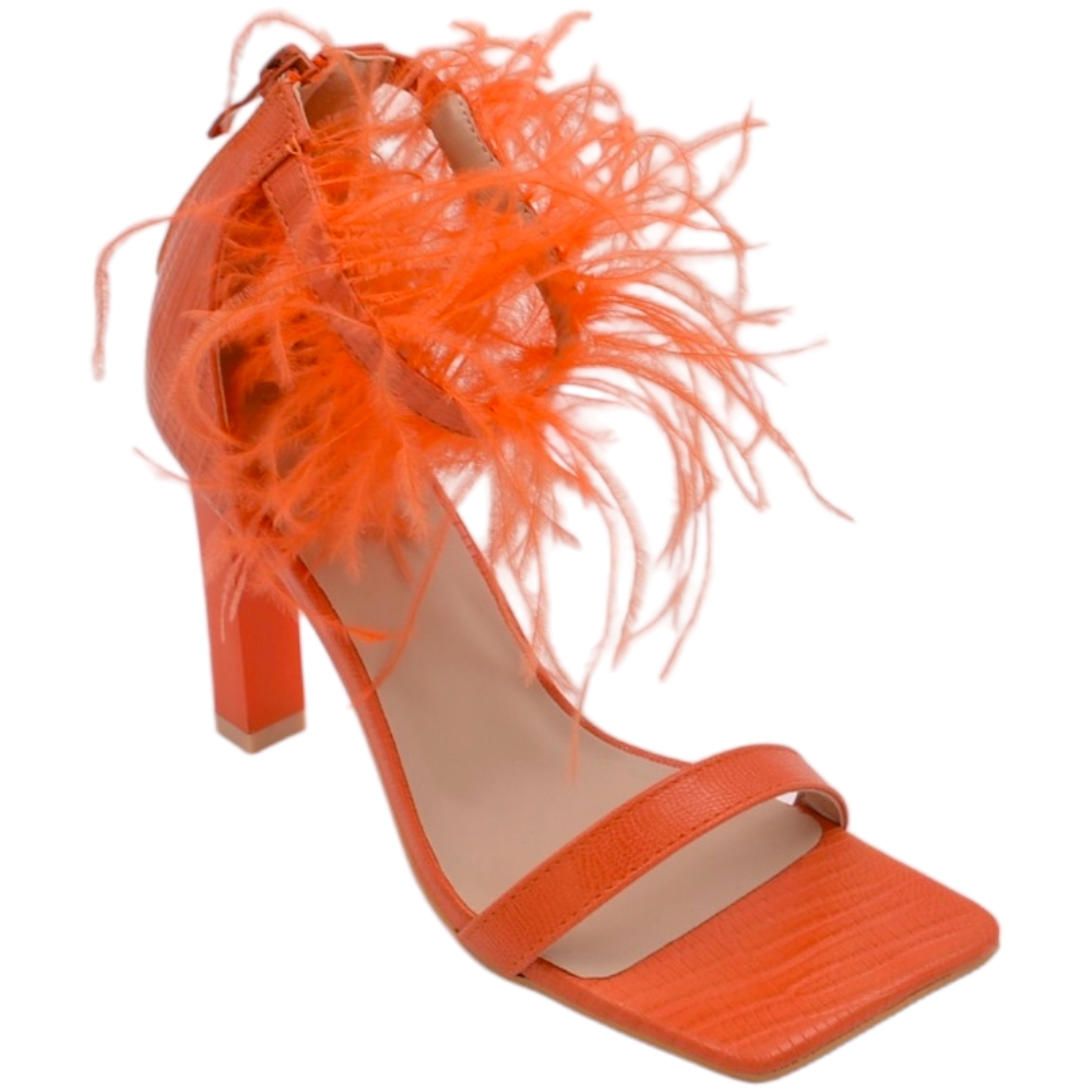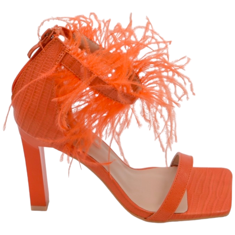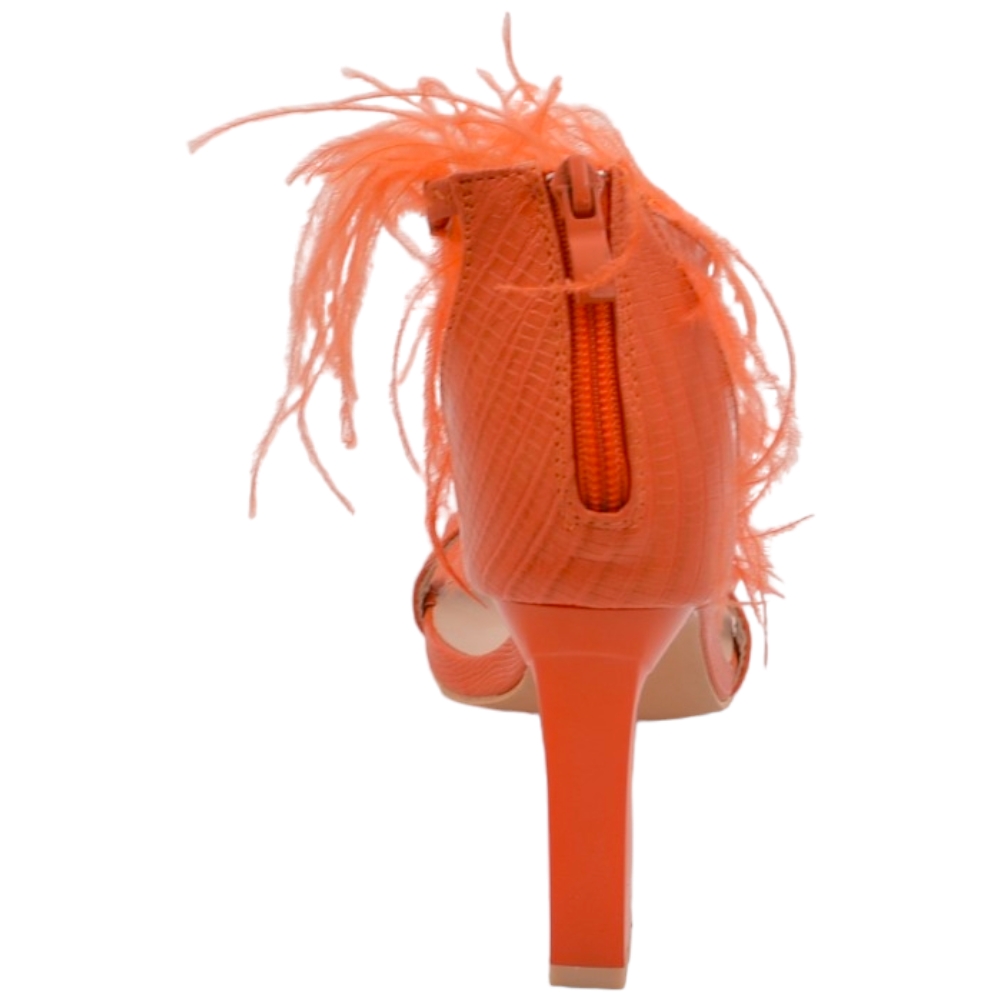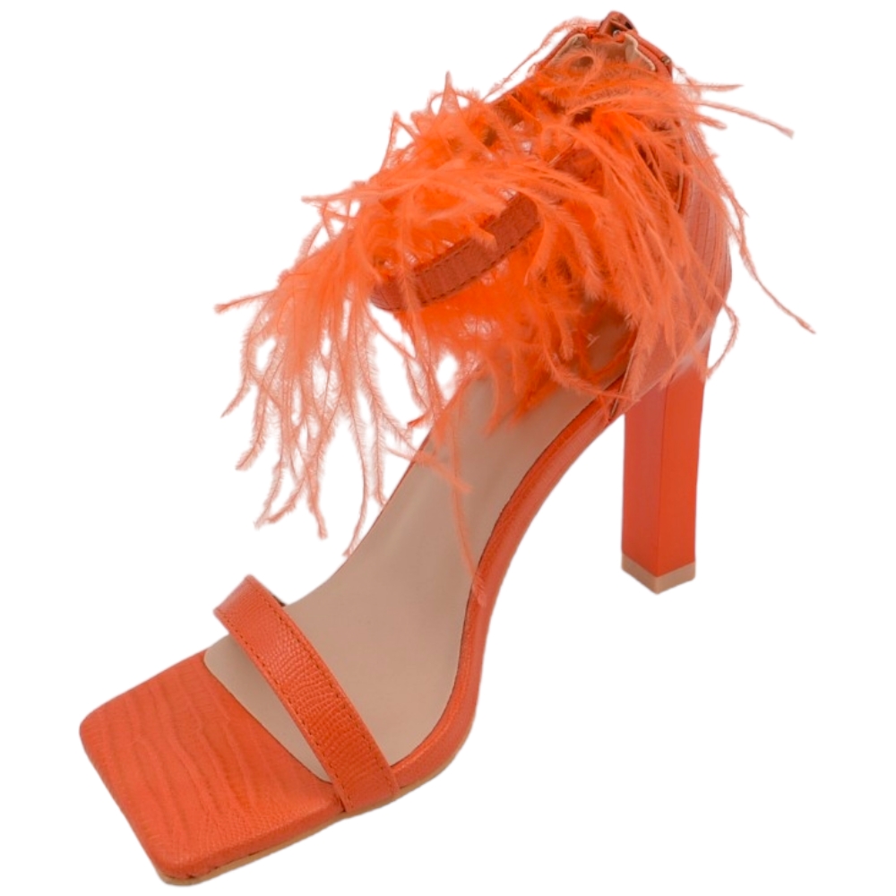 SANDALI TACCO DONNA IN PELLE STAMPA COCCO ARANCIONE CON FASCETTE PIUME TACCO DOPPIO 12CM CHIUSURA ZIP