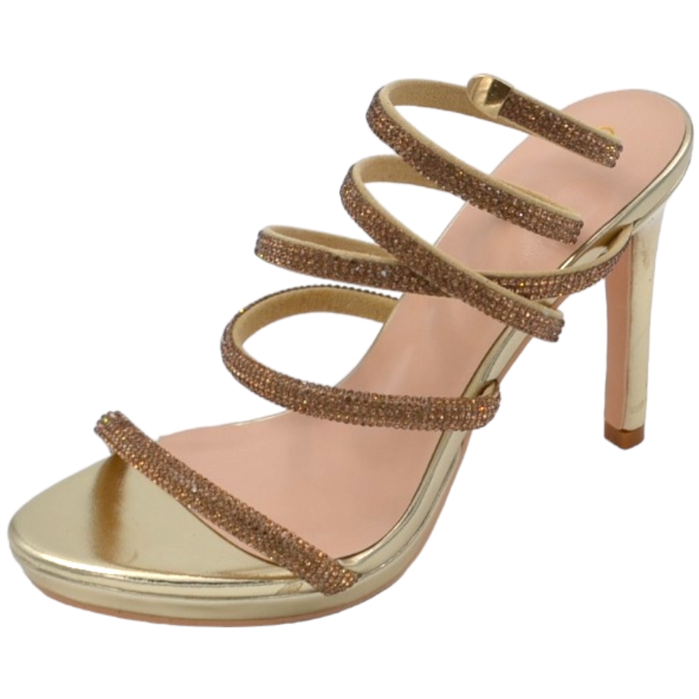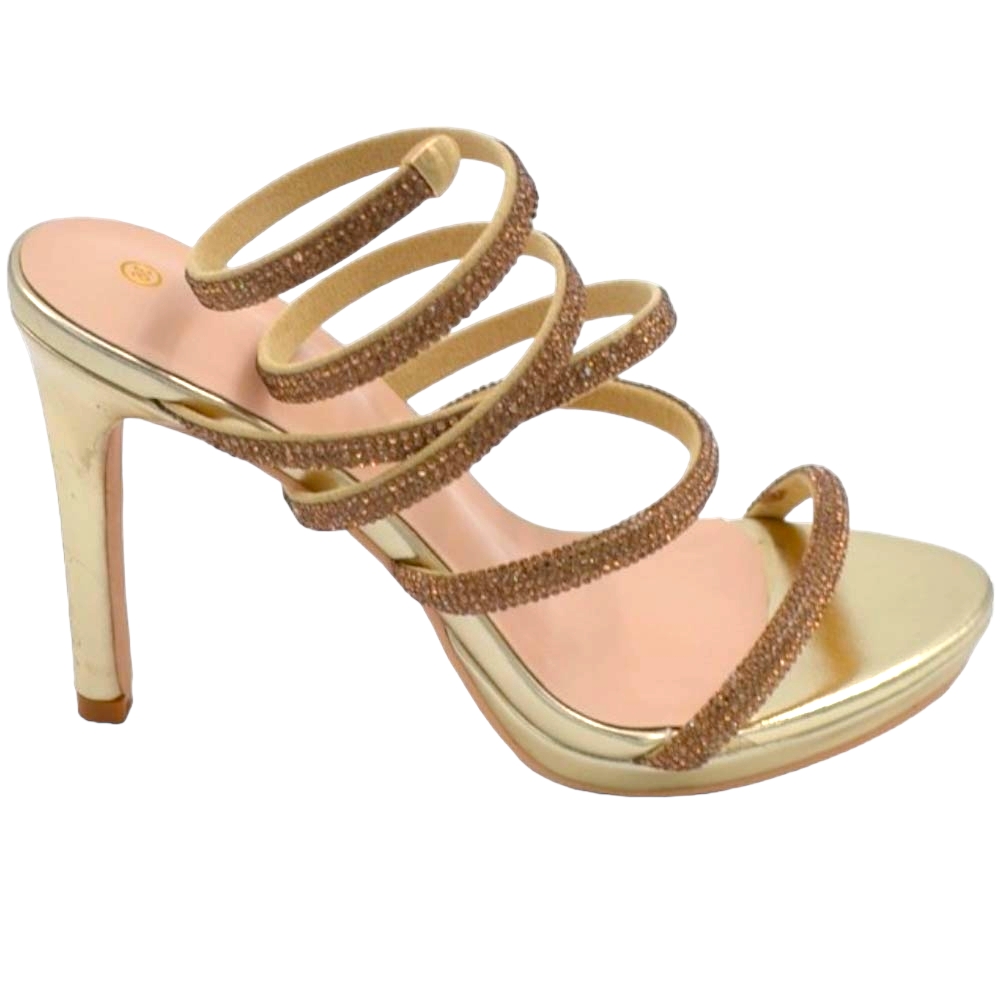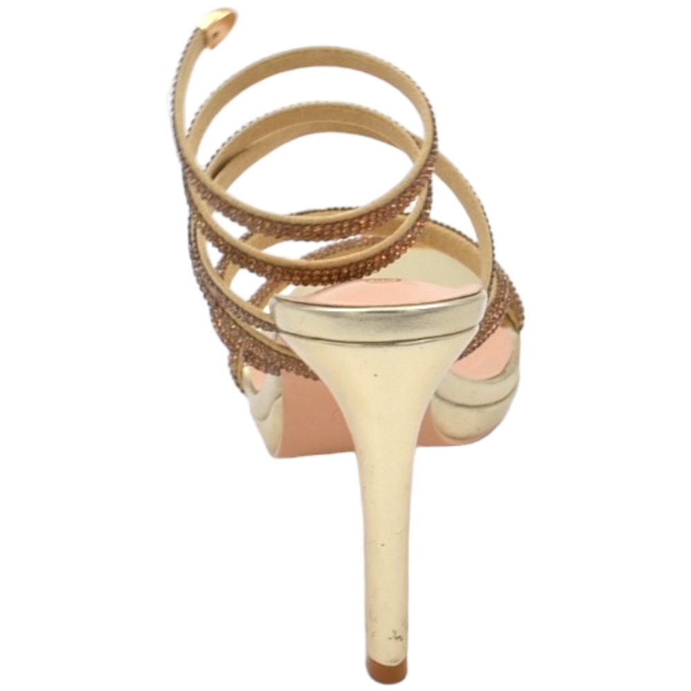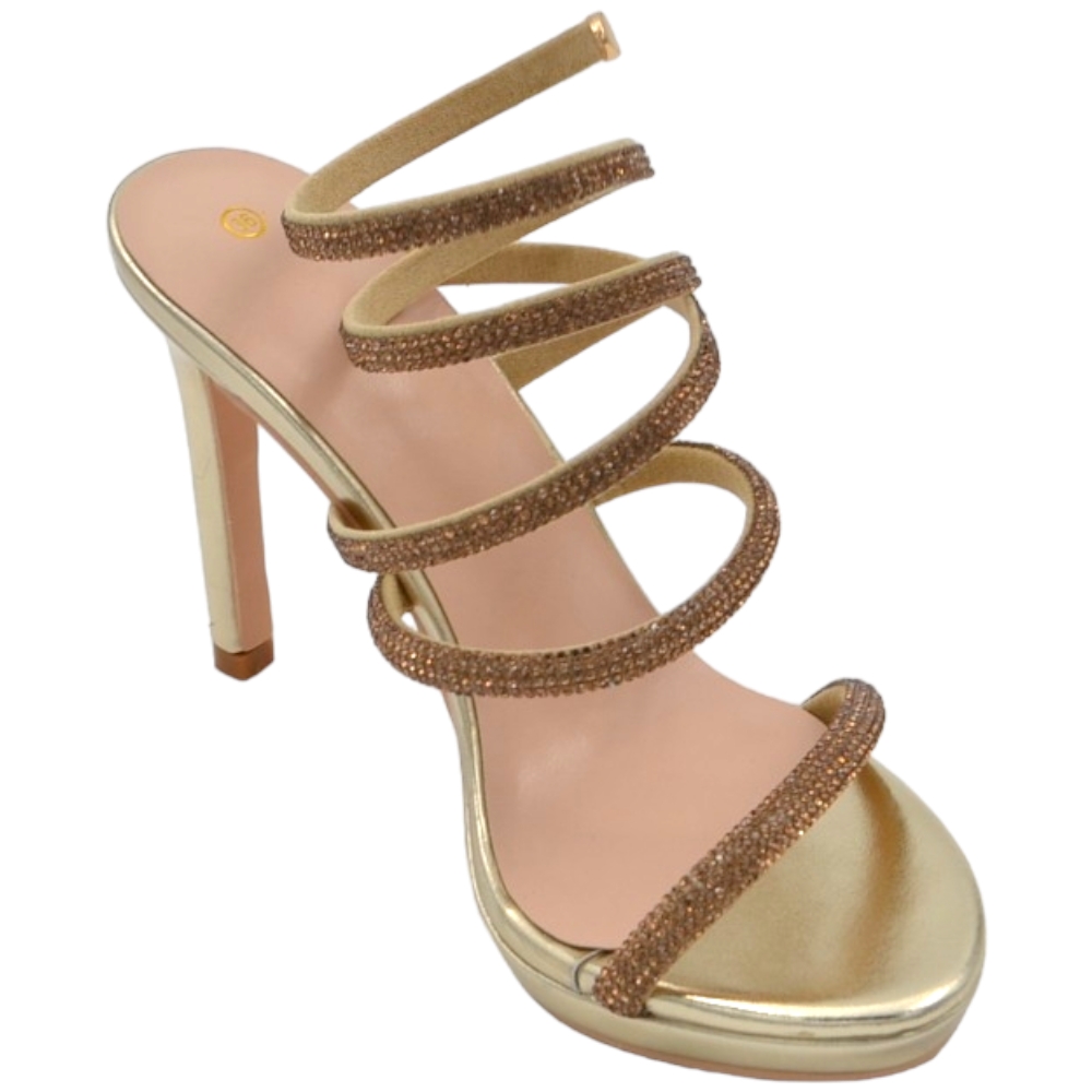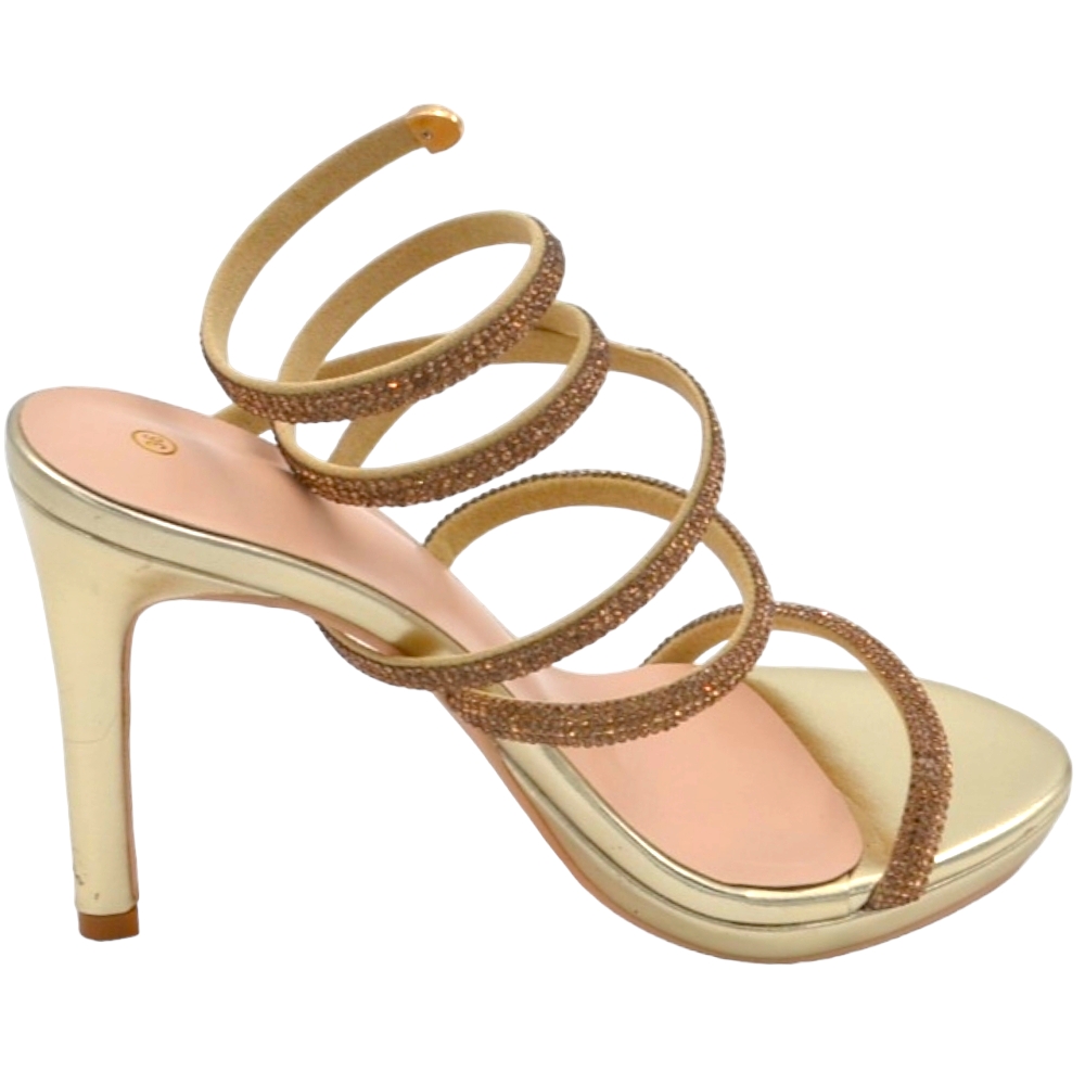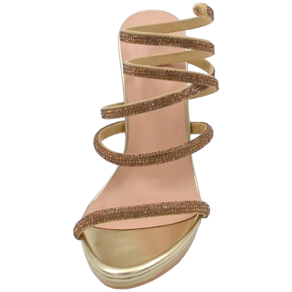 Sandali donna gioiello oro tacco 12 cm e plateau serpente rigido si attorciglia alla gamba regolabile brillantini
