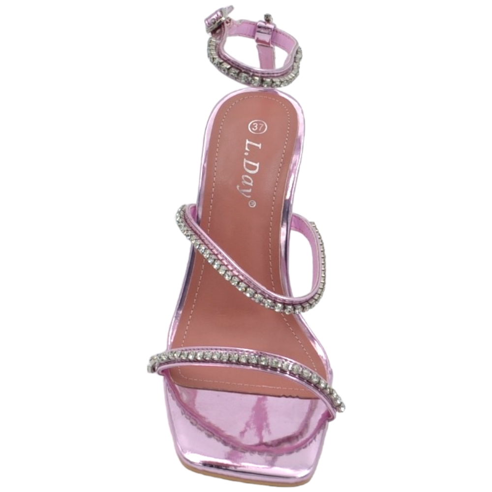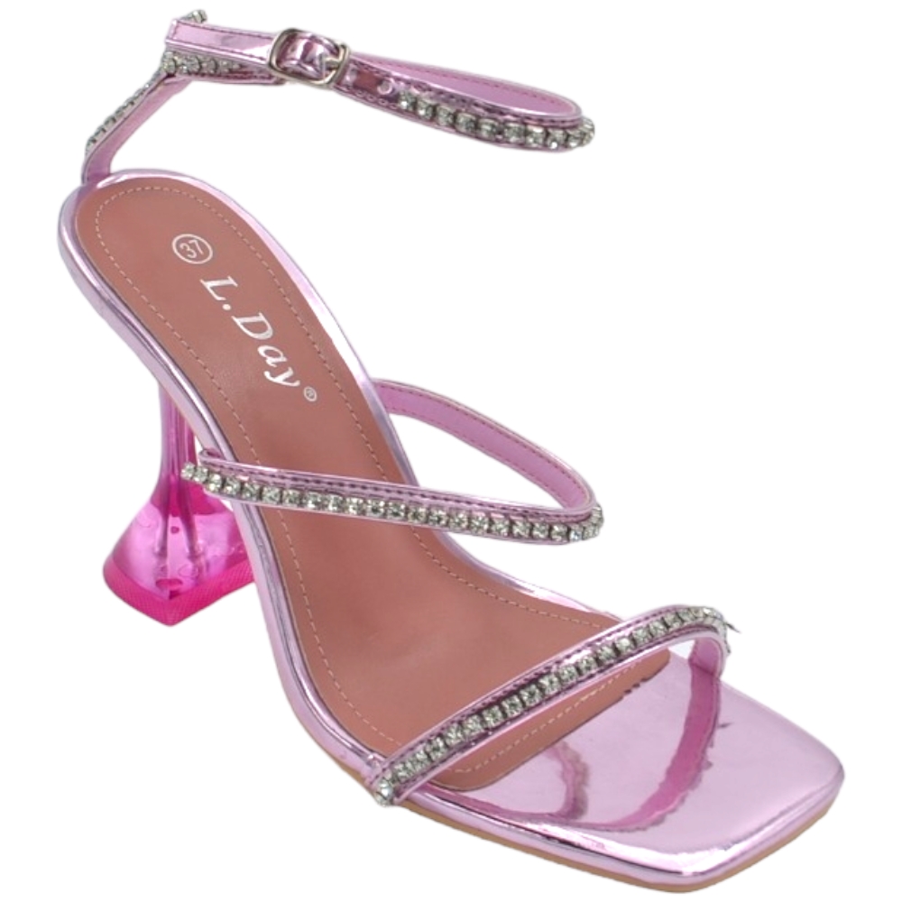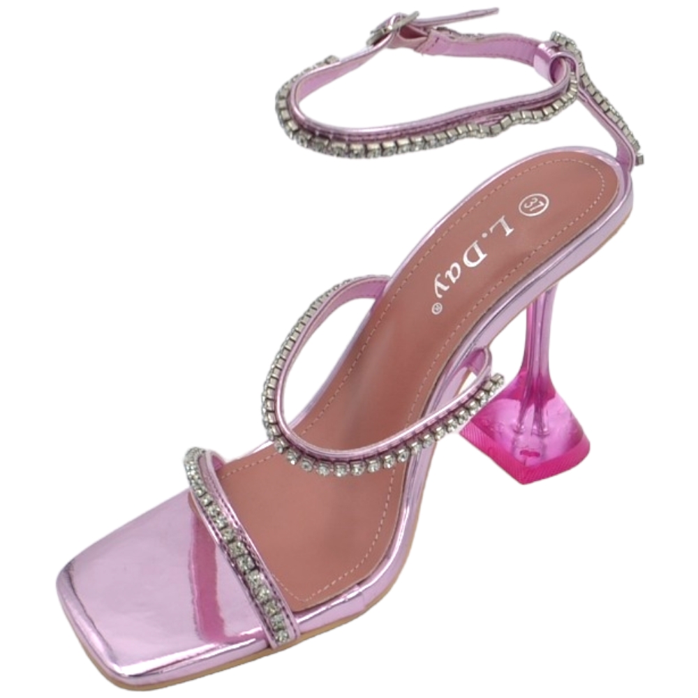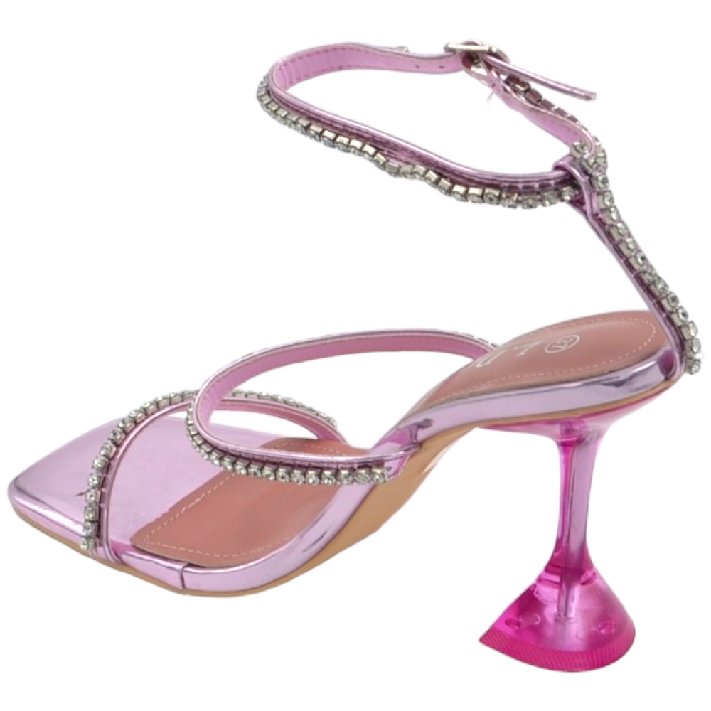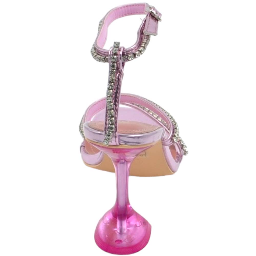 Sandali donna cerimonia a 3 fasce piede nudo con cavigliera glicine brillantini tacco trasparente 10 martini elegante