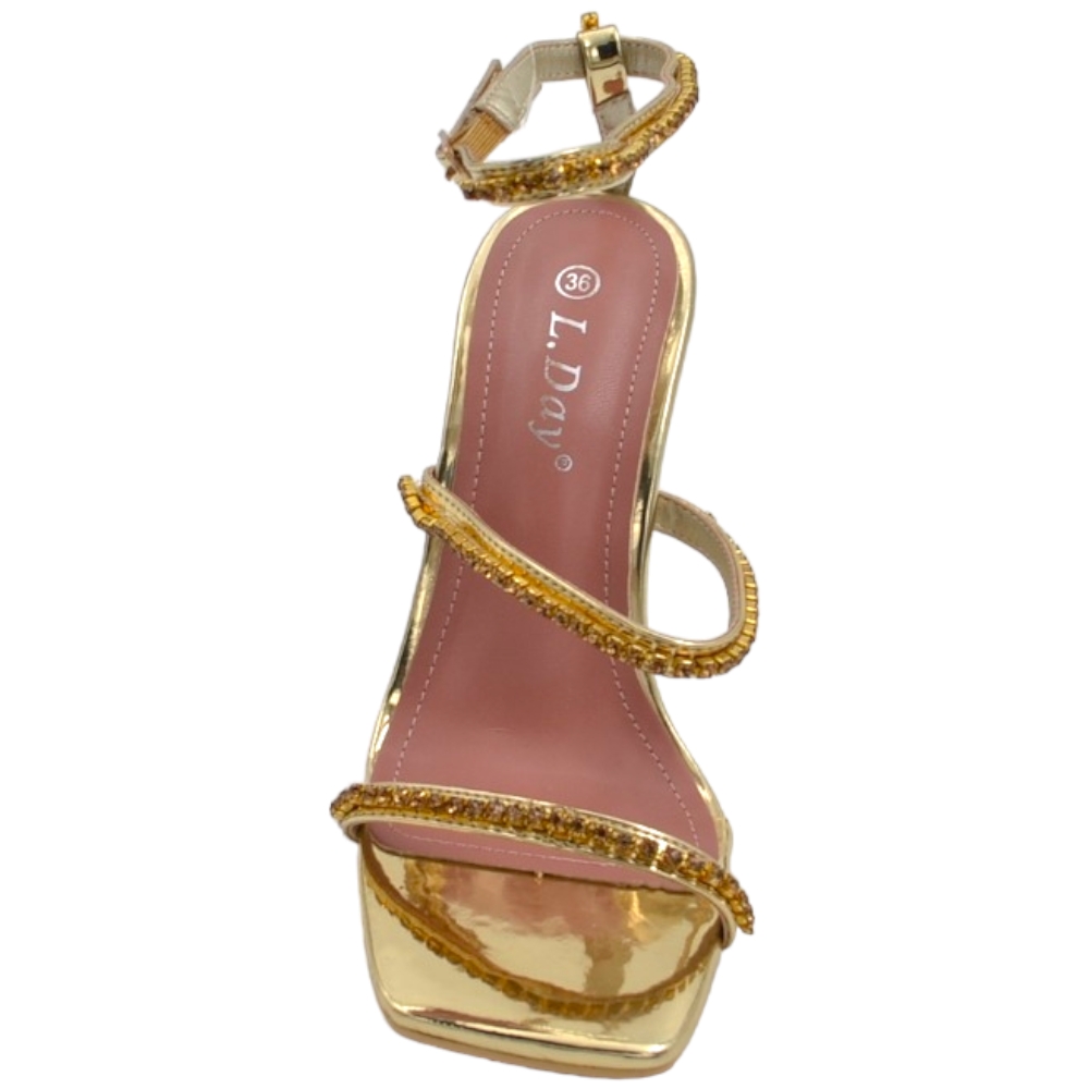 SANDALI ORO DONNA FASCE BRILLA...