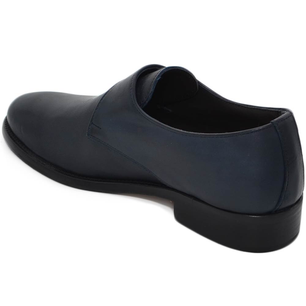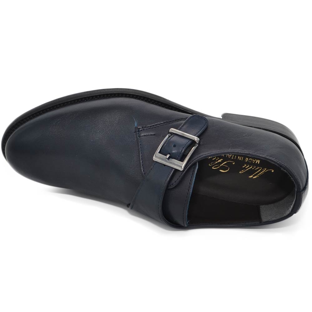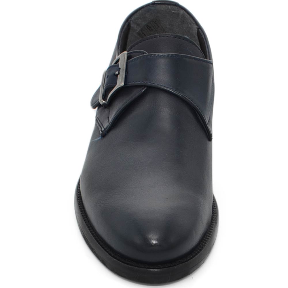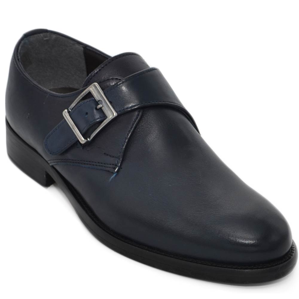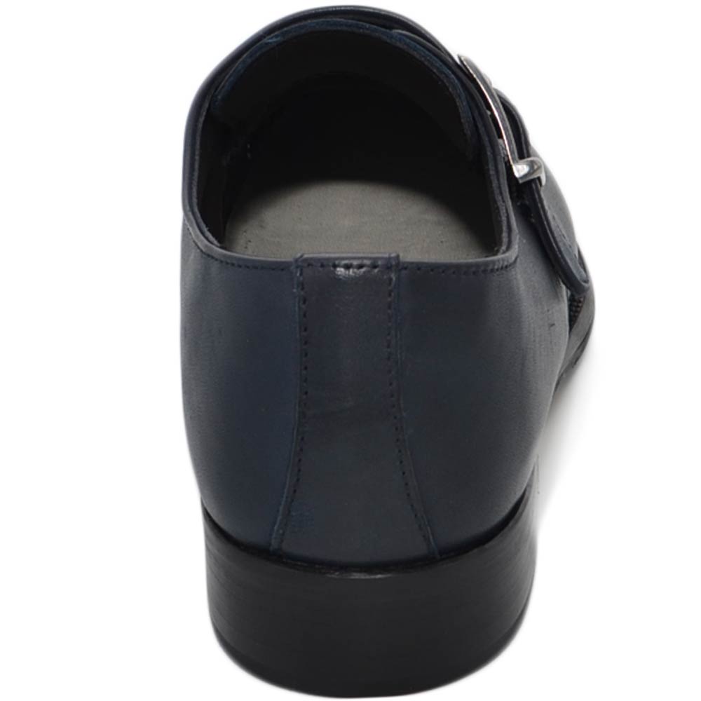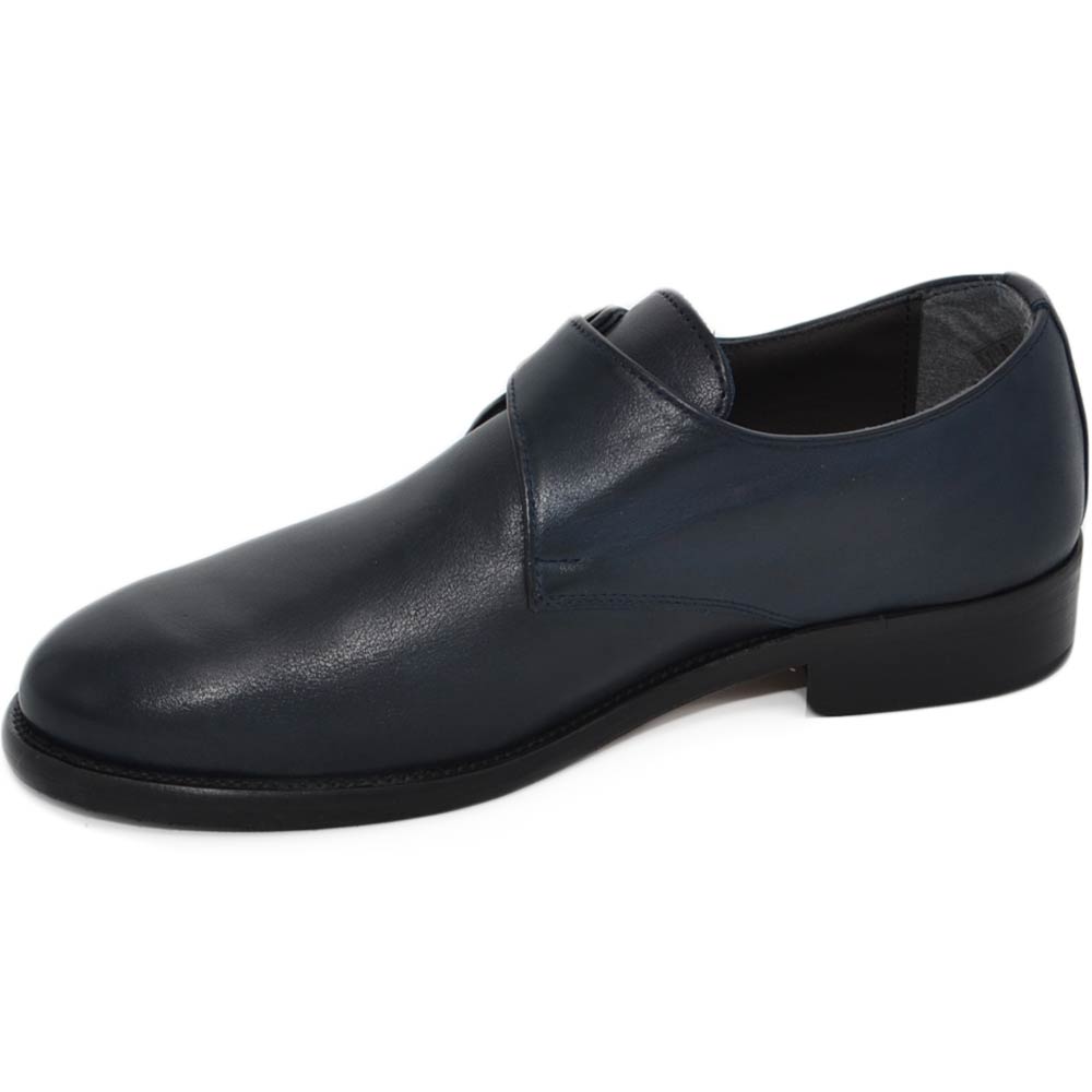 Scarpe uomo con fibbia eleganti vera pelle blu opaca suola cuoio con antiscivolo handmade in italy fibbia argento