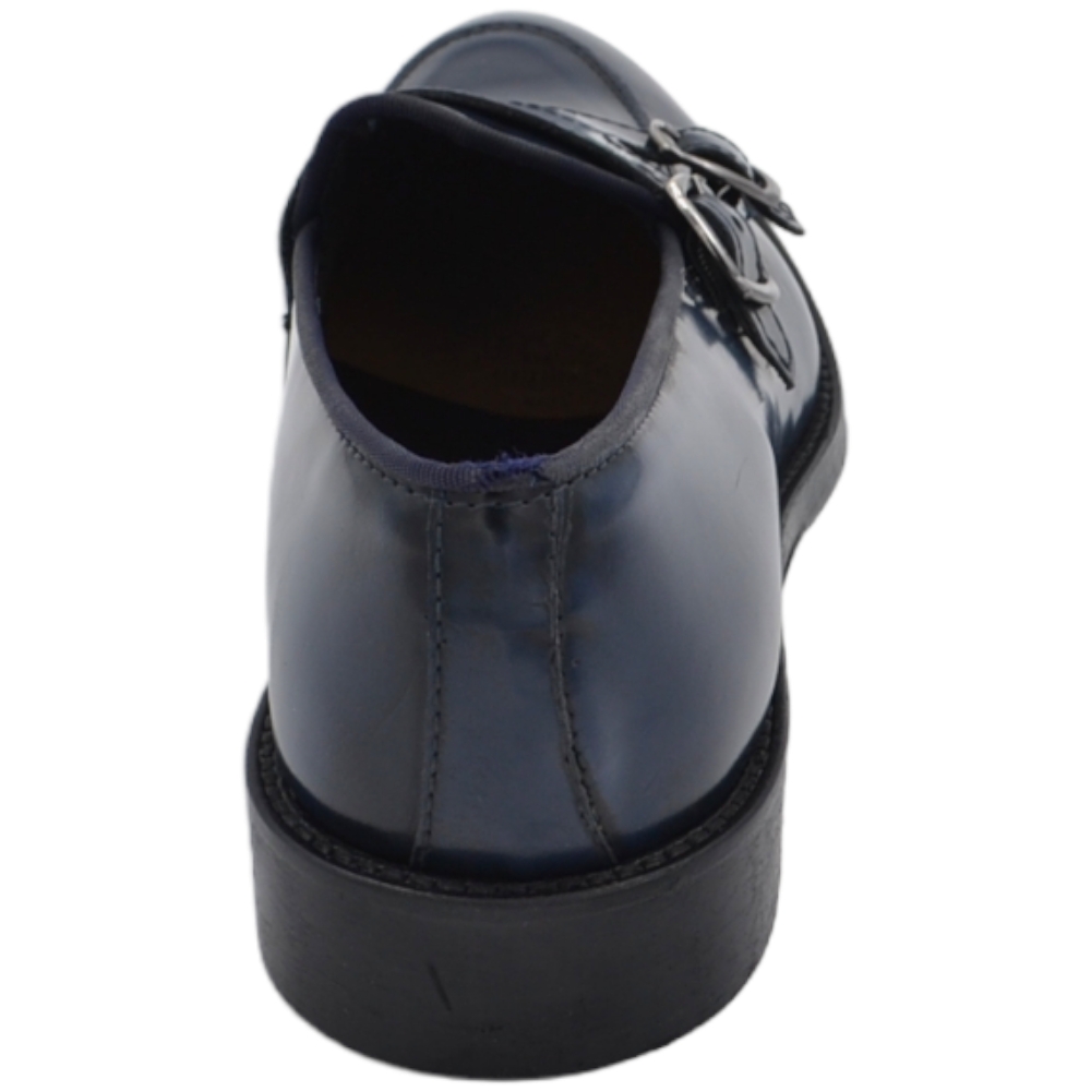 Scarpe mocassino uomo doppia fibbia in vera pelle nappa blu fondo in cuoio con antiscivolo leggera fibbia argento