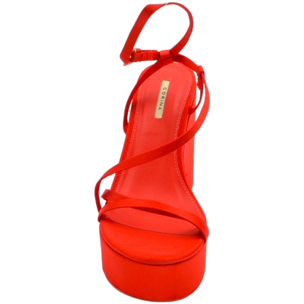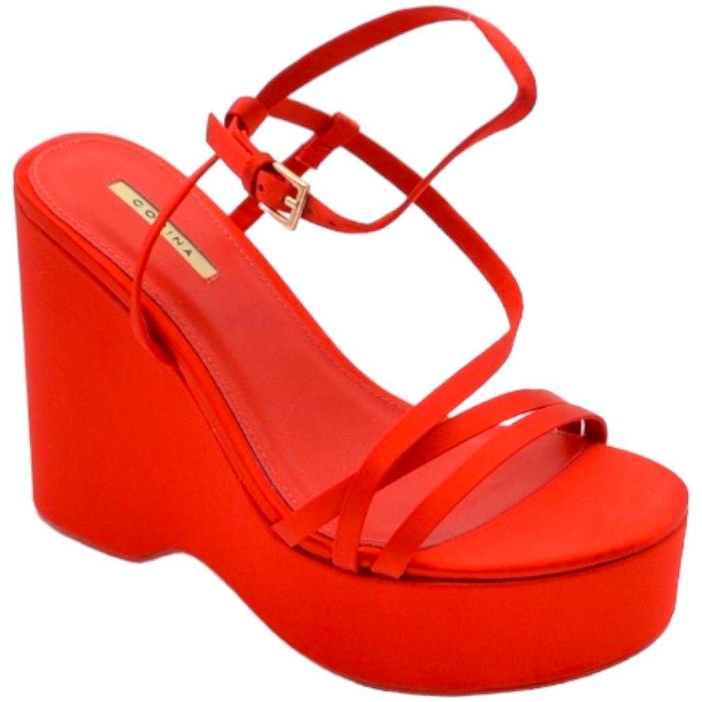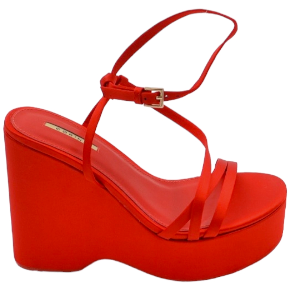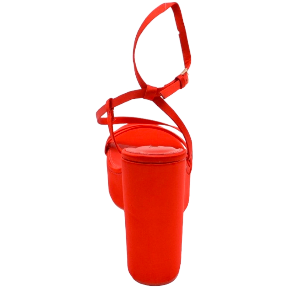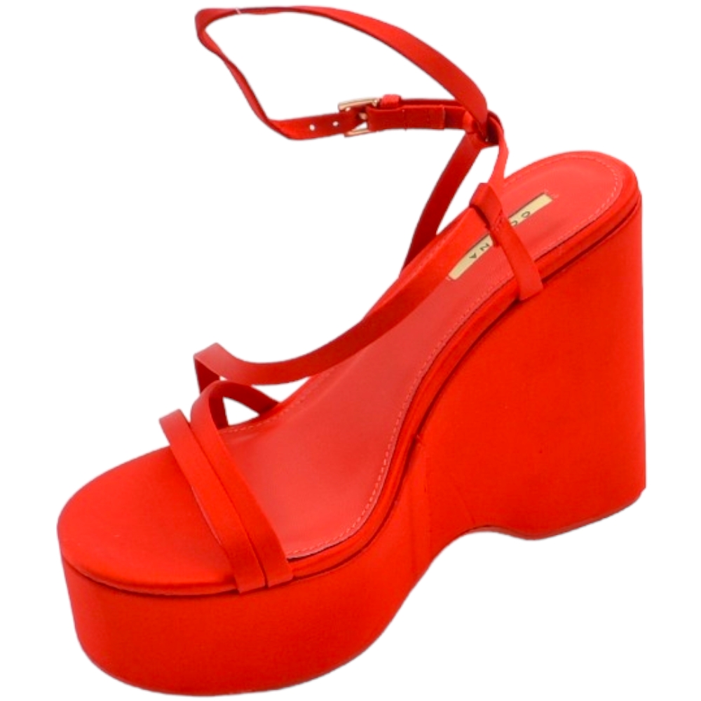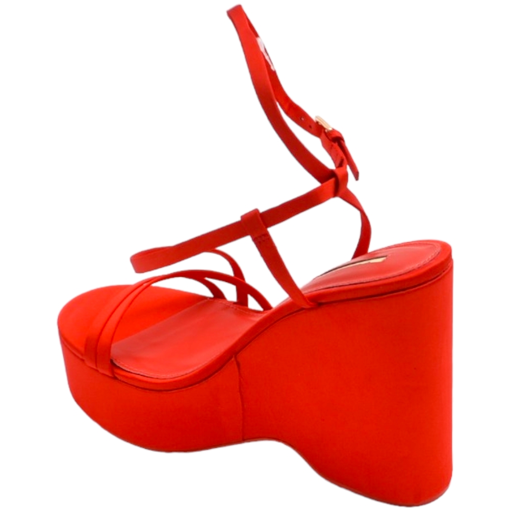 Zeppa donna rosso in pelle chiusura alla caviglia fondo tono su tono asimmetrico platform zeppa 10cm plateau 3cm
