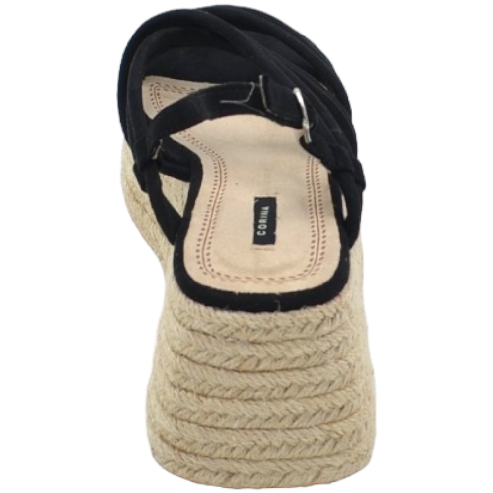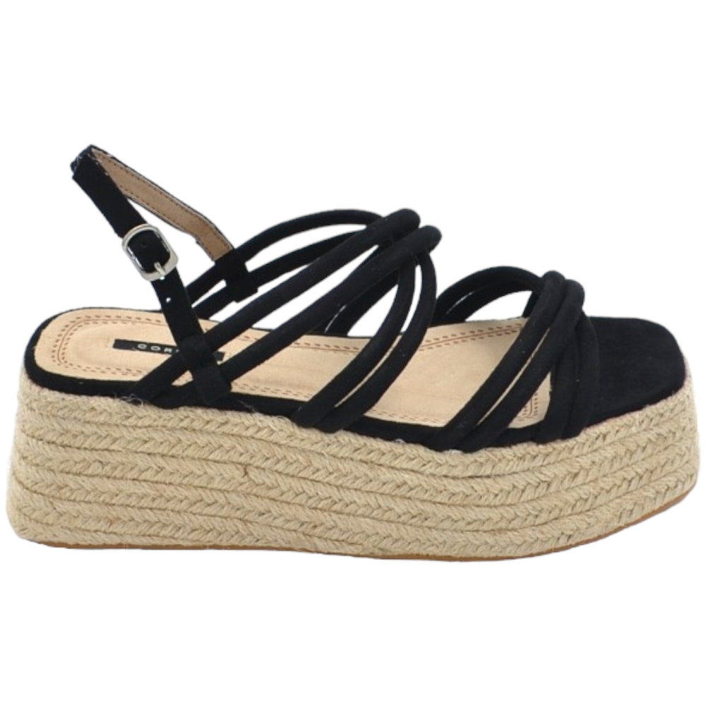 SANDALI ZEPPE DONNA NERO PLATFORM 10 CM CONH SUOLA IN PAGLIA E FASCIA IN ELASTENE COMODA .