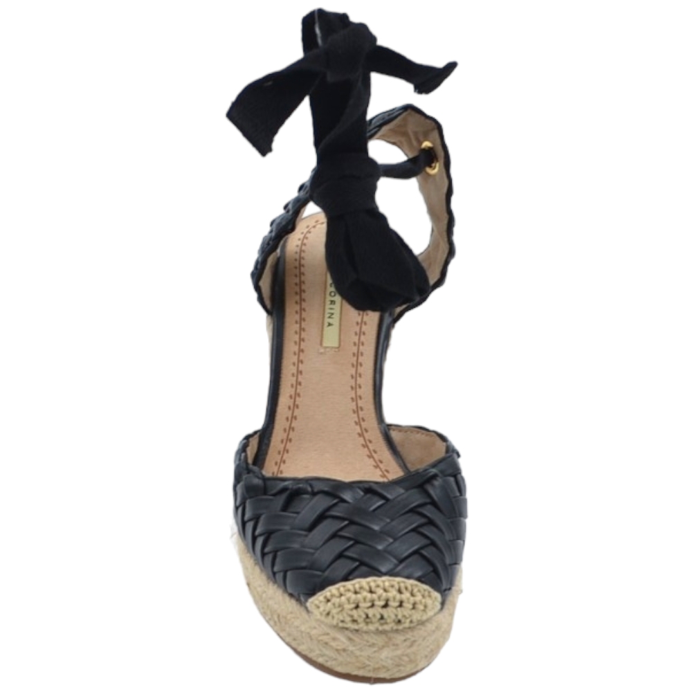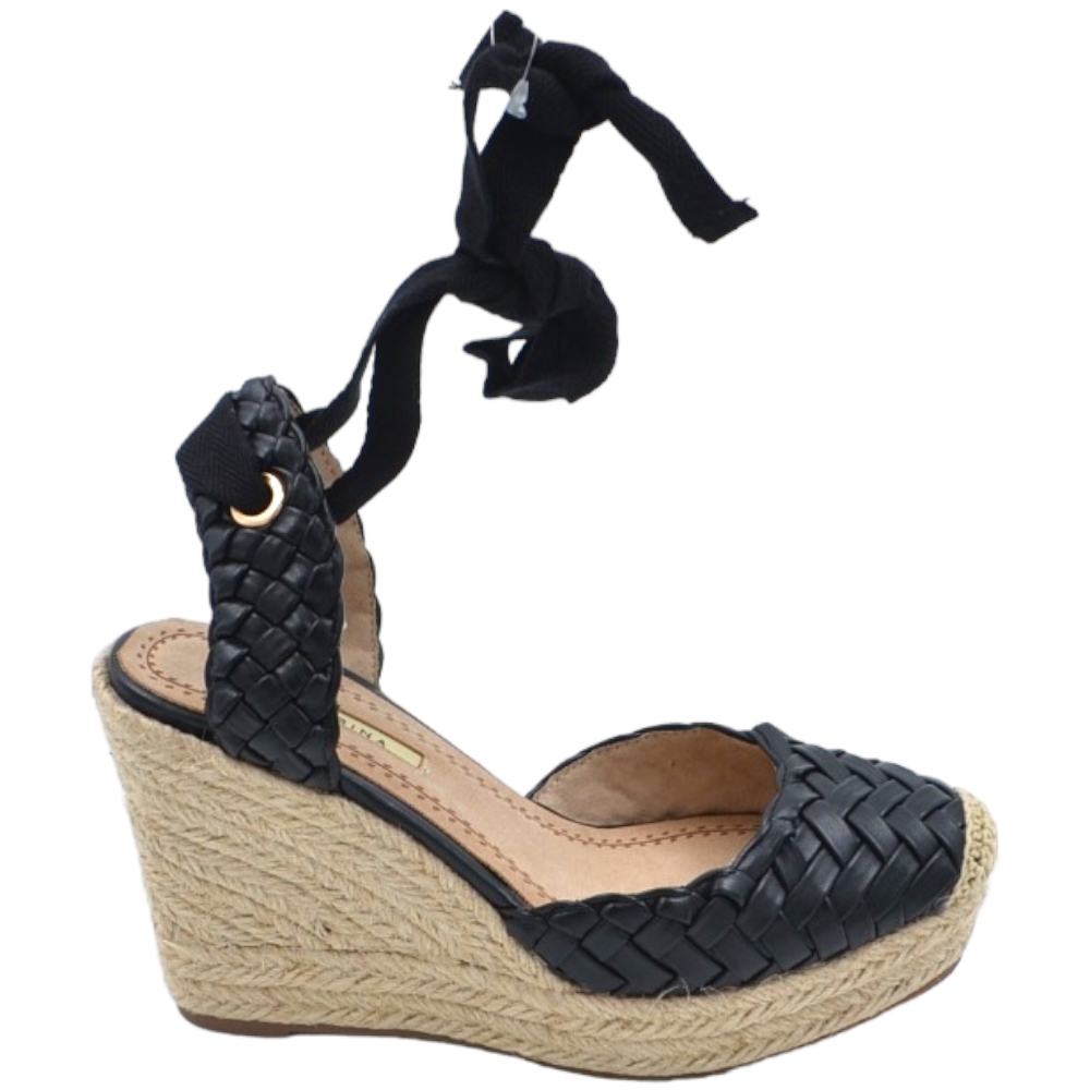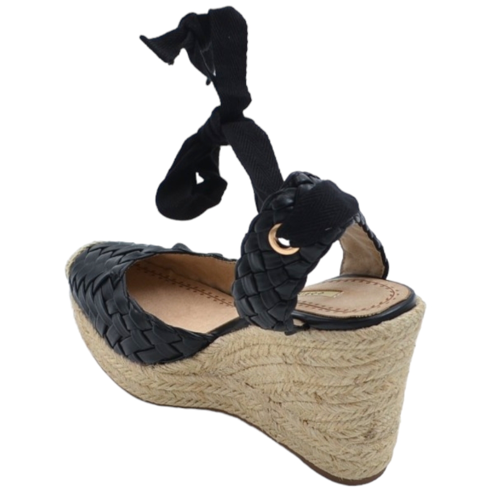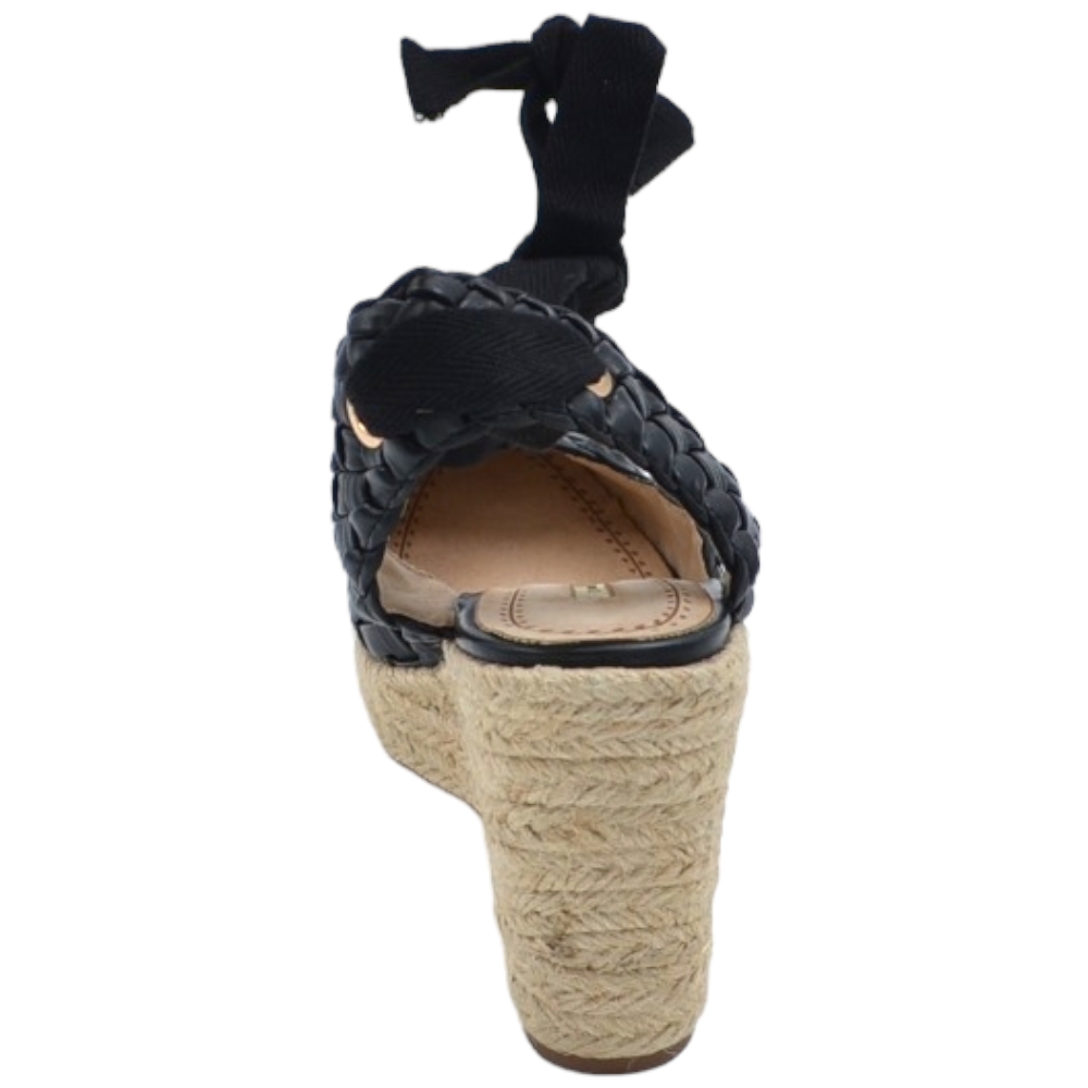 Zeppa donna nero intrecciata pelle chiusura alla schiava fondo paglia asimmetrico platform zeppa 10cm plateau 3cm