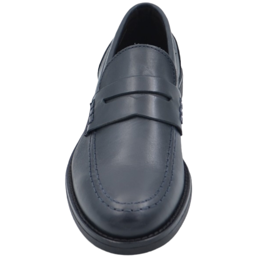 Mocassino uomo collage con bendina in vera pelle nappa blu matte classico fondo cuoio con antiscivolo rinforzo tallone