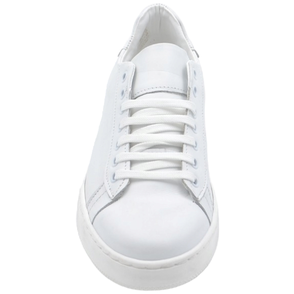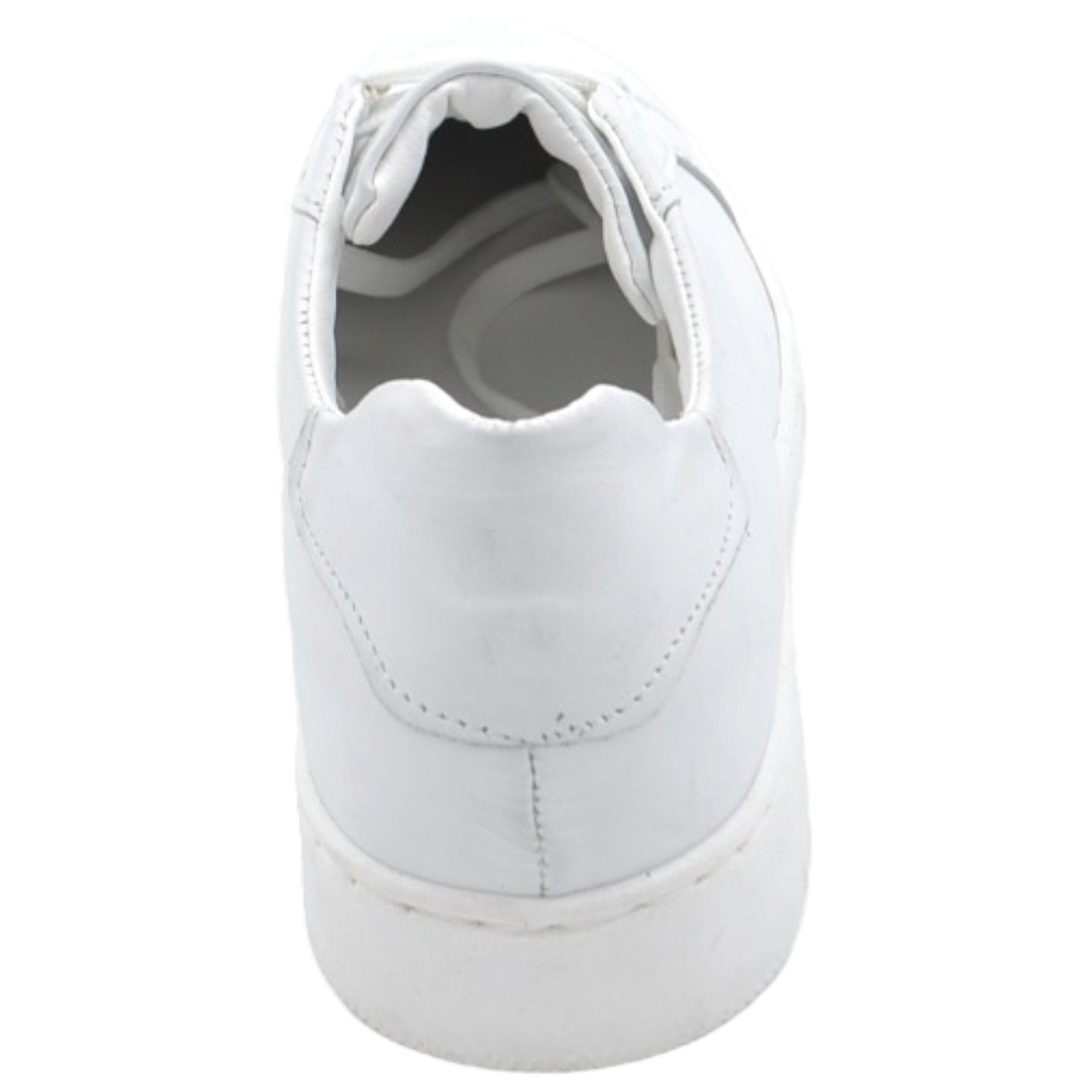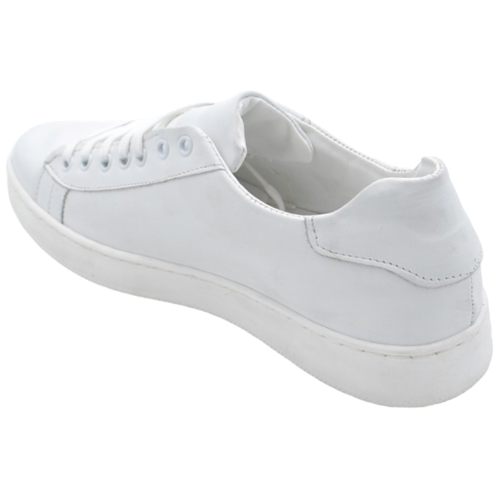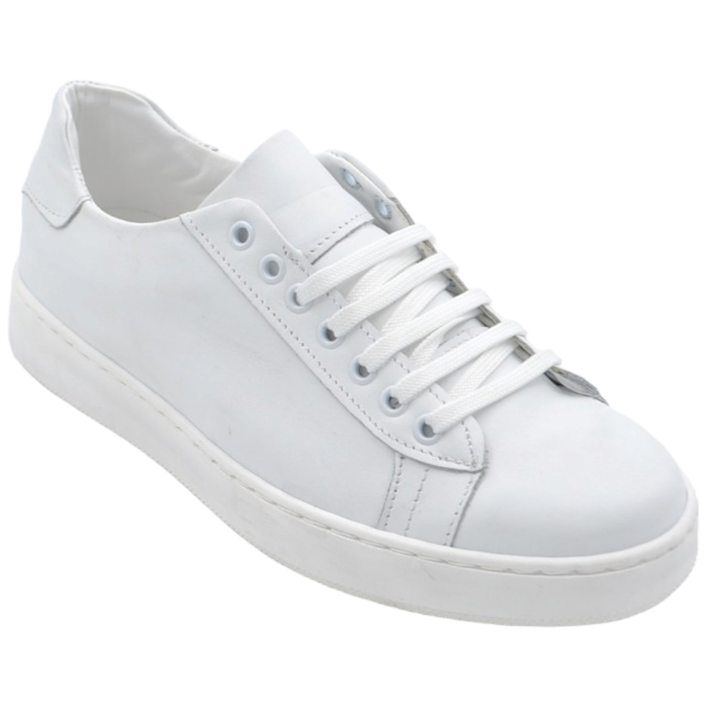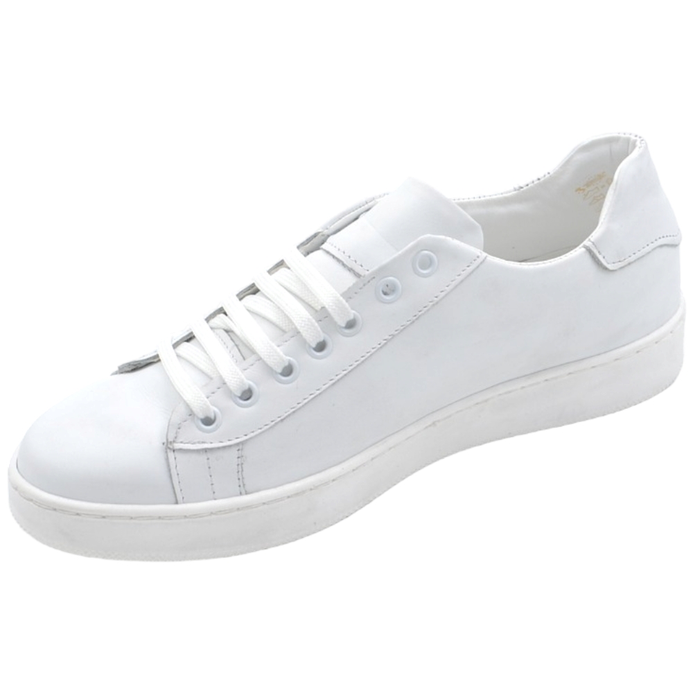 Sneakers bassa uomo in vera pelle bianca e cuciture fondo in gomma bianco moda business man comfort