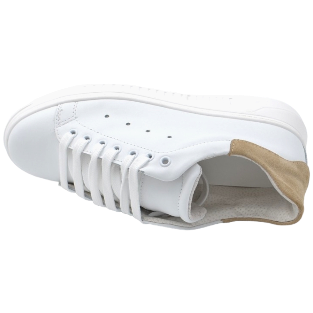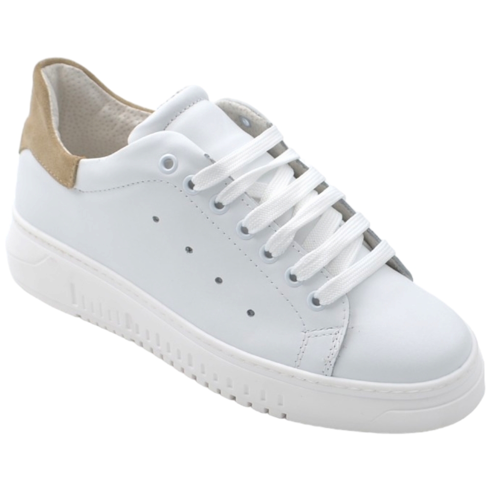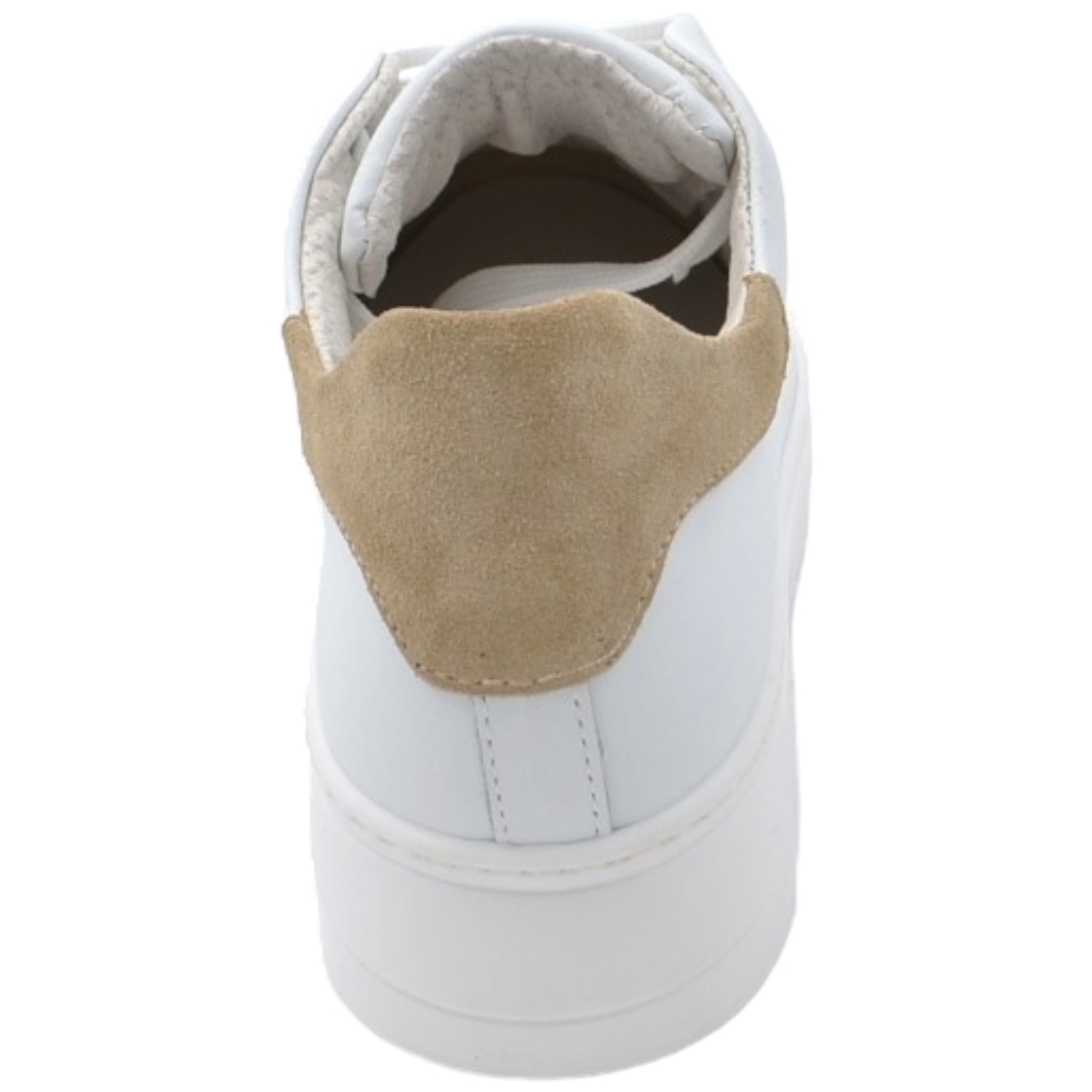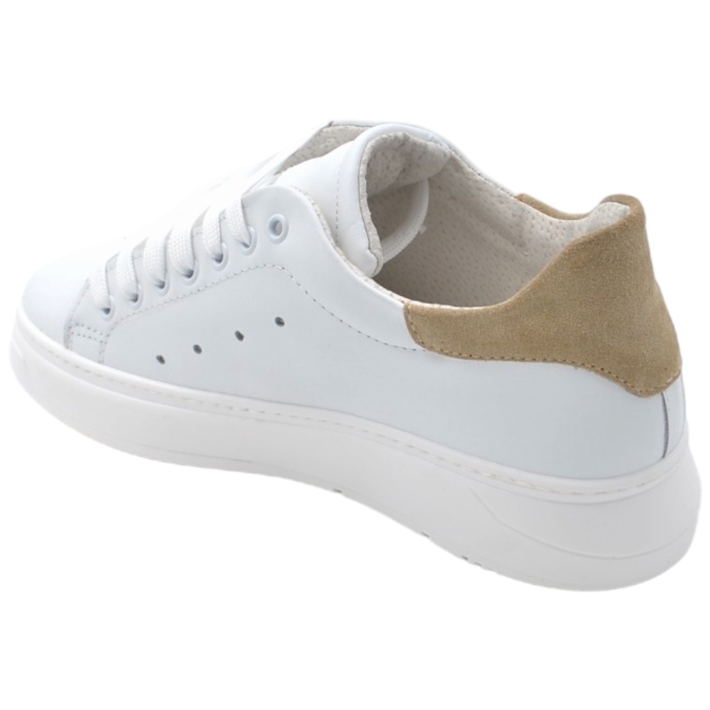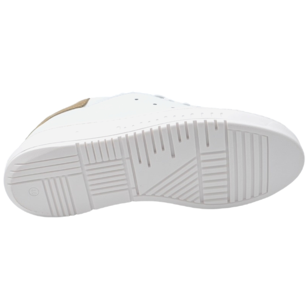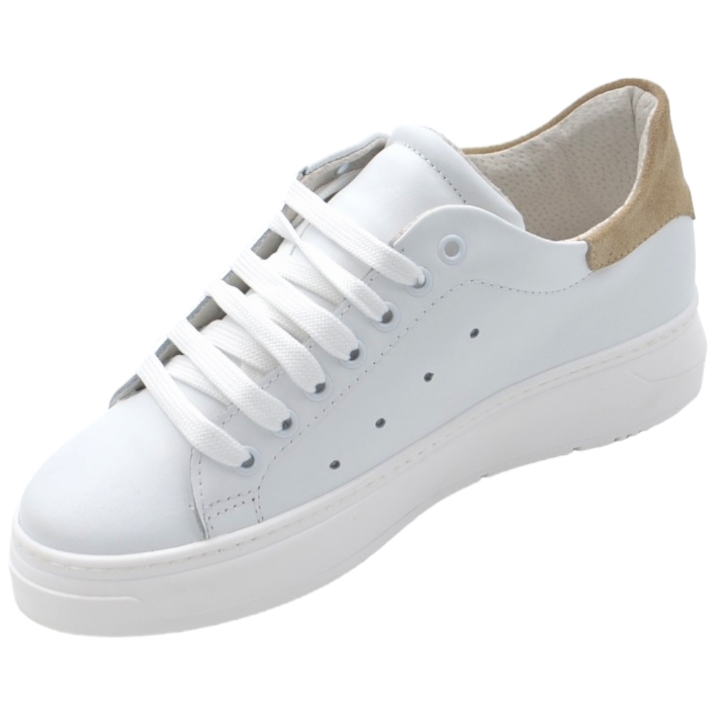 Sneakers uomo bianco in vera pelle con riporto beige camoscio fondo alto 4 cm anatomico moda street made in italy