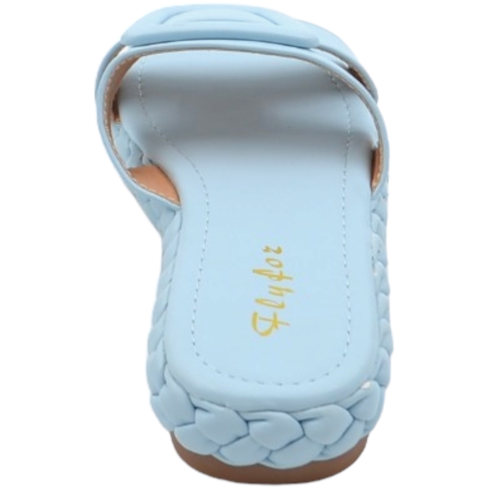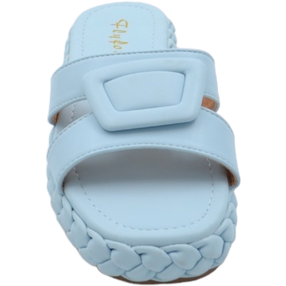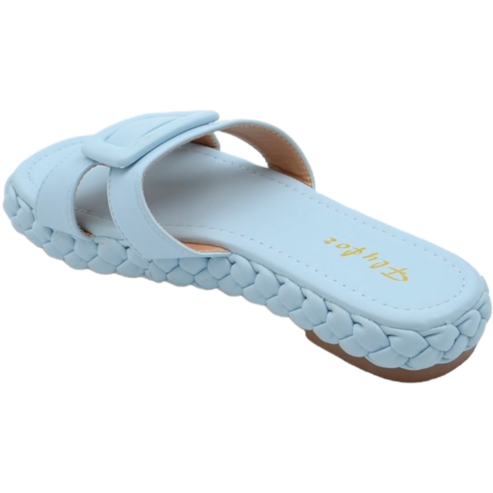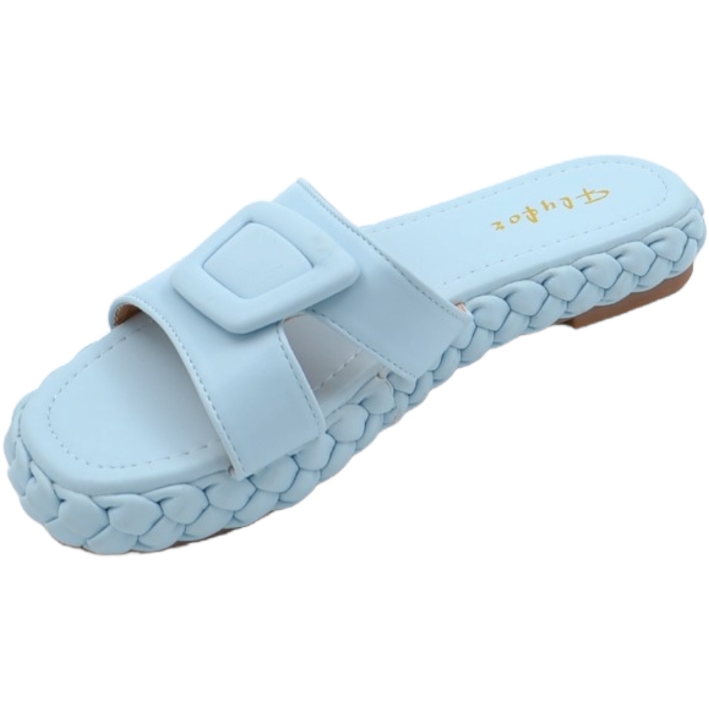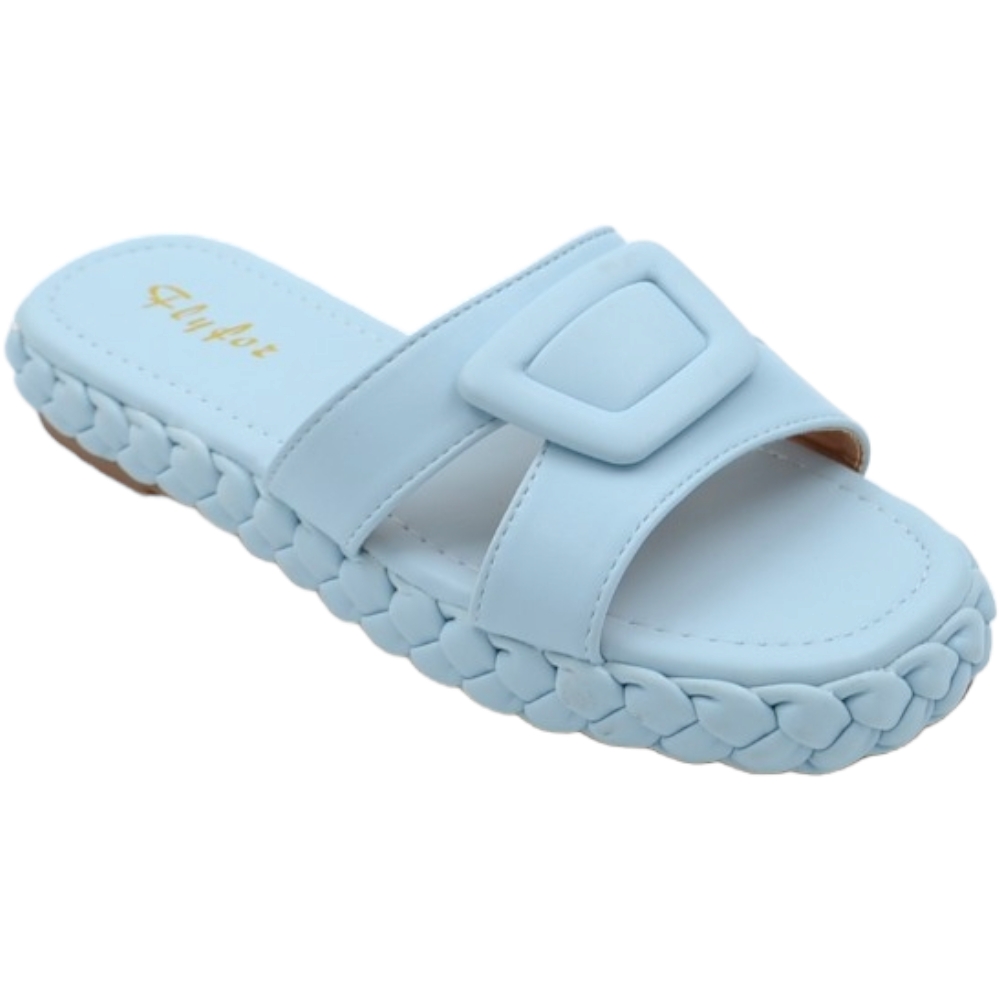 Ciabatta pantofola donna azzurro polvere estiva in gomma morbida treccia impermeabile con fascia larga