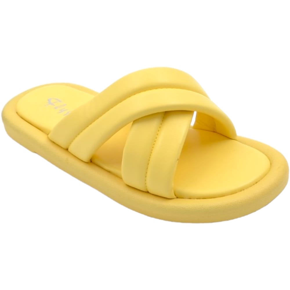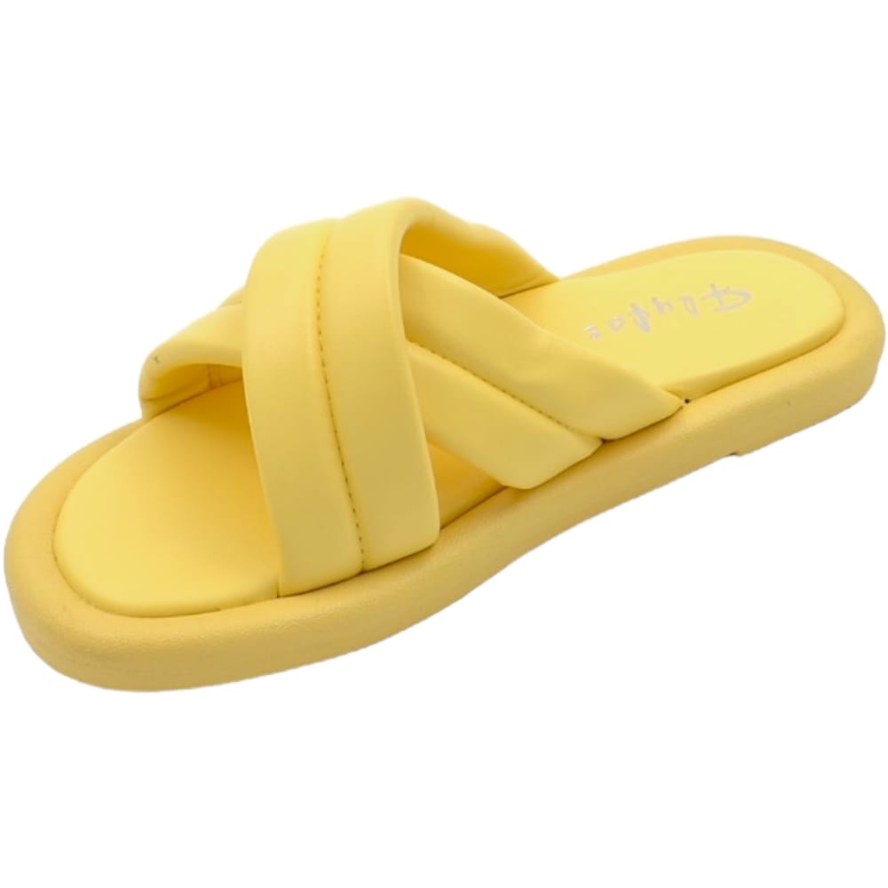 Ciabatta pantofola donna giallo estiva in gomma morbida impermeabile con fascia incrociata