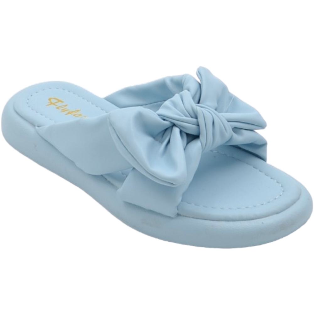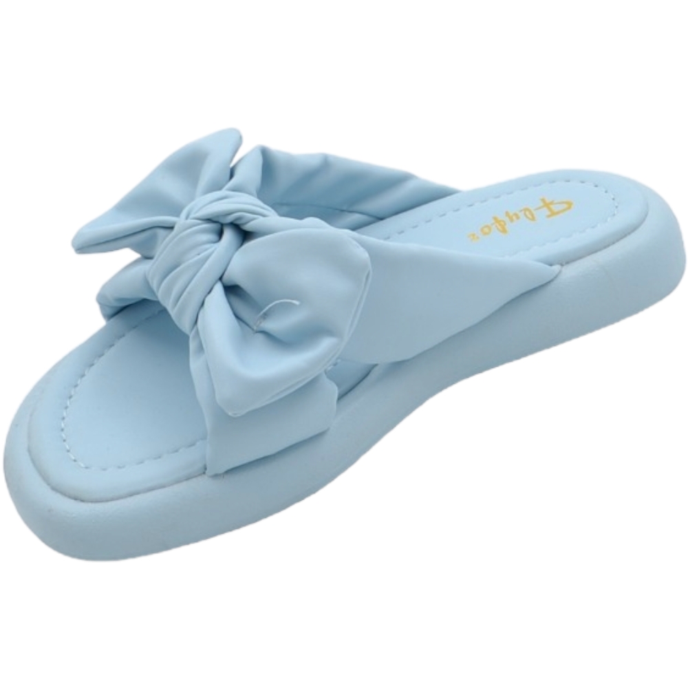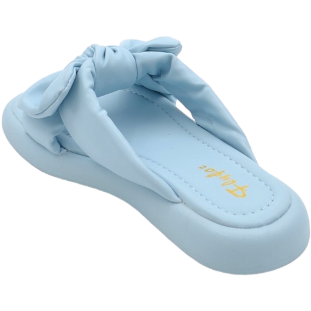 Ciabatta pantofola donna azzurro celeste estiva in gomma morbida impermeabile con fiocco