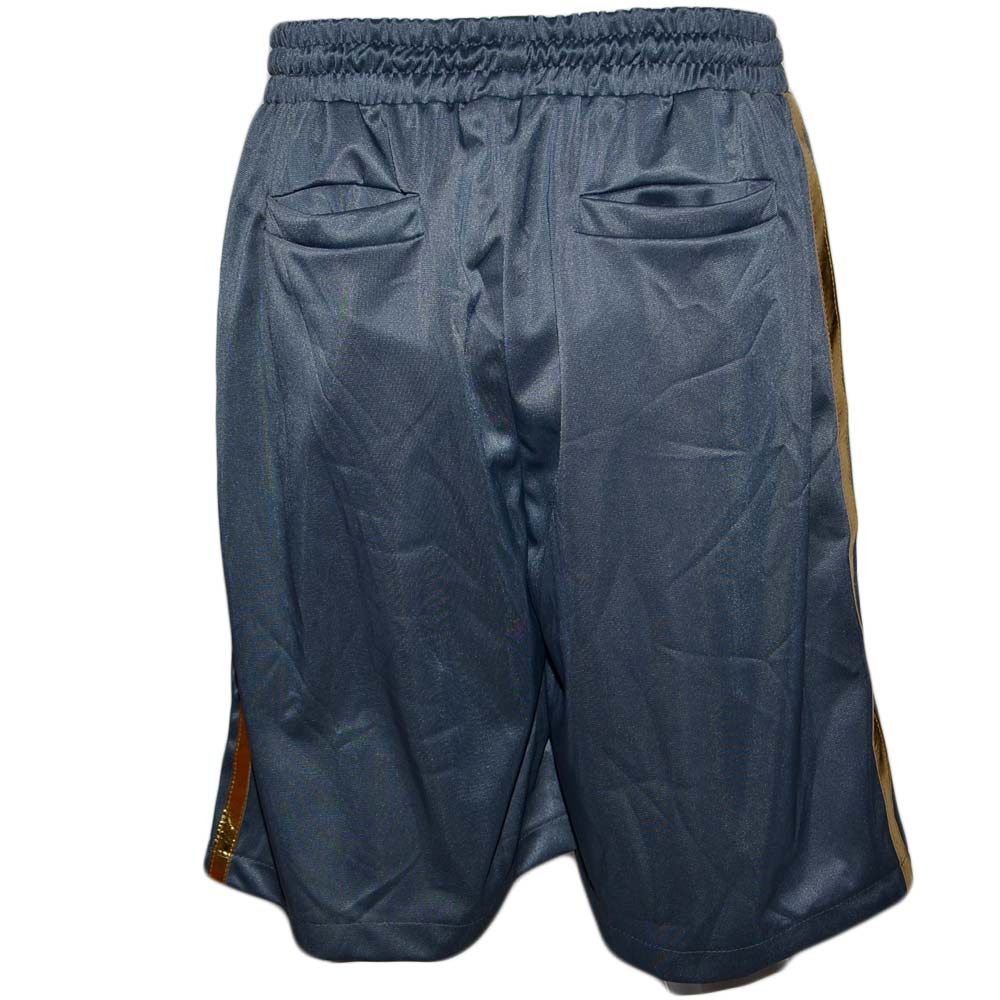 Bermuda Uomo Pantaloncini Sport Shorts Azzurro pastello strisce oro tasche america moda giovanile