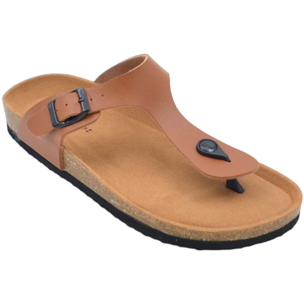 Sandali donna estivi in pelle cuoio con fibbia nera regolabile infradito fondo Eva con antiscivolo