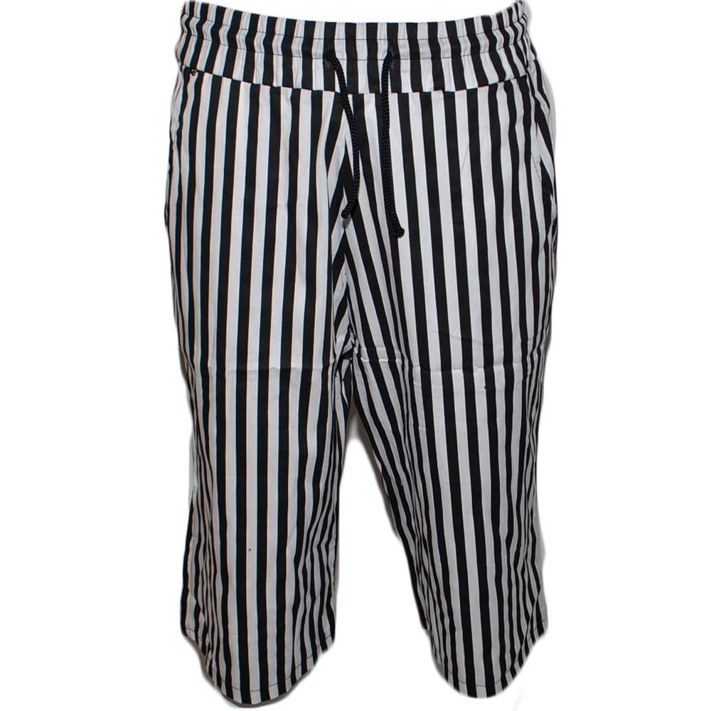 Bermuda Shorts Pantaloncini Corti Uomo Rigati Nero Righe Tasca America Casual Moda Giovanile Streetwear