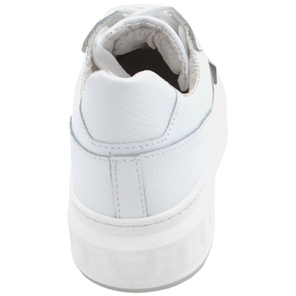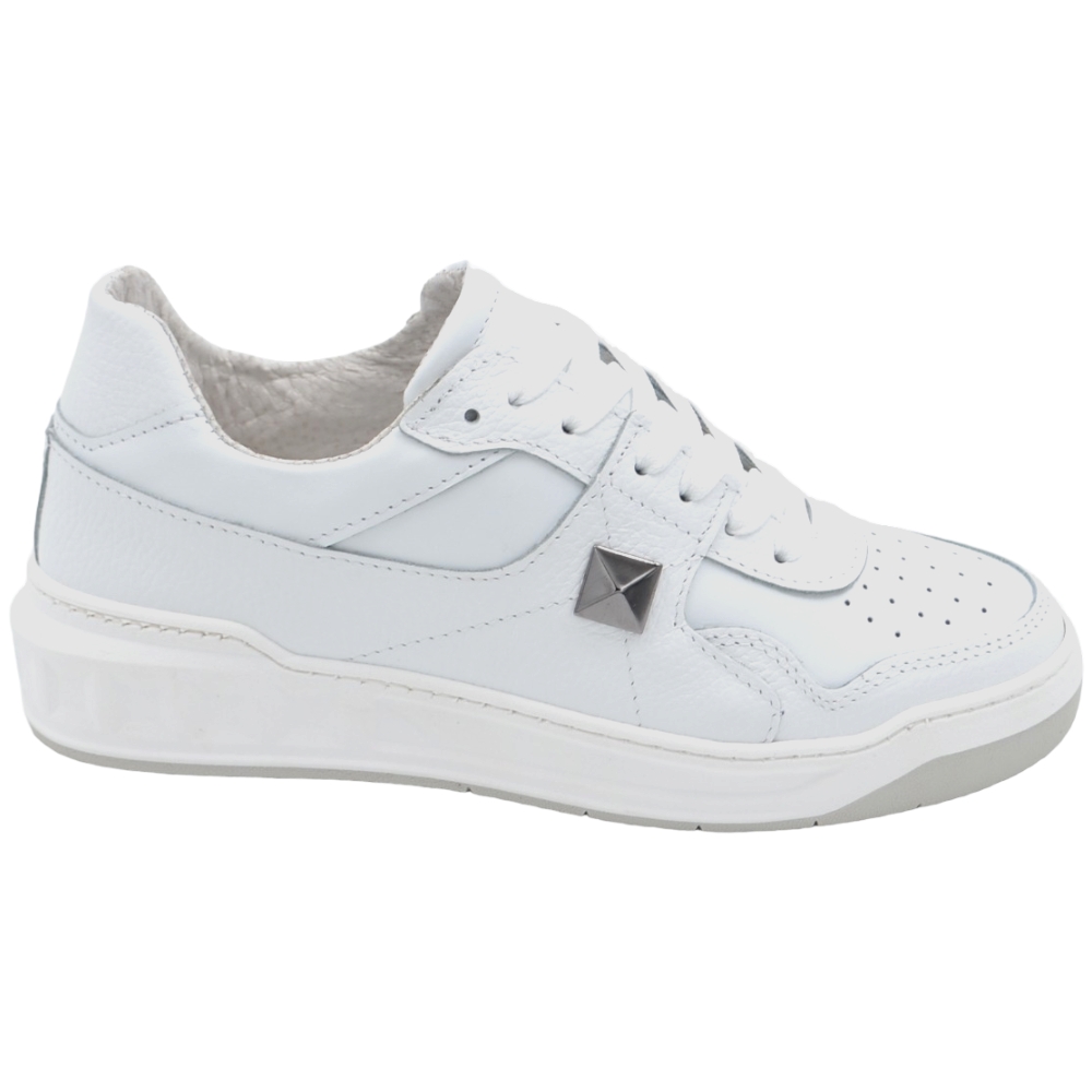 Scarpa sneakers bassa uomo basic vera pelle liscia bianca con borchia argento fondo in gomma ultraleggero 4,5 cm