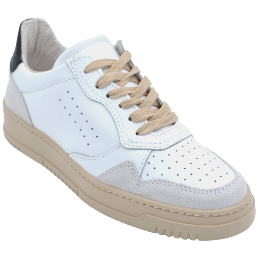 Scarpa sneakers bassa uomo basic vera pelle di nappa bianco linea basic fondo in gomma bianco alto PASOL casual.