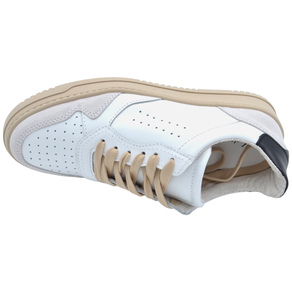 SNEARKERS UOMO BIANCA IN VERA PELLE CON INSERTI DI CAMOSCIO BEIGE RIPORTO ARANCIONE LACCI FONDO ALTO ANATOMICO.
