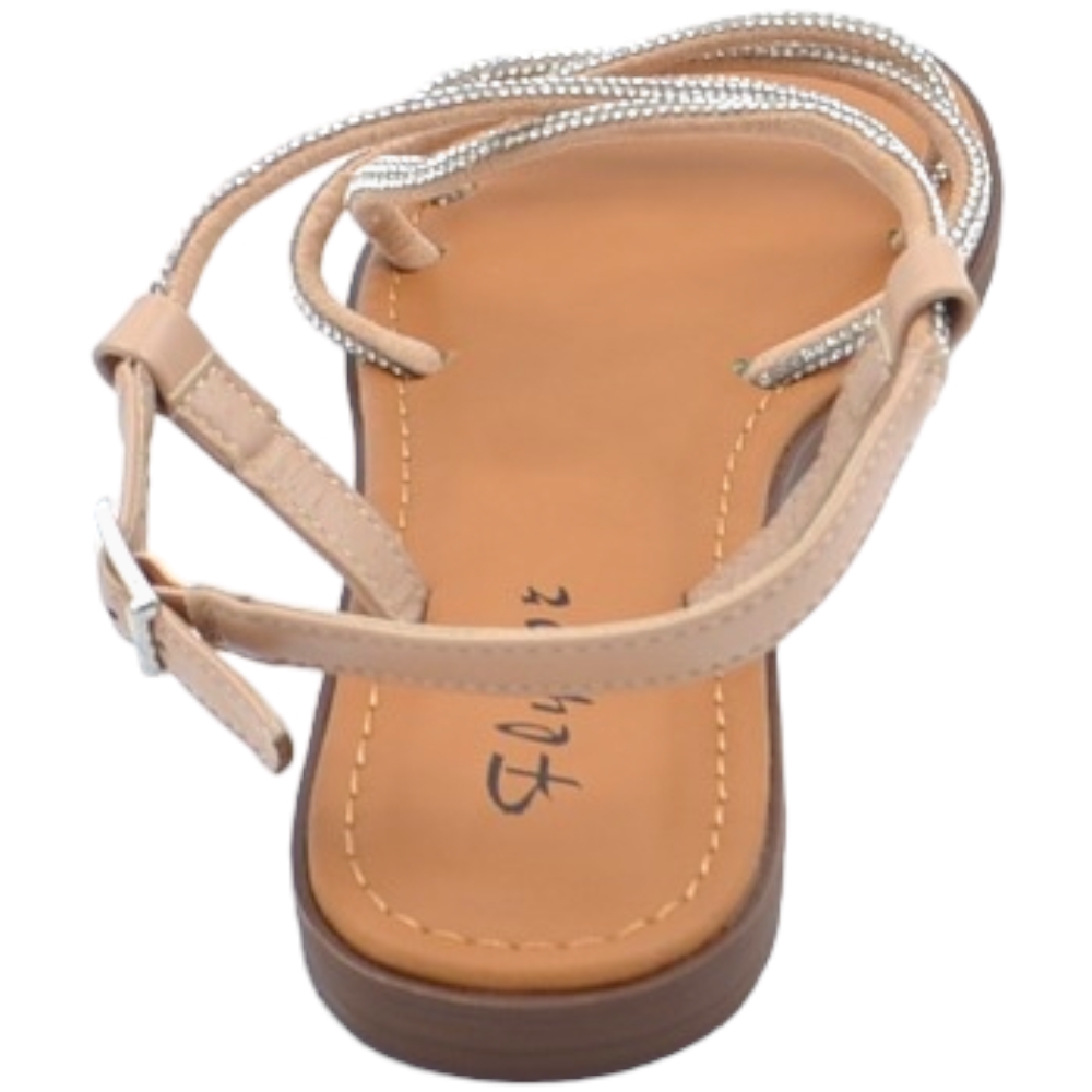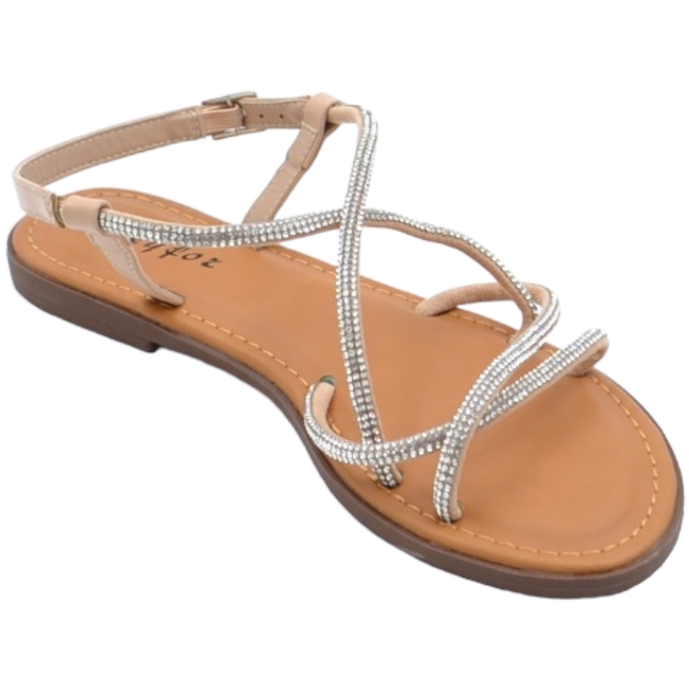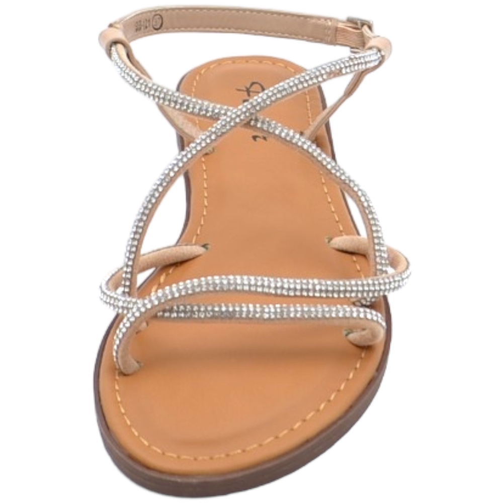 Sandalo gioiello basso donna beige raso terra fascette incrociate brillantini chiusura caviglia regolabile antiscivolo