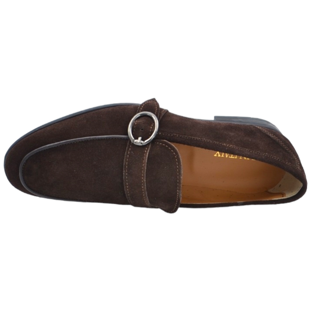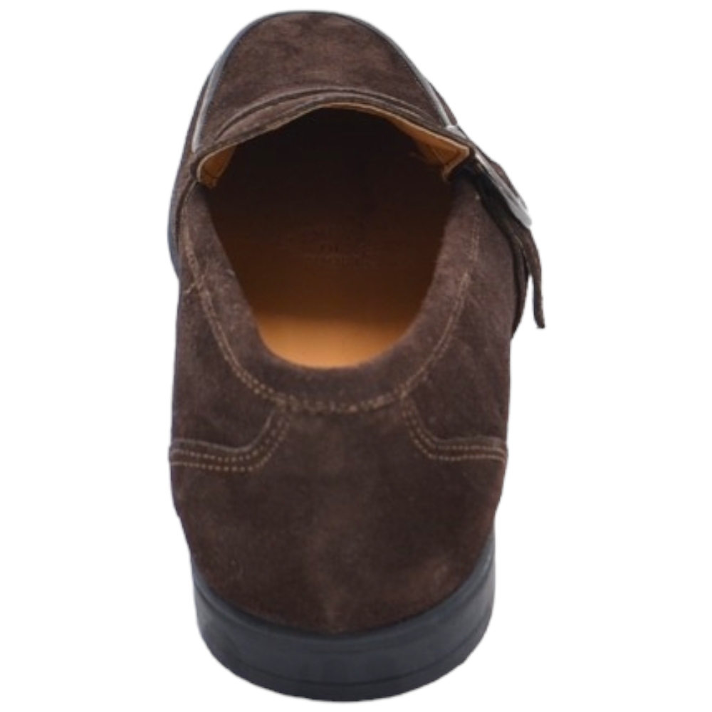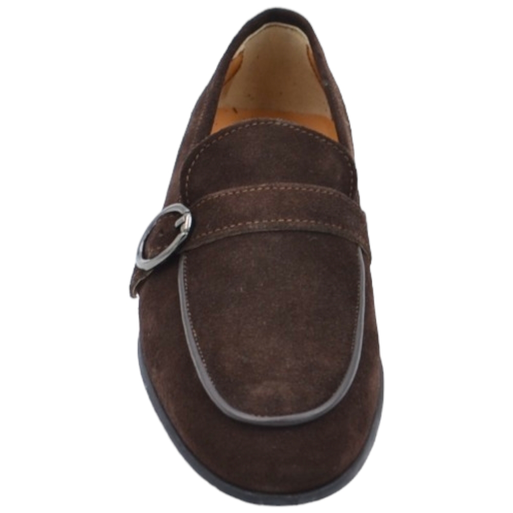 Mocassino uomo collage con fibbia argento in pelle scamosciata marrone fondo cuoio con antiscivolo rinforzo tallone