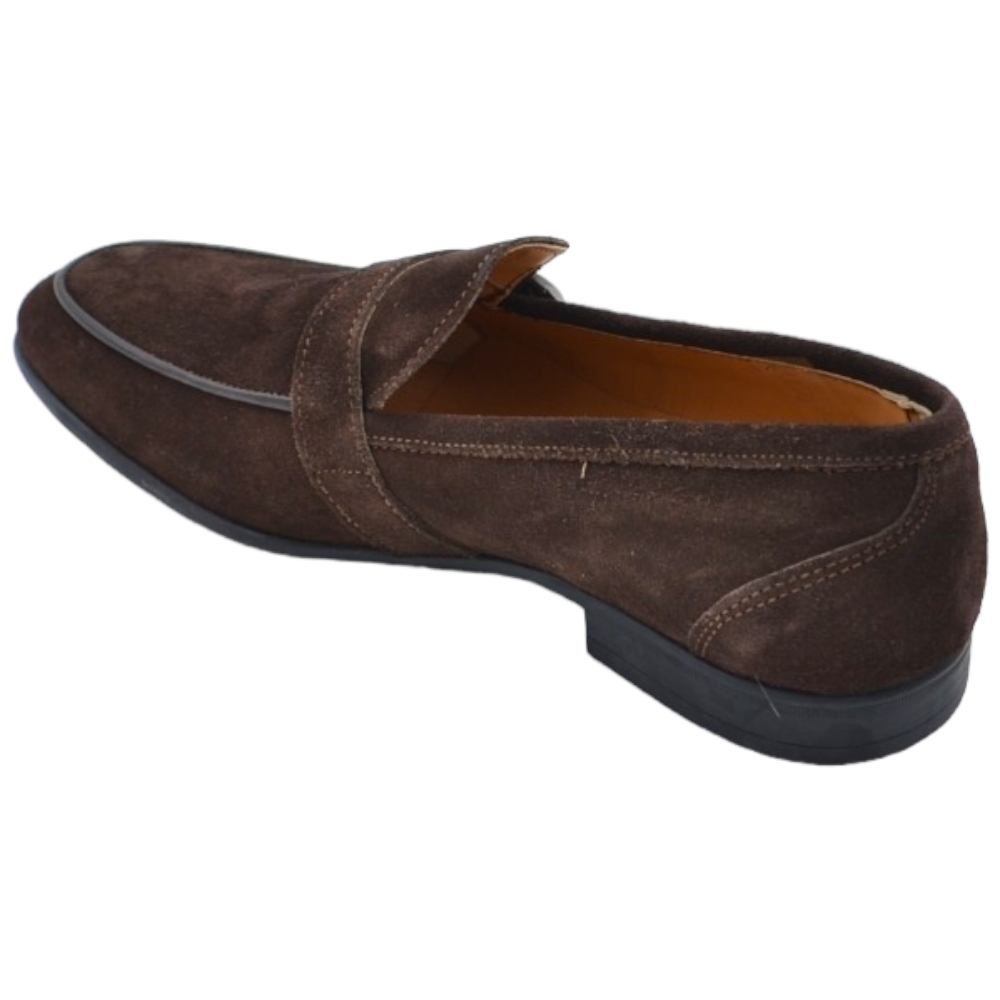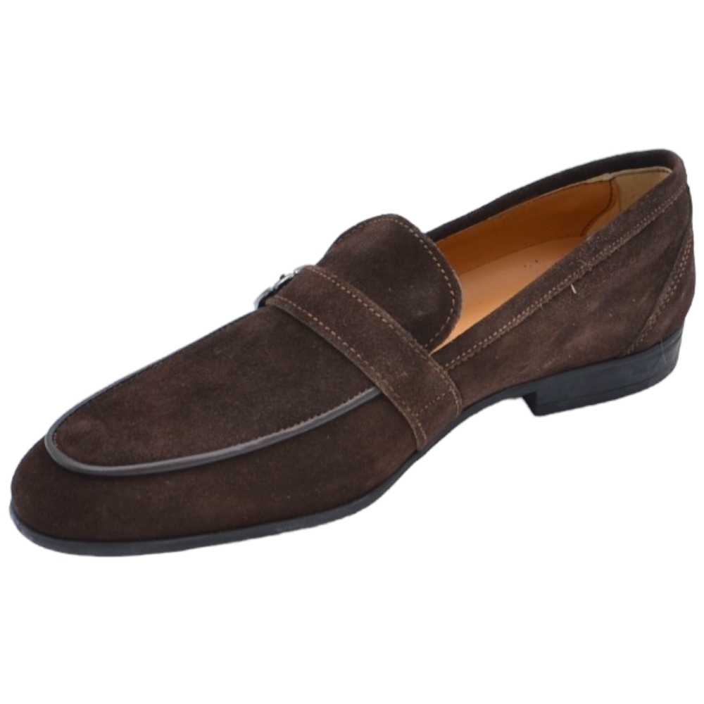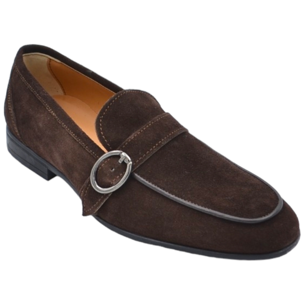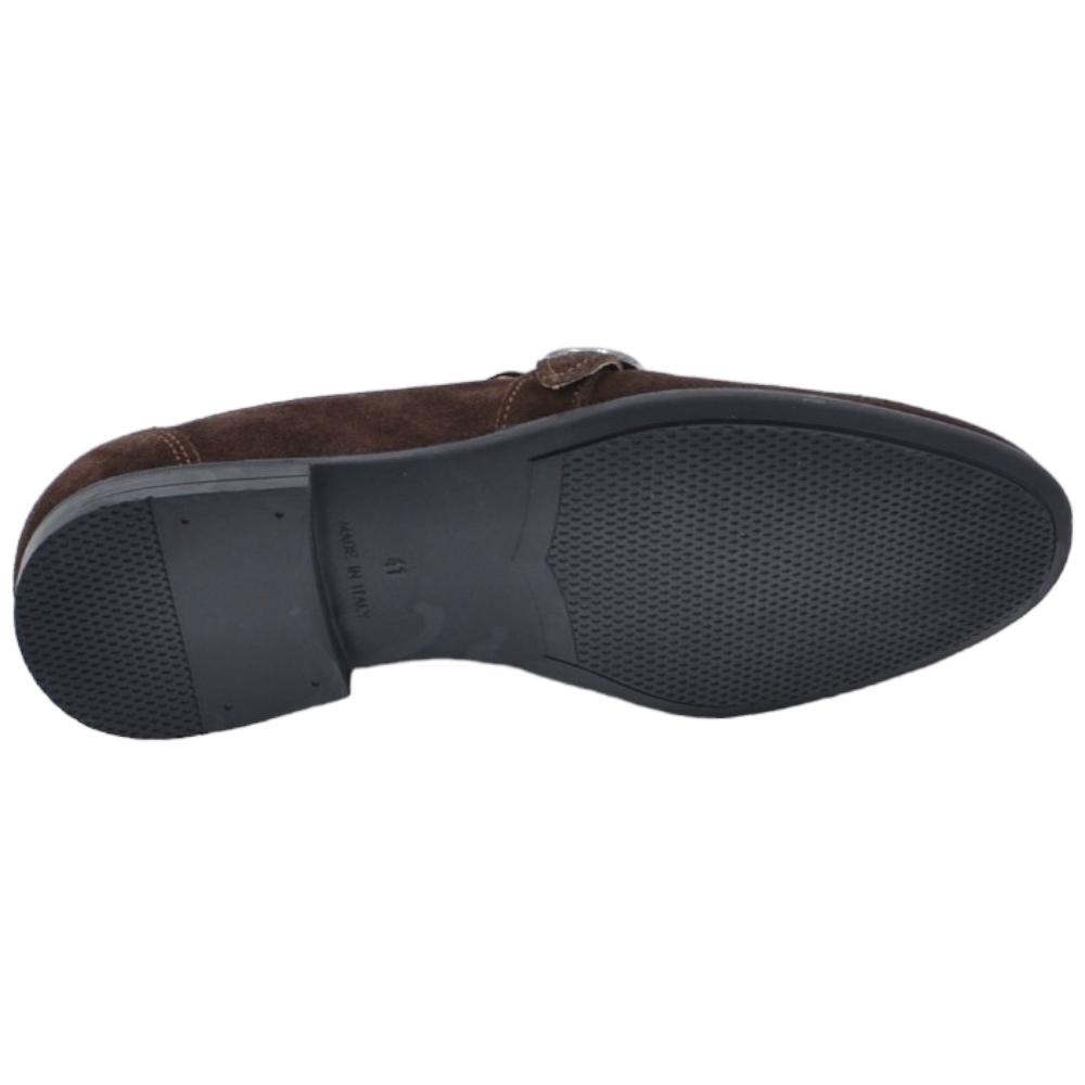 Mocassino uomo collage con fibbia argento in pelle scamosciata marrone fondo cuoio con antiscivolo rinforzo tallone