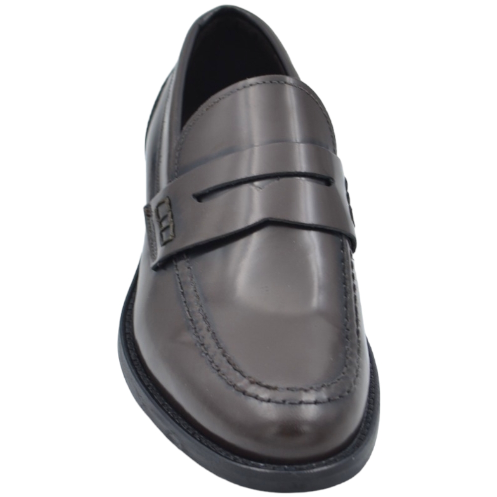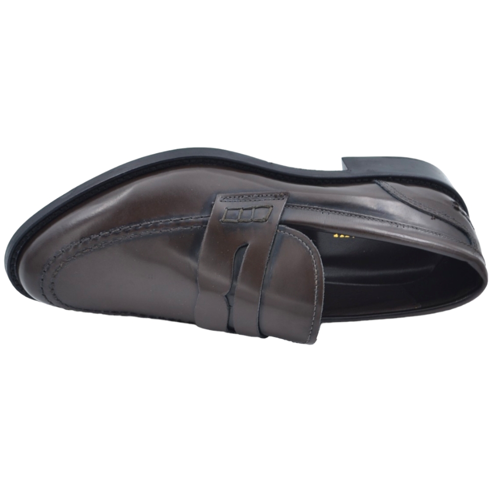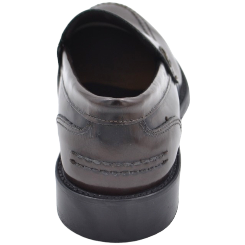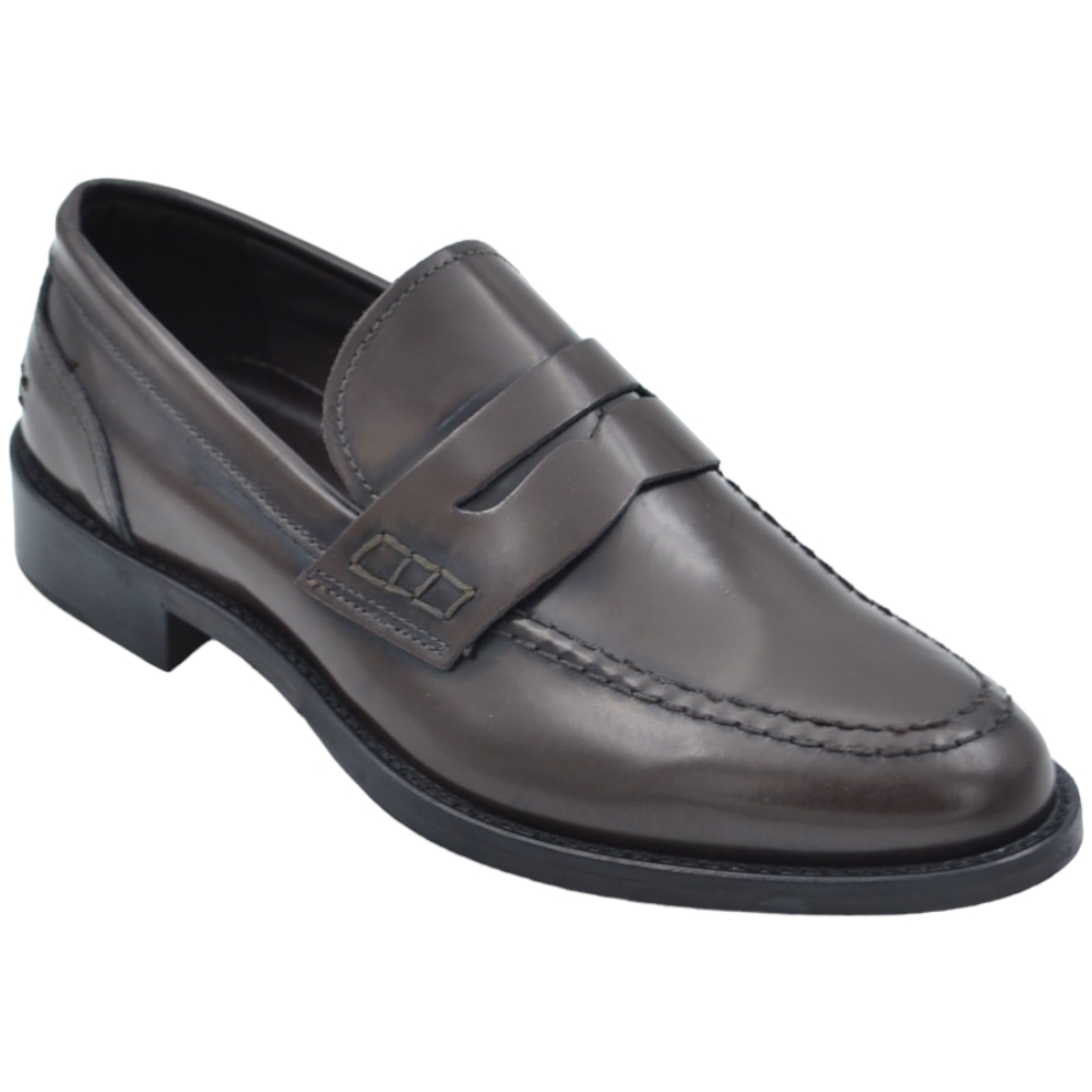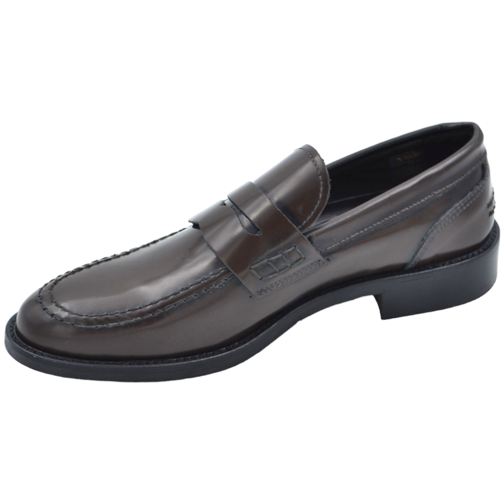 Scarpe college uomo inglese mocassino marrone vera pelle abrasivata fondo in cuoio con antiscivolo cuciture a vista