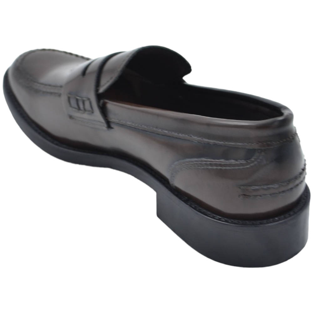 Scarpe college uomo inglese mocassino nero vera pelle abrasivata fondo in cuoio con antiscivolo cuciture a vista .