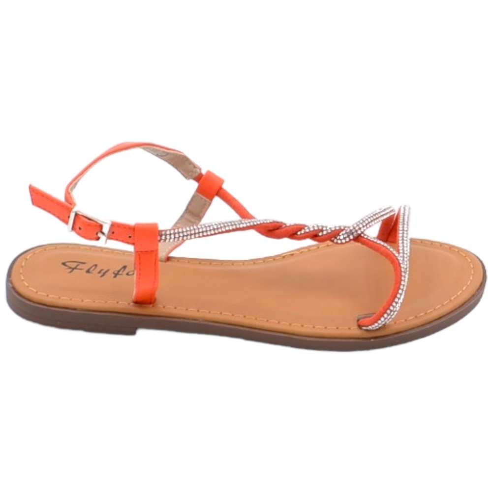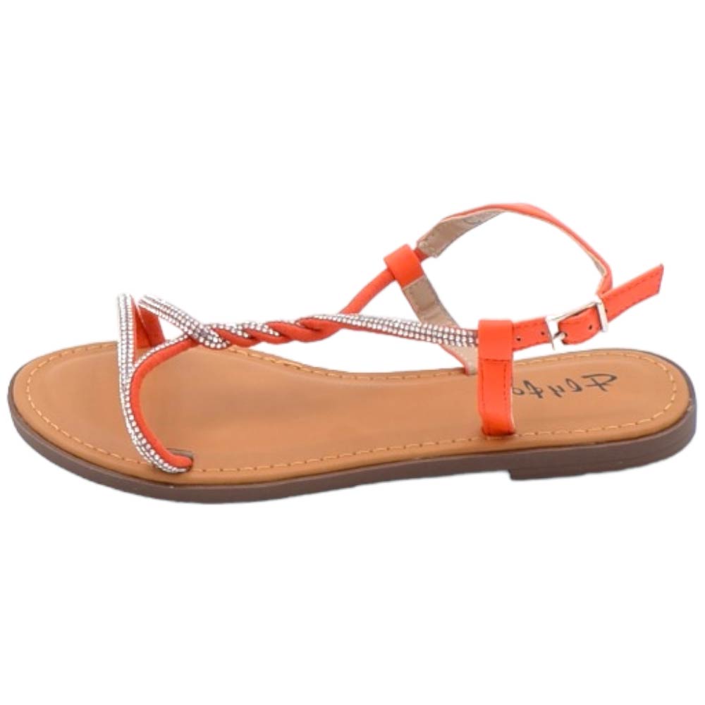 Sandalo gioiello basso donna arancione raso terra treccia centrale brillantini chiusura caviglia regolabile antiscivolo