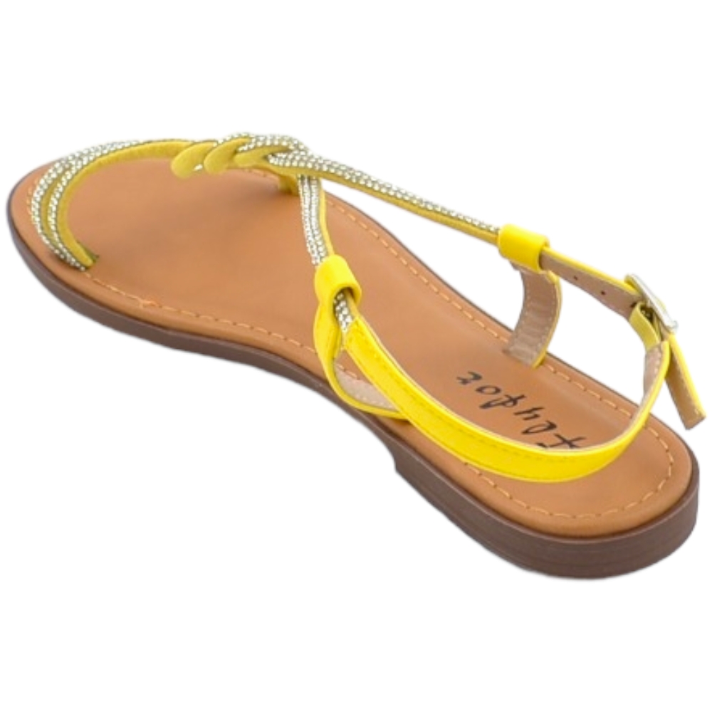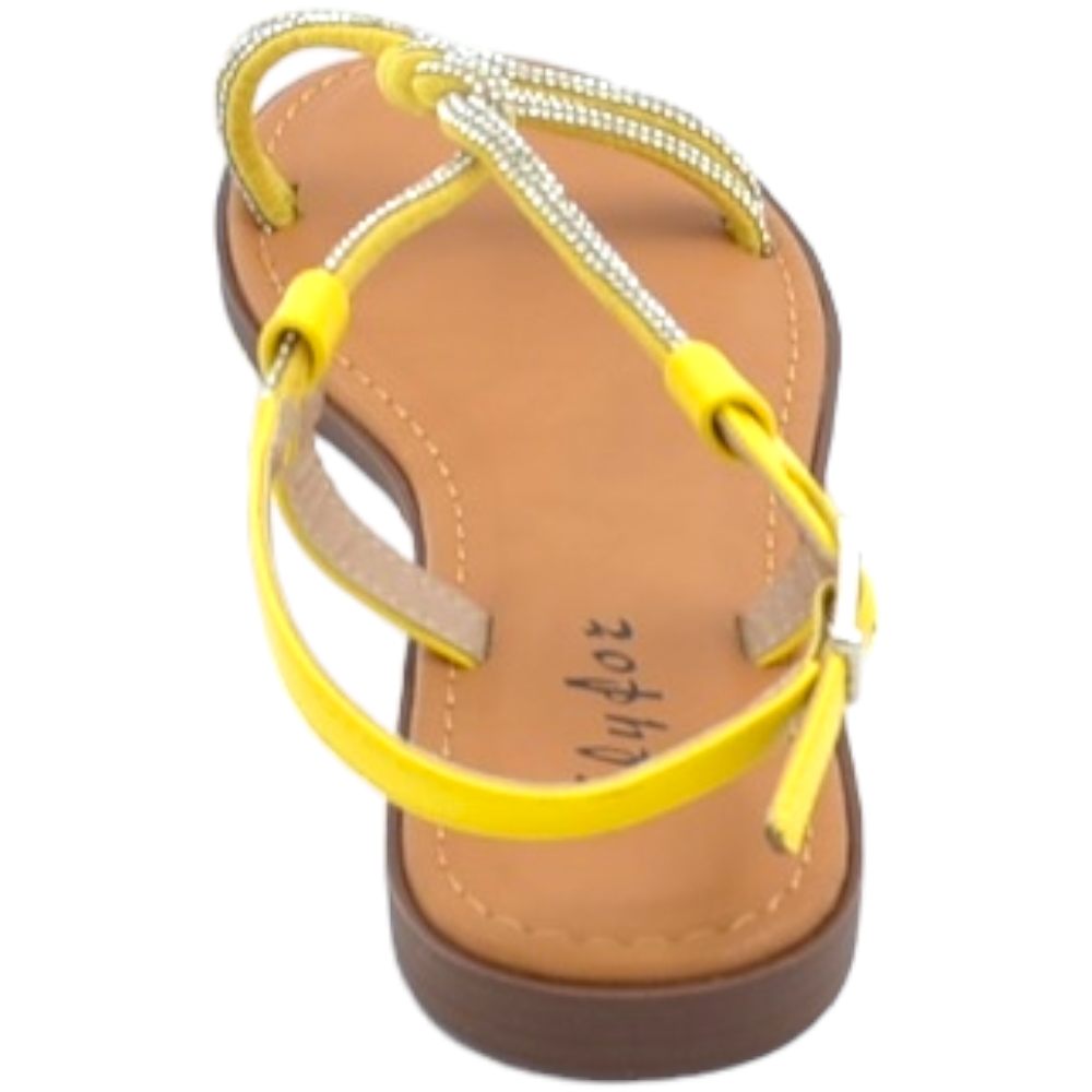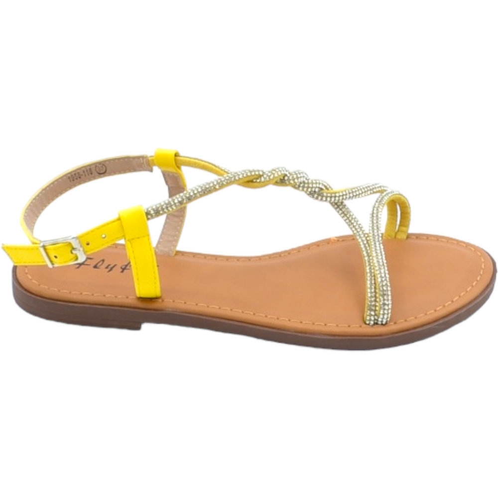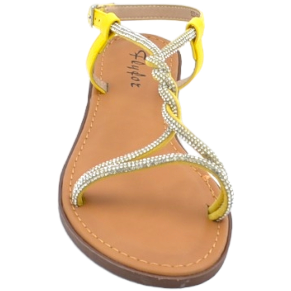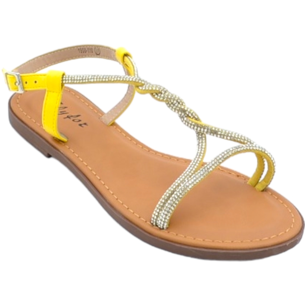 Sandalo gioiello basso donna giallo raso terra treccia centrale brillantini chiusura caviglia regolabile antiscivolo