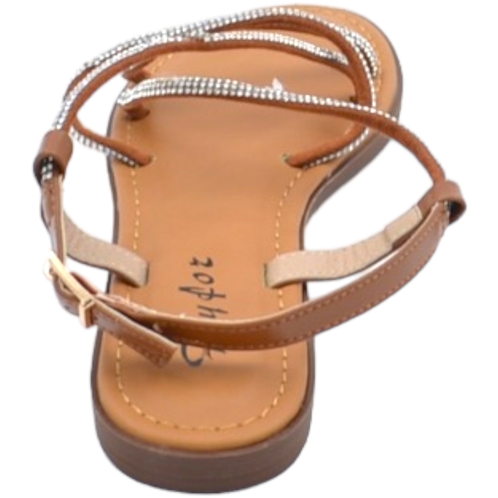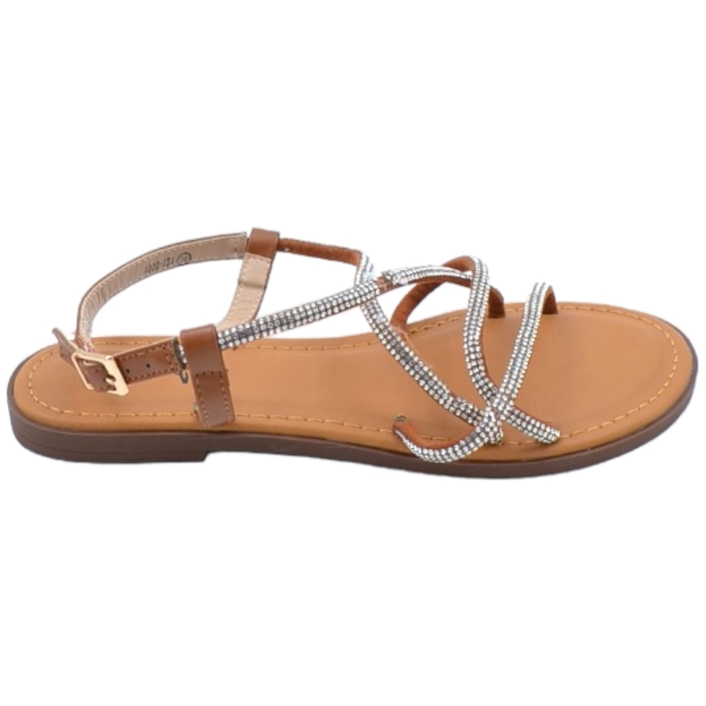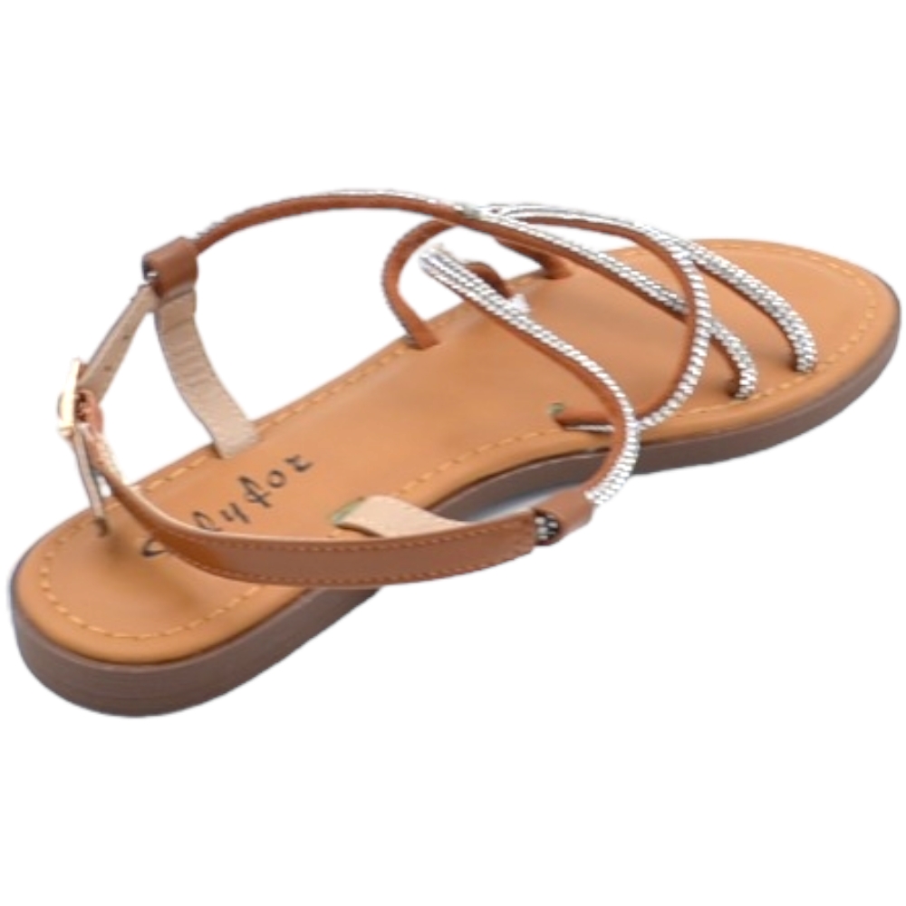 Sandalo gioiello basso donna cuoio raso terra fascette incrociate brillantini chiusura caviglia regolabile antiscivolo