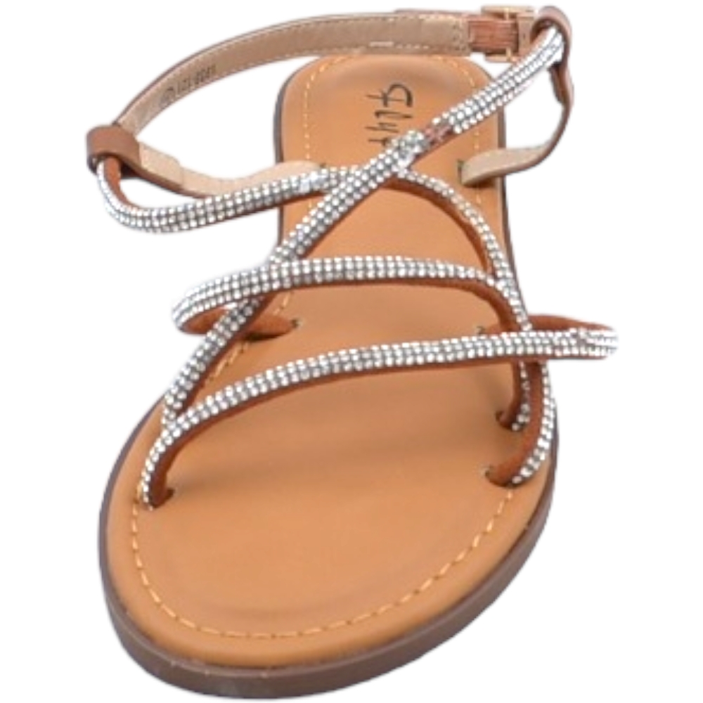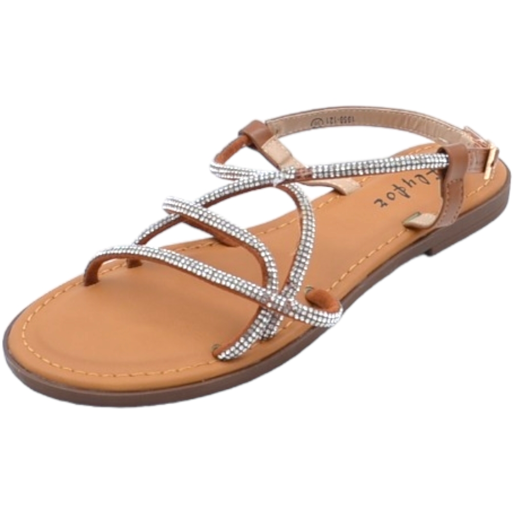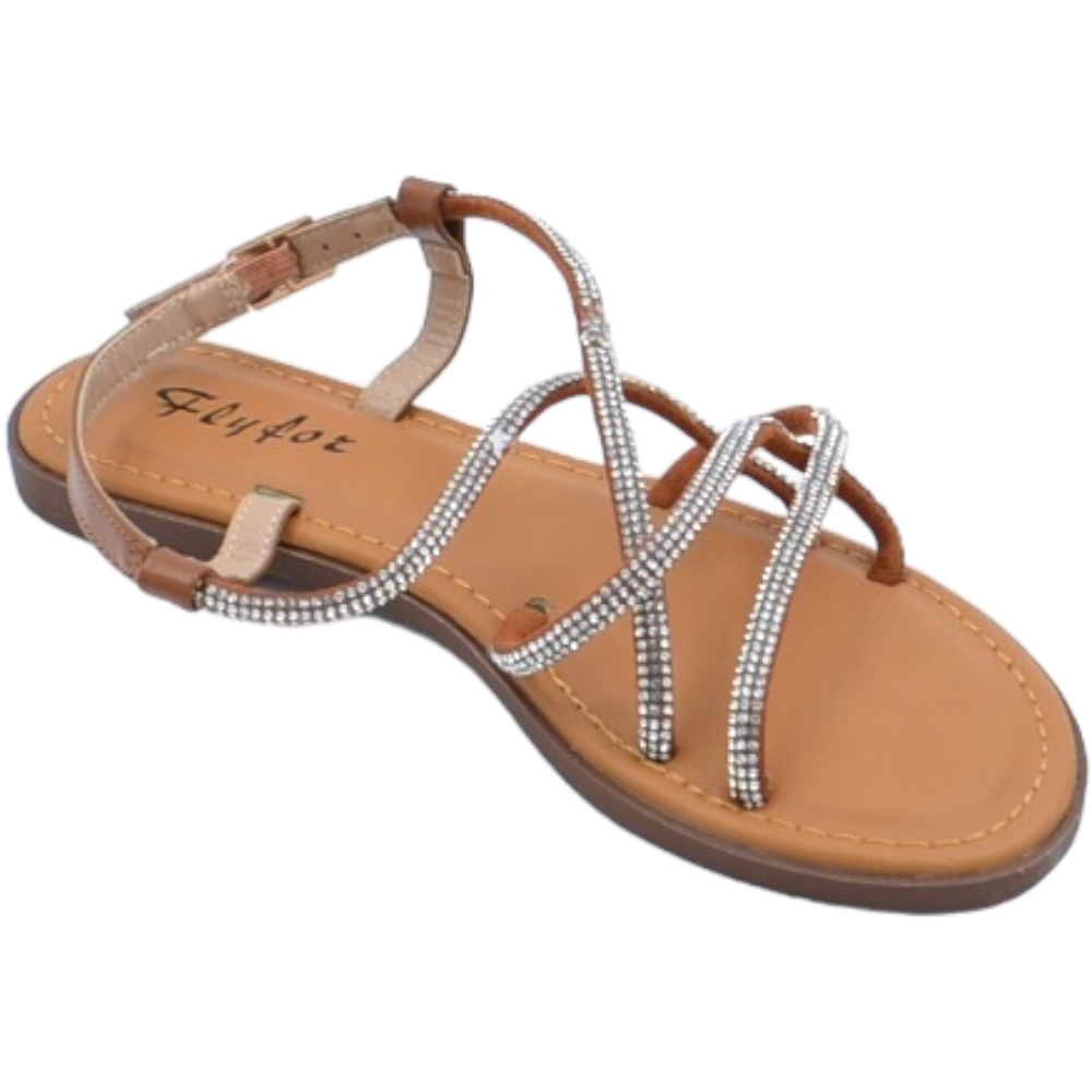 Il sandalo gioiello è una scarpa da donna di qualità, femminile e trendy. Il piede è elegantemente vestito da fascette decorate con brillantini e cinturino regolabile al tallone. Un sandalo piatto di tendenza pratico e comodo senza tacco ideale per le donne glamour che amano vestire accessori confortevoli capaci di esaltare la loro femminilità senza rinunciare a seguire i dettami della moda.